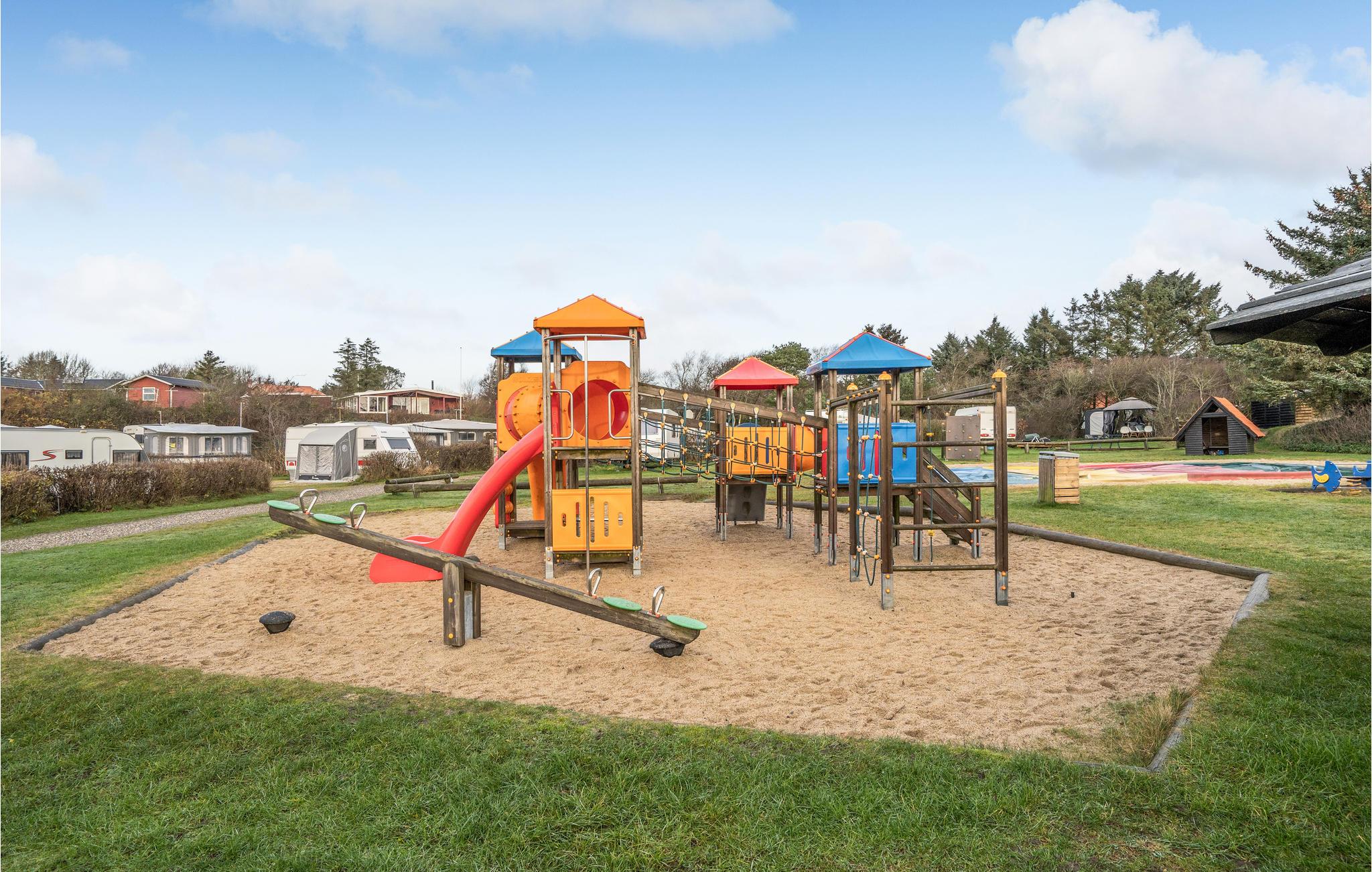 Glæd jer til en afslappende og varieret ferie med familie eller venner i dette praktiske feriehus på campingpladsen Toftum Bjerge.