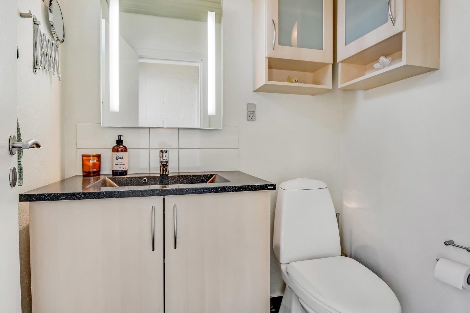 Dejligt stenhus som byder på 3 fine soveværelser (1DS, 2S, 1K), hvor 2 af værelserne er med linoleumsgulv og det sidste er med gulvtæppe. Stuen og køkkenet er kombineret til et stort køkkenalrum, hvor hele familien kan samles i fællesskab. Opholdsstuen får masser af lys ind fra de store vinduespartier, hvorfra man har udsyn til haven. Sofahjørnet er indrettet med lædermøbler, fjernsyn med danske og tyske kanaler og radio. Der er også gratis internet. Opholdsstuen er med linoleumsgulv og der er der både varmepumpe og brændeovn, som bidrager til en energisparende opvarmning af huset. Foran brændeovnen er der også to lænestole, så der er mulighed for at nyde varmen evt. mens man læser en bog. Køkkenhjørnet er veludstyret med alt man skal bruge: El keramisk kogeplade, indbygningsovn, emhætte, køle-/fryseskab og opvaskemaskine. Overfor køkkenhjørnet står spisebordet med plads til 6 personer. Fra køkkenet er der udgang til en hyggelig indrettet udestue også med store vinduer til haven. Fra det ene soveværelse er der adgang til husets store badeværelse med toilet, håndvask og bruser med ovenlysvindue, vaskemaskine og klinkegulv. Derudover er der et gæstetoilet i entreen med toilet og håndvask. Ikkeryger hus. Max 1 husdyr tilladt.