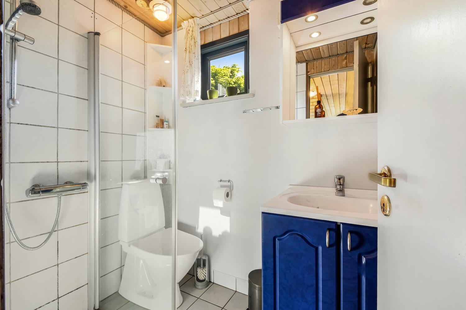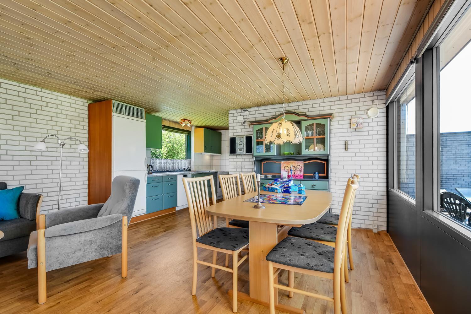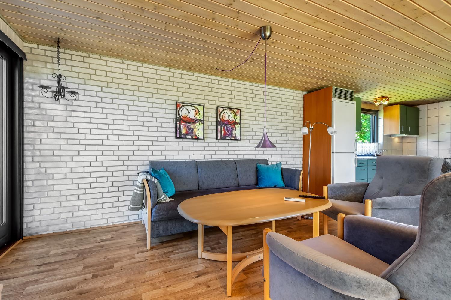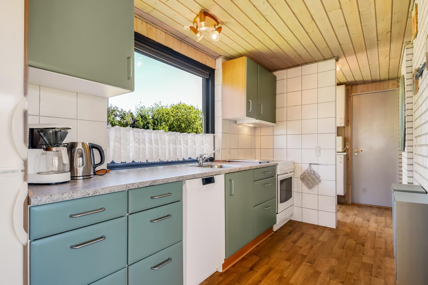 Fra stuen er der udgang til en stor delvis overdækket terrasse med massere af mulighed for en finde en plads i solen. Den store overdækket del udgør næsten en hel udestue og selv på gråvejsdage en det er dejligt sted at opholde sig. Der er grill, solvogne og havemøbler Stor åben, velholdt grund med massere af mulighed for boldspil og andre sjove aktiviteter. Efter en gåtur på ca. 600 m nåes Limfjorden. Det rolige og lave vand virker beroligende på alle og der er mulighed for en dejlig gåtur eller måske en lille dukkert i det rolig vand. Et hus til en god pris som er nemt at overskue og perfekt til parret eller den mindre familie.