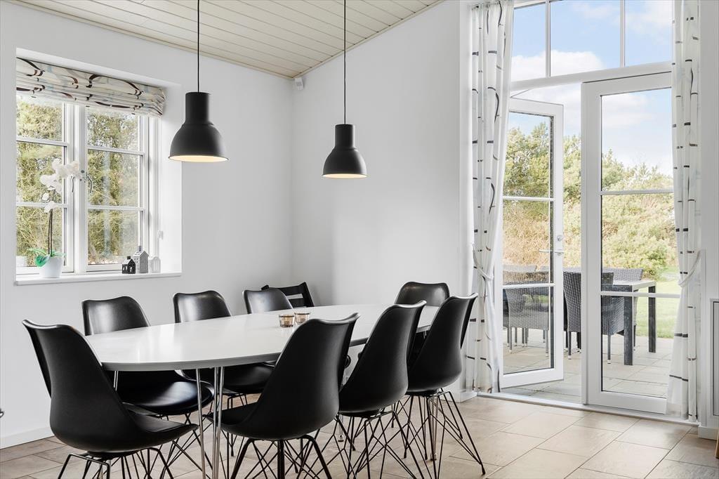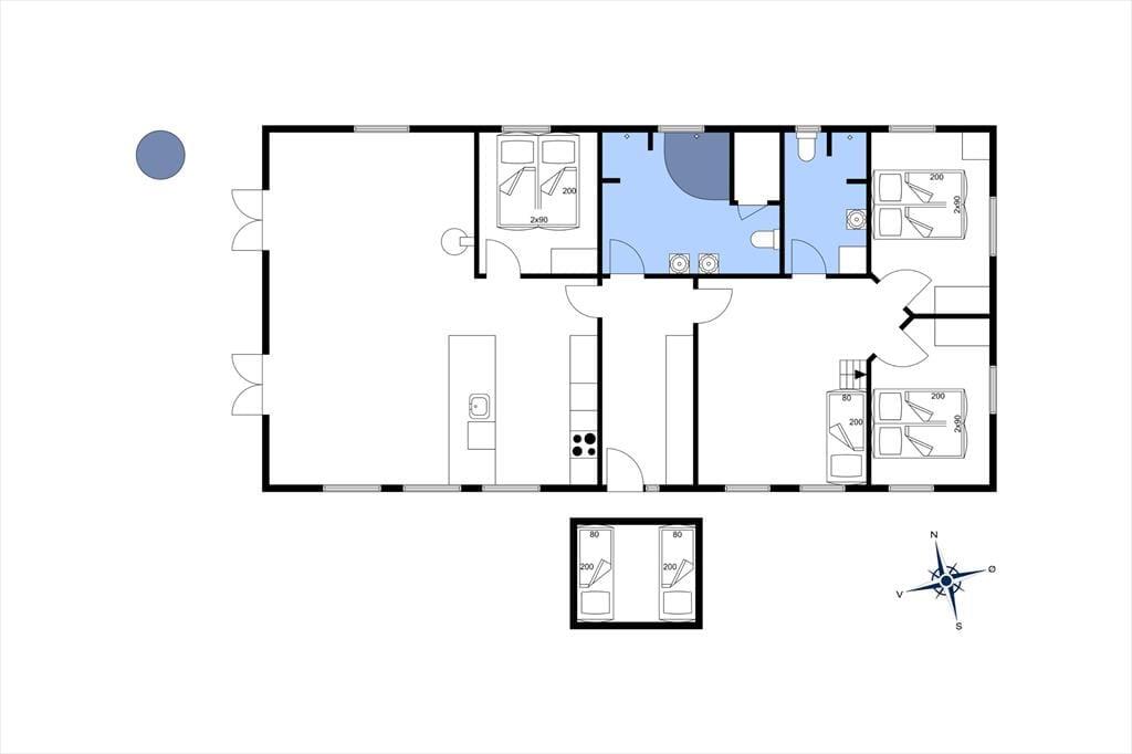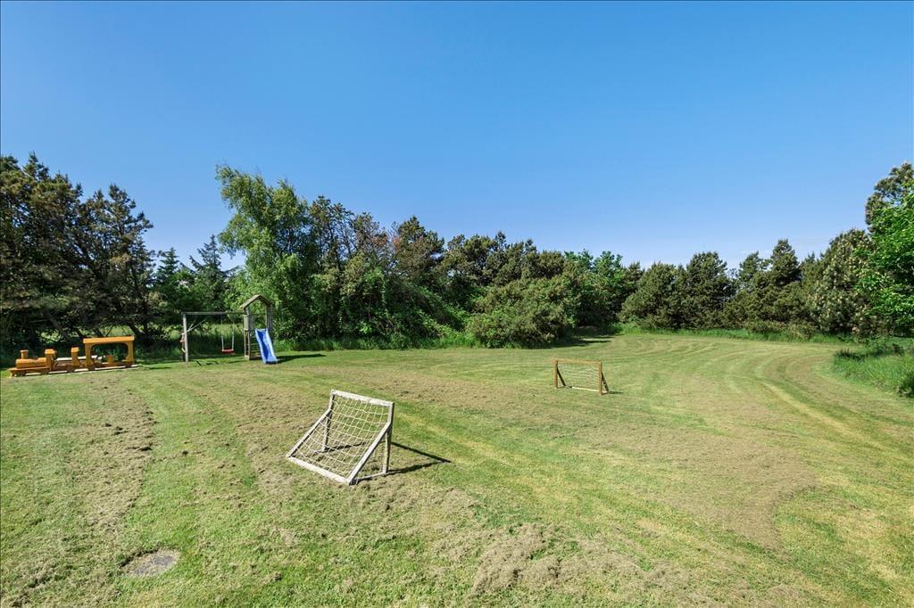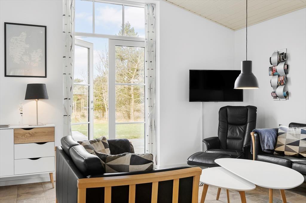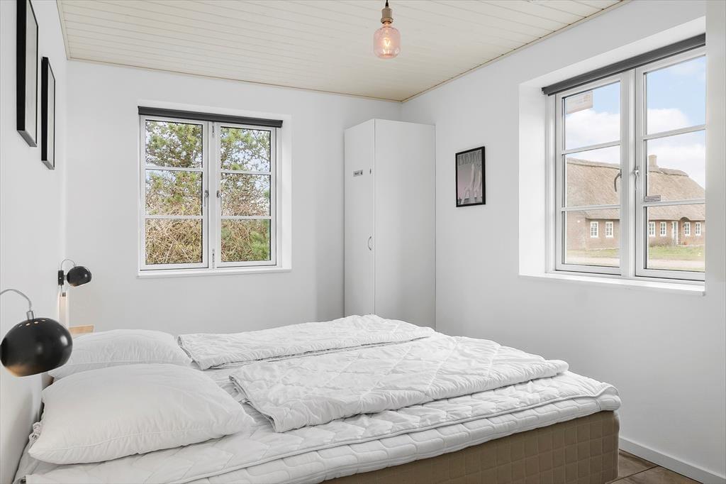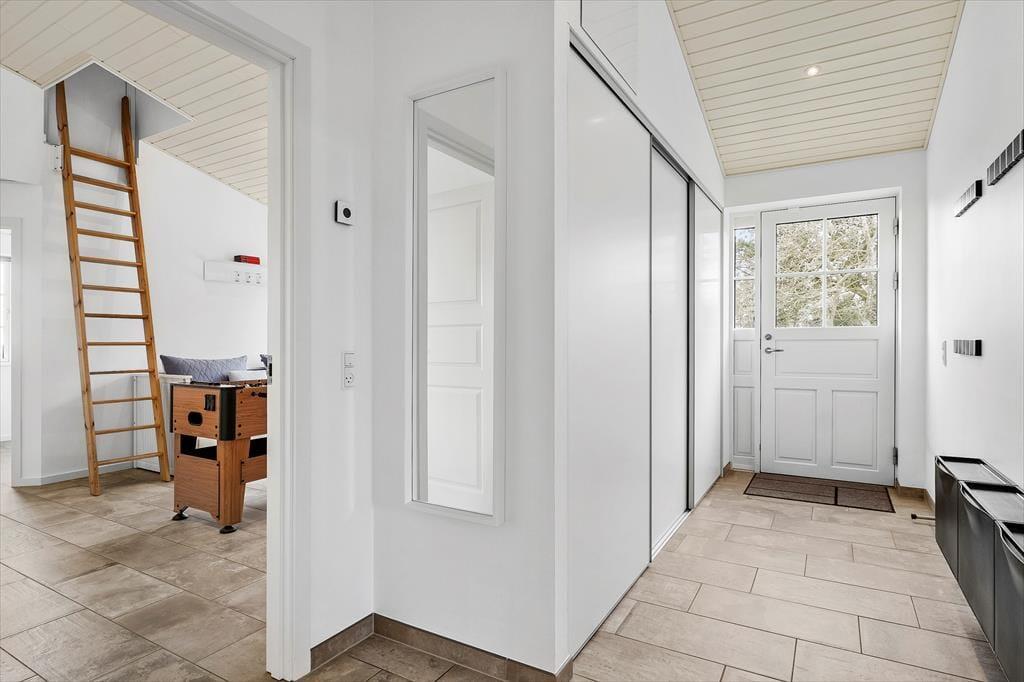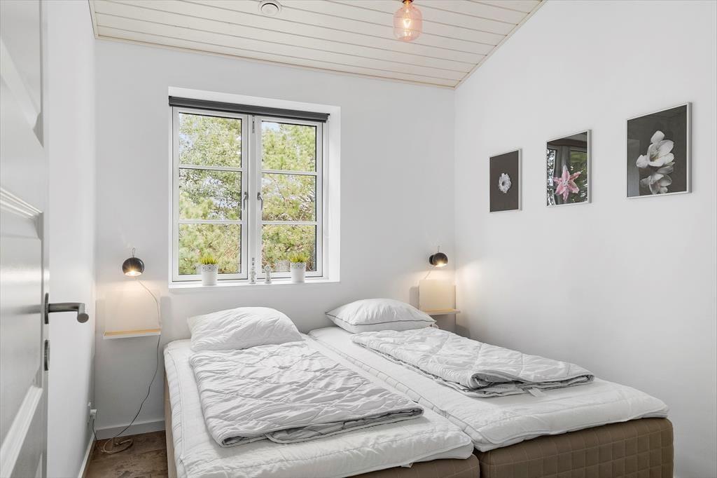 Sommerhuset er et gedigent murstensbyggeri fra 2017 på hele 146 m2, så rammen om ferielivet er både moderne og rummelig. Alle rum er lyse og indbydende – også entréen og de to badeværelser, hvoraf det ene er udstyret med både sauna og spabad. Husets store, højloftede opholdsrum er et skønt sted at samles, for her kan I hygge jer med at lave mad i køkkenafdelingen, spille brætspil ved spisebordet og flade ud i sofakrogen nær brændeovnen. De sociale stunder kan alternativt foregå i aktivitetsrummet, der er udstyret med både bordfodbold og PlayStation 3, så her kan store og små lege og game til den store guldmedalje. I rummet står også en dobbelt sovesofa, som er et godt supplement til sengepladserne på de tre soveværelser og på hemsen.