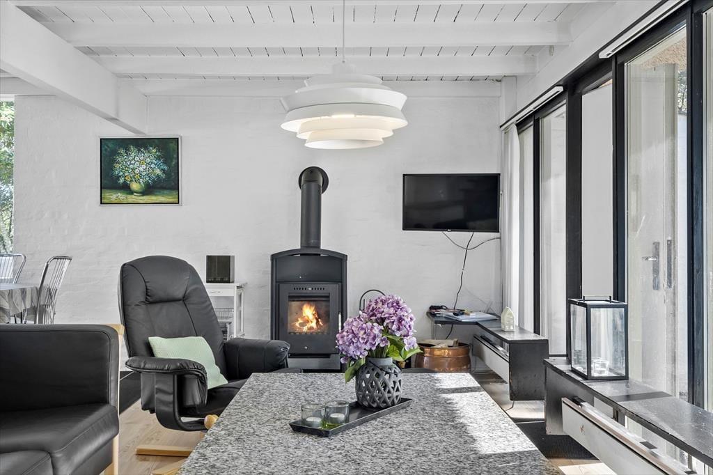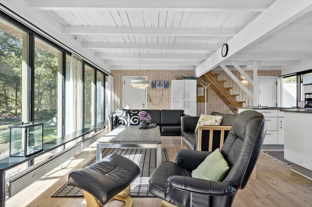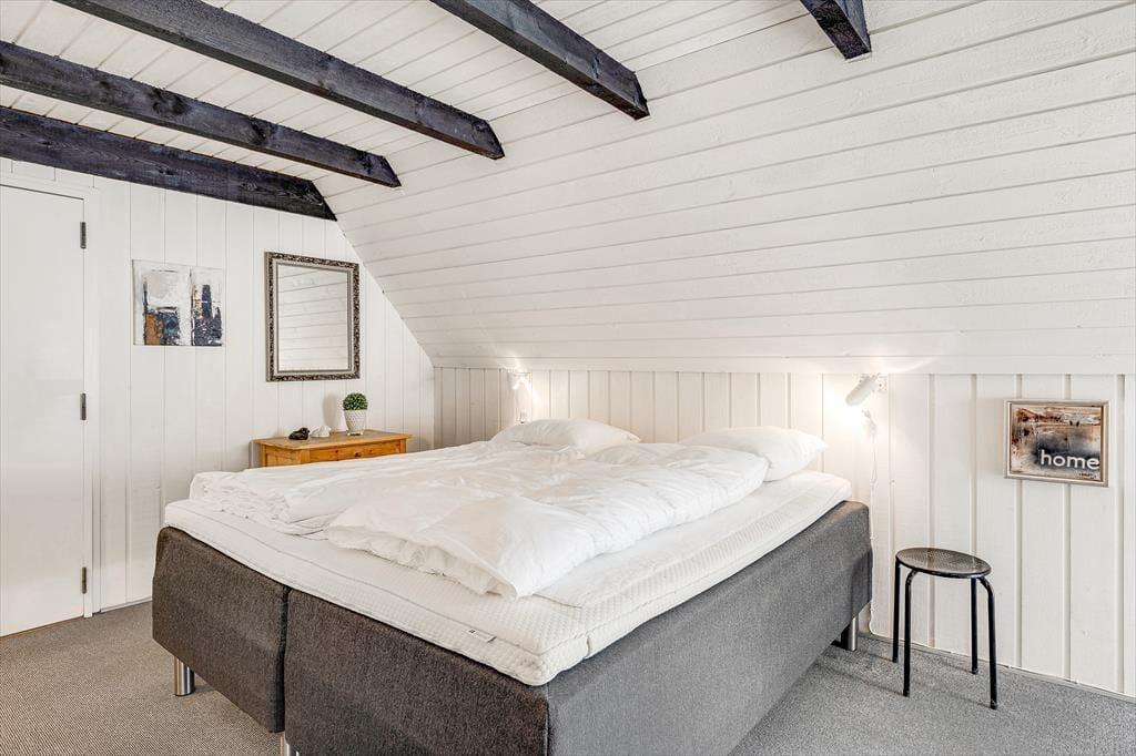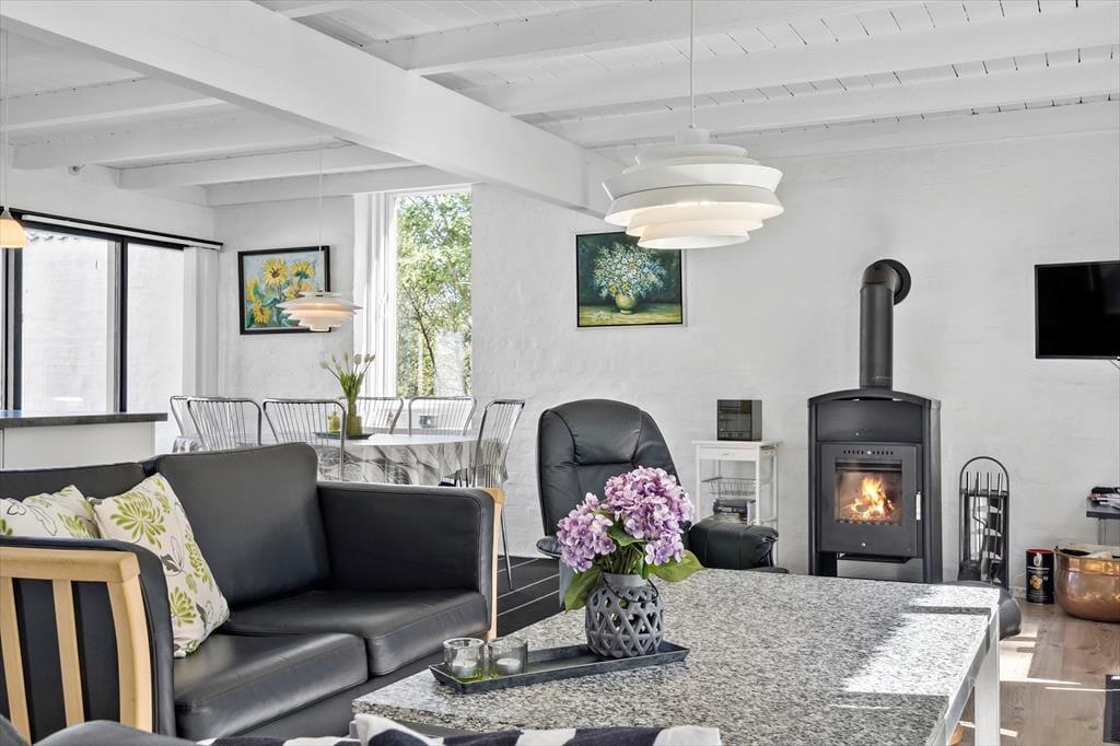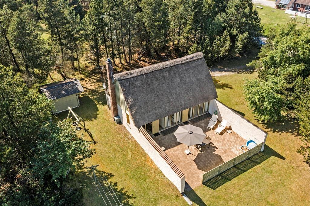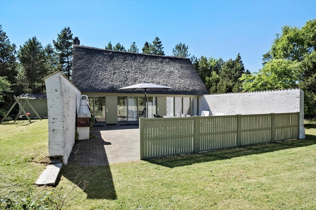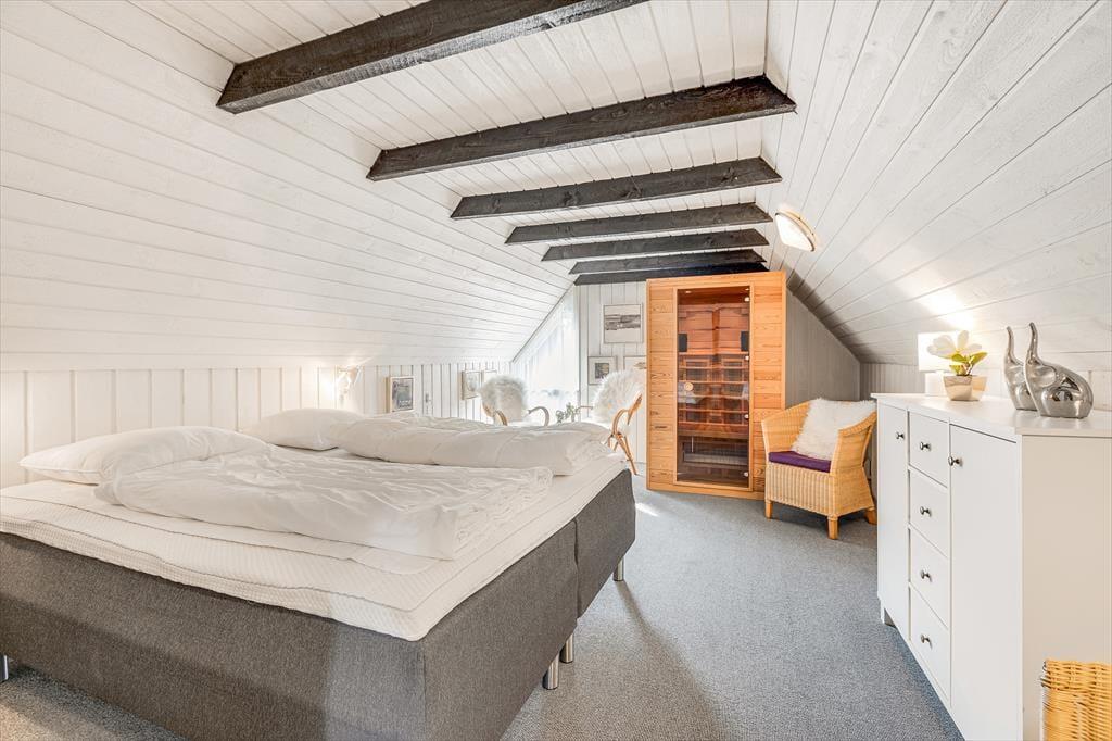 Det kønne, stråtækte sommerhus er opført i 1973, men det er tydeligt at se på den velholdte stand, at der er sket meget i mellemtiden. Inden døre giver det moderne køkken i opholdsrummet jer for eksempel en dejlig ramme om madlavningen, og takket være den åbne planløsning kan I sagtens tage del i familiehyggen, selvom I står og rører i gryderne. I opholdsrummet er der desuden brændeovn og fladskærms-TV, og de store vinduespartier sørger for gennemstrømmende lysindfald. I stueplan består planløsningen desuden af et badeværelse og et soveværelse, og går I ovenpå, finder I to ekstra soverum. På førstesalen er der installeret en infrarød sauna, så I kan forkæle jer selv med en afslappende saunatur, når I kommer hjem efter dagens udflugter og eventyr.
