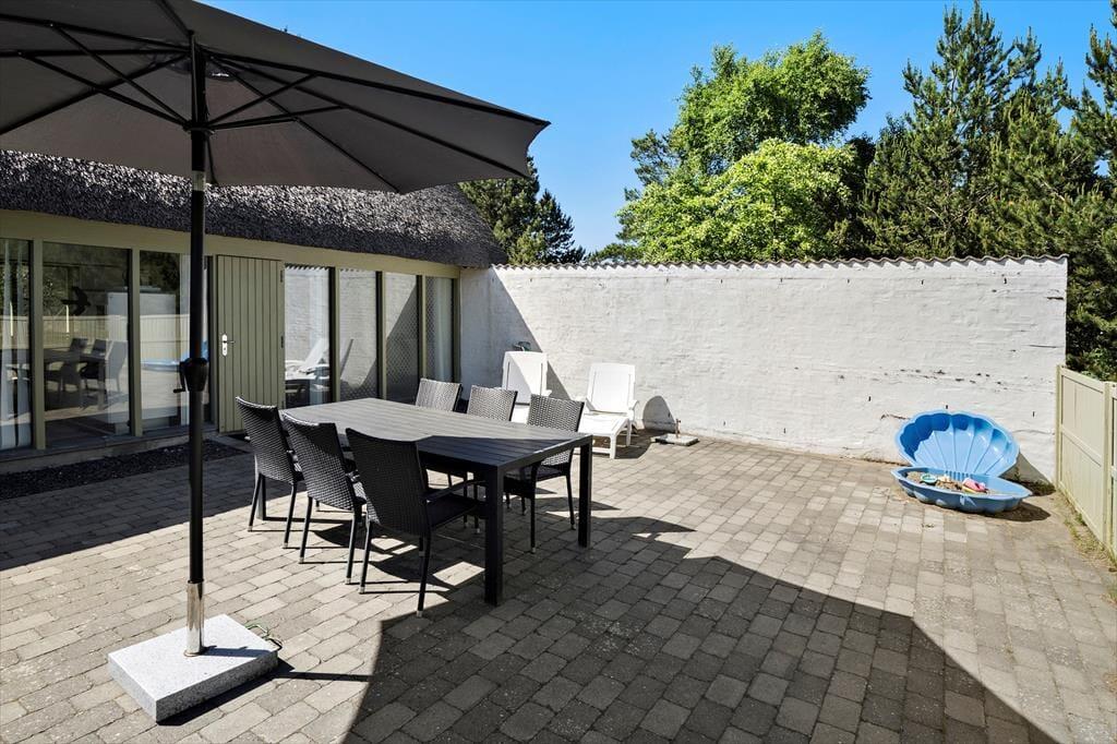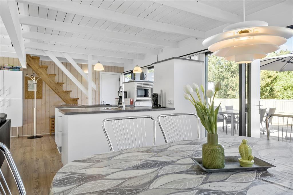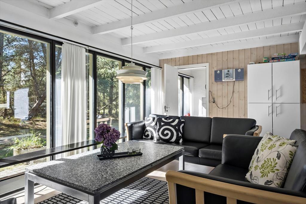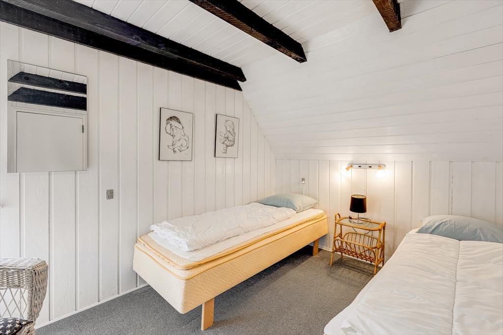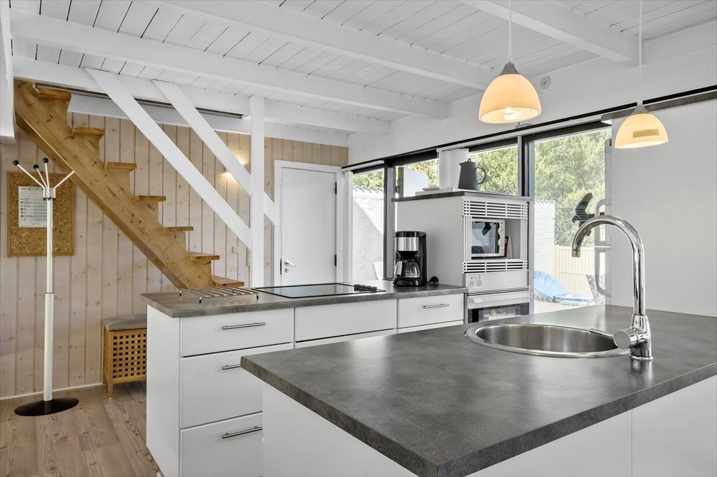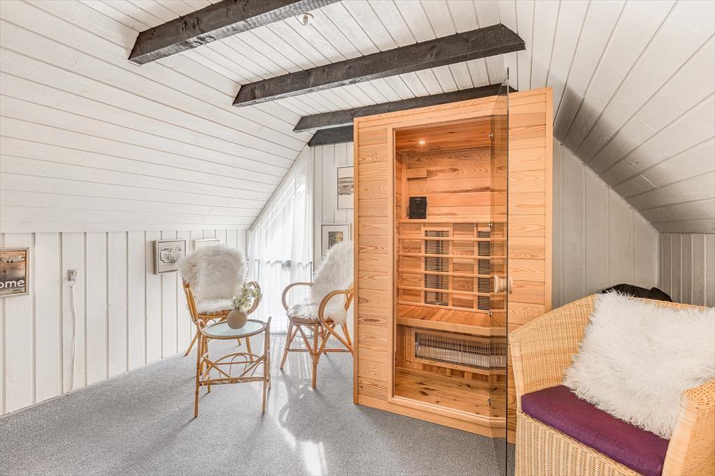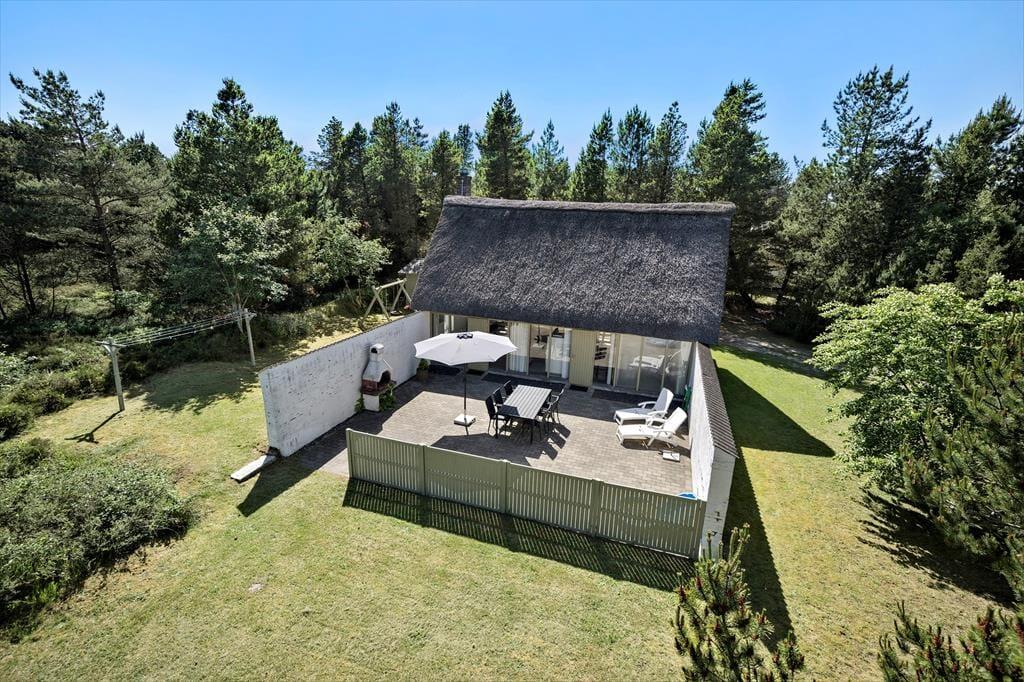 Det kønne, stråtækte sommerhus er opført i 1973, men det er tydeligt at se på den velholdte stand, at der er sket meget i mellemtiden. Inden døre giver det moderne køkken i opholdsrummet jer for eksempel en dejlig ramme om madlavningen, og takket være den åbne planløsning kan I sagtens tage del i familiehyggen, selvom I står og rører i gryderne. I opholdsrummet er der desuden brændeovn og fladskærms-TV, og de store vinduespartier sørger for gennemstrømmende lysindfald. I stueplan består planløsningen desuden af et badeværelse og et soveværelse, og går I ovenpå, finder I to ekstra soverum. På førstesalen er der installeret en infrarød sauna, så I kan forkæle jer selv med en afslappende saunatur, når I kommer hjem efter dagens udflugter og eventyr.
