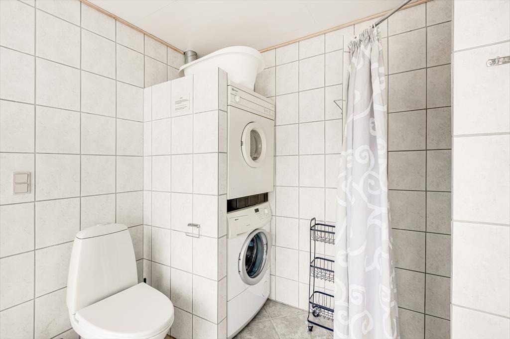 Så snart solen skinner, får I formentlig lyst til at rykke driverlivet ud på terrassen. Den skærmes af murværk og hegn, så den fungerer som en ugeneret solgård, hvor I kan sidde helt i læ. Naturgrunden måler hele 2500 m2, så I har masser af plads til at spille havespil eller slænge jer på et tæppe på græsplænen, mens I nyder udsigten til fyrretræer og lilla hedelyng.
