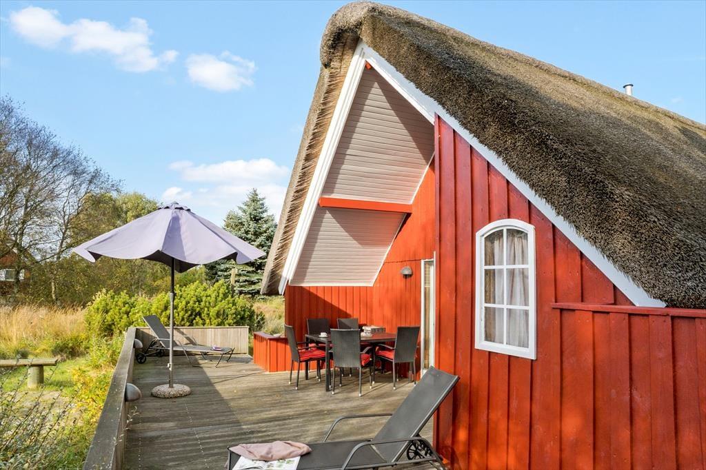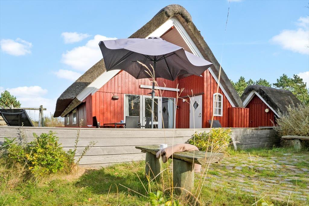 De ydre omgivelser er helt i top her på Thadesvej i Toftum: Dette skønne sommerhus ligger nemlig på en stor naturgrund lige op til et åbent marklandskab, og fra matriklen er der kort afstand til lyngklædte klitheder, Vadehavet og den dejlige badestrand ved Lakolk.