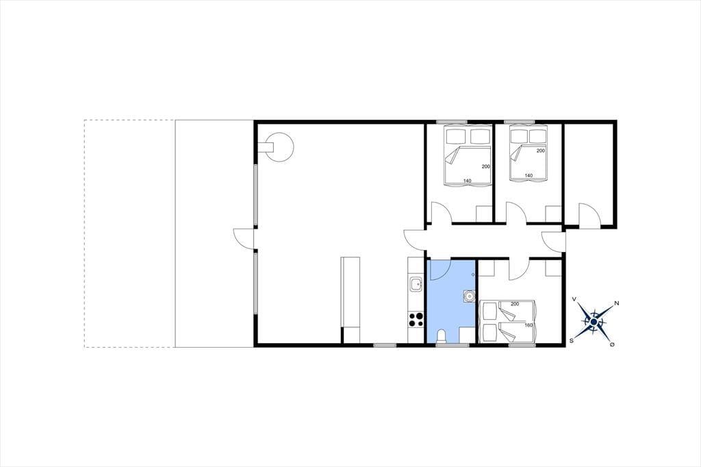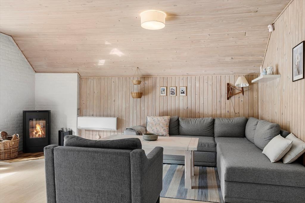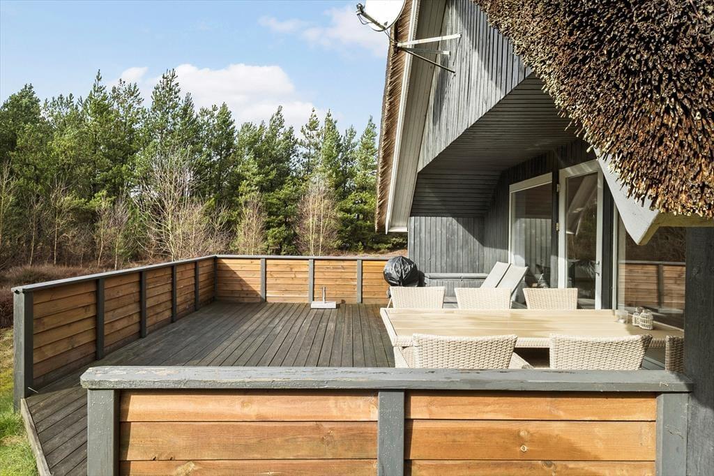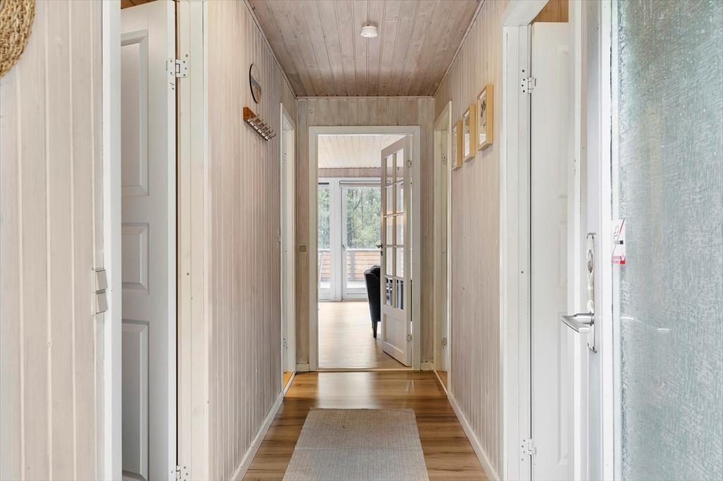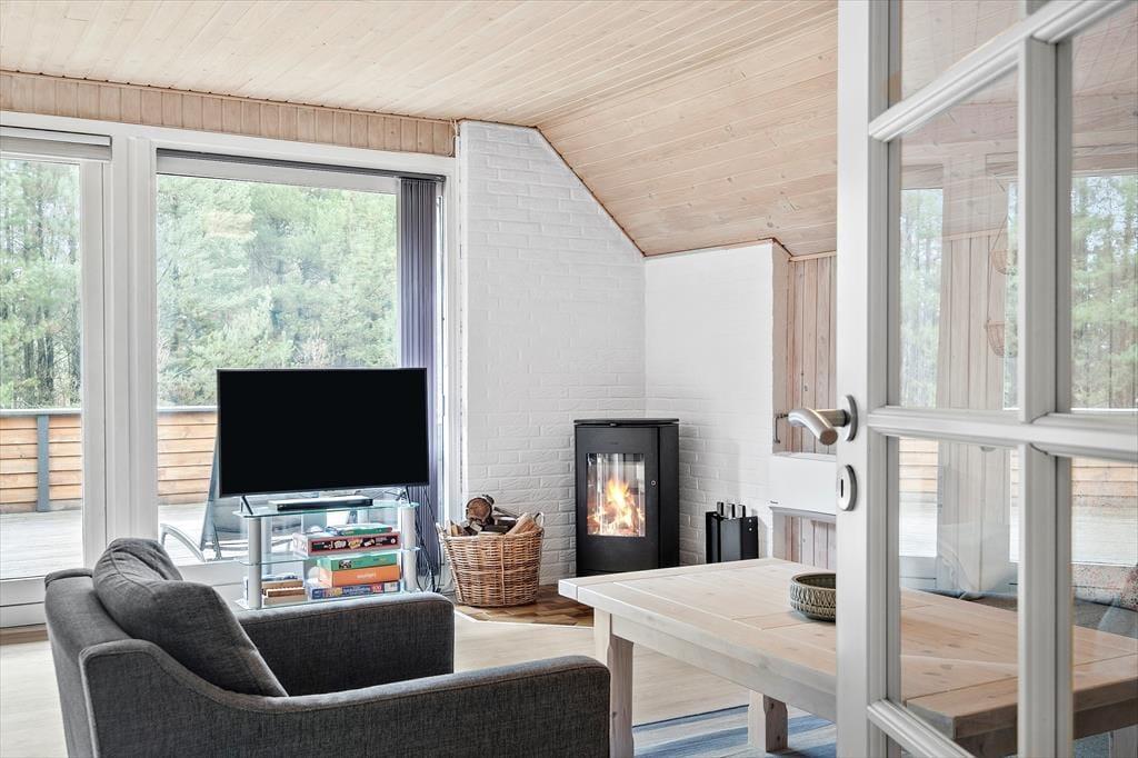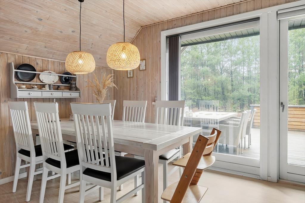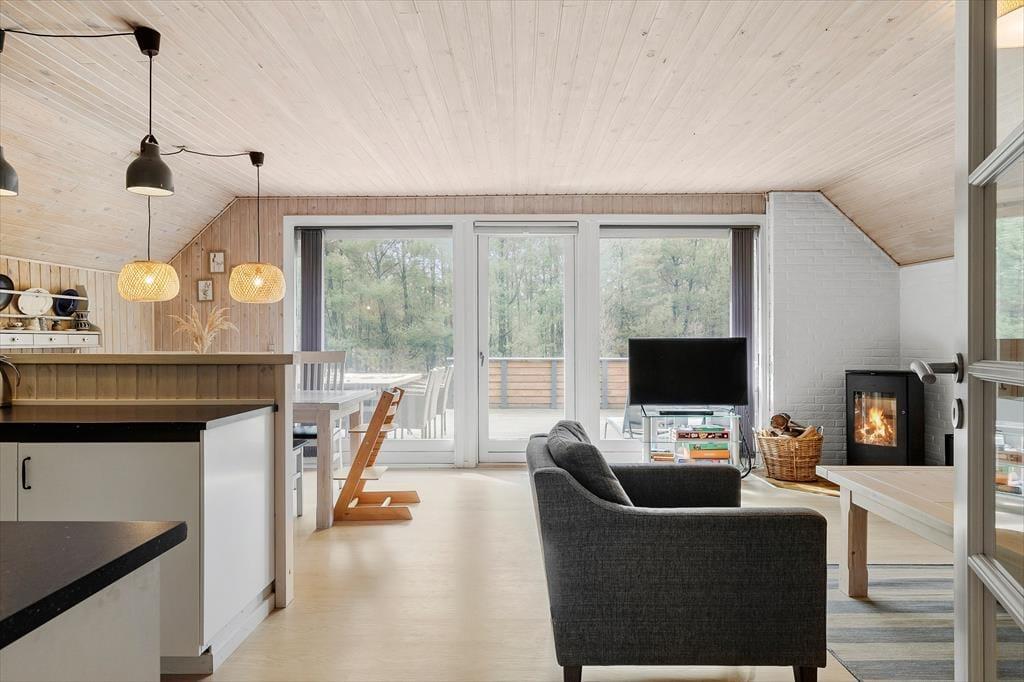 Det stråtækte sommerhus giver jer en dejlig ramme om feriens hyggestunder, der blandt andet kan bestå af brætspil samlet omkring spisebordet og sofaafslapning nær stuens brændeovn. Er I sultne, har I gode arbejdsforhold i det åbne køkken, så det er nemt at trylle noget lækkert frem – og der er for øvrigt også opvaskemaskine, der letter afrydningen efter måltidet. Fra sommerhusets gang har I adgang til husets øvrige rum, der tæller et pænt brusebadeværelse og tre gode soveværelser, der alle er udstyret med dobbeltsenge.