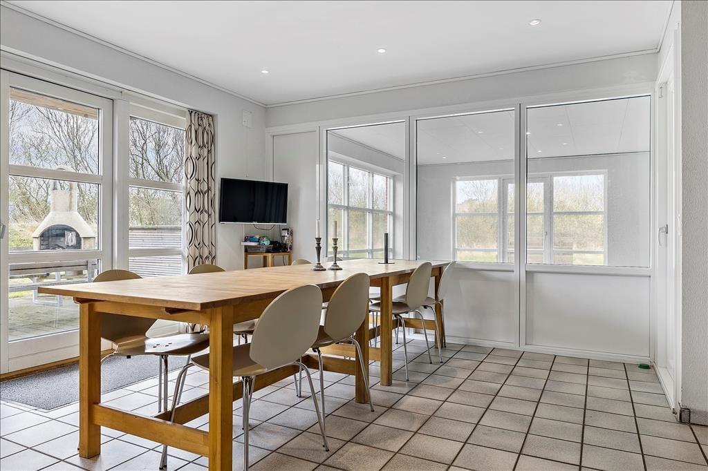 Både ude og inde er der masser af dejlige opholdssteder i dette store kvalitetssommerhus i Toftum. I kan derfor allerede nu begynde at glæde jer til totalafslapning nær stuens brændeovn, tilbagelænet solbadning på den ugenerede terrasse og endda en daglig svømmetur i den indendørs pool afdeling.