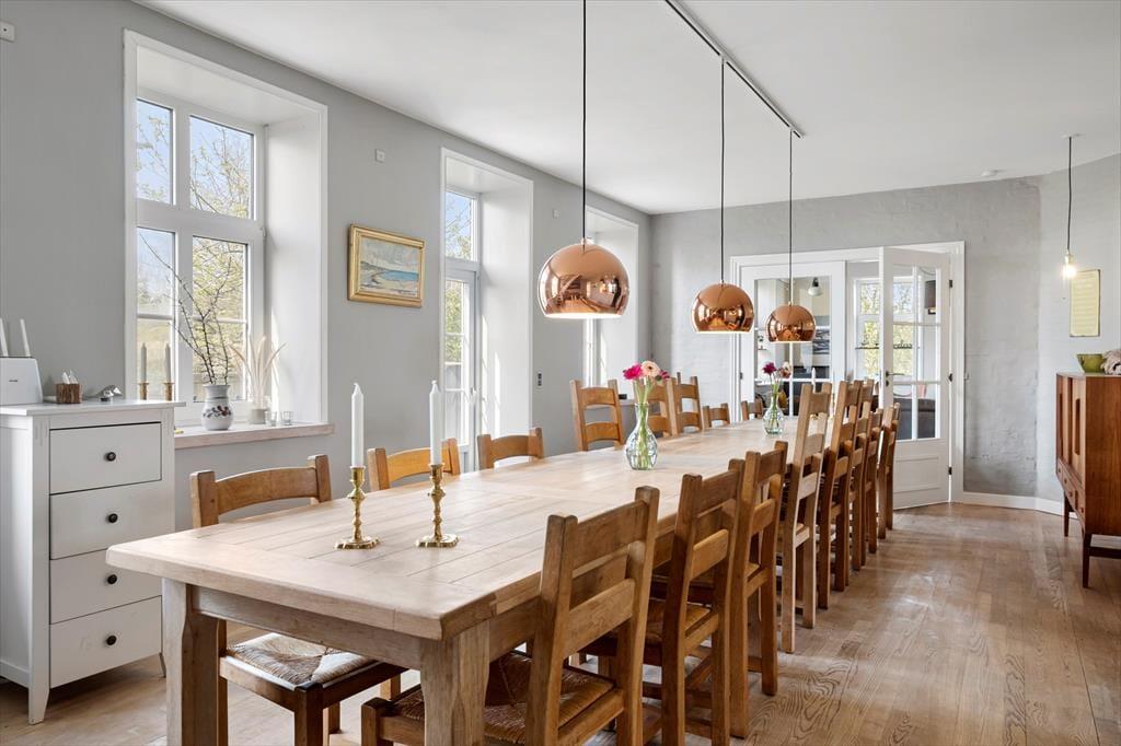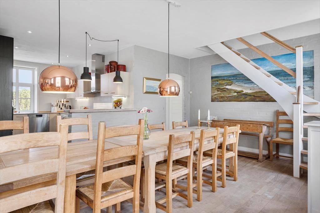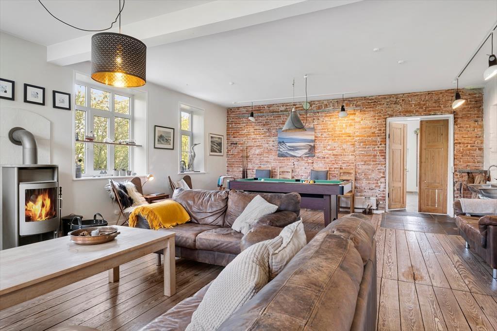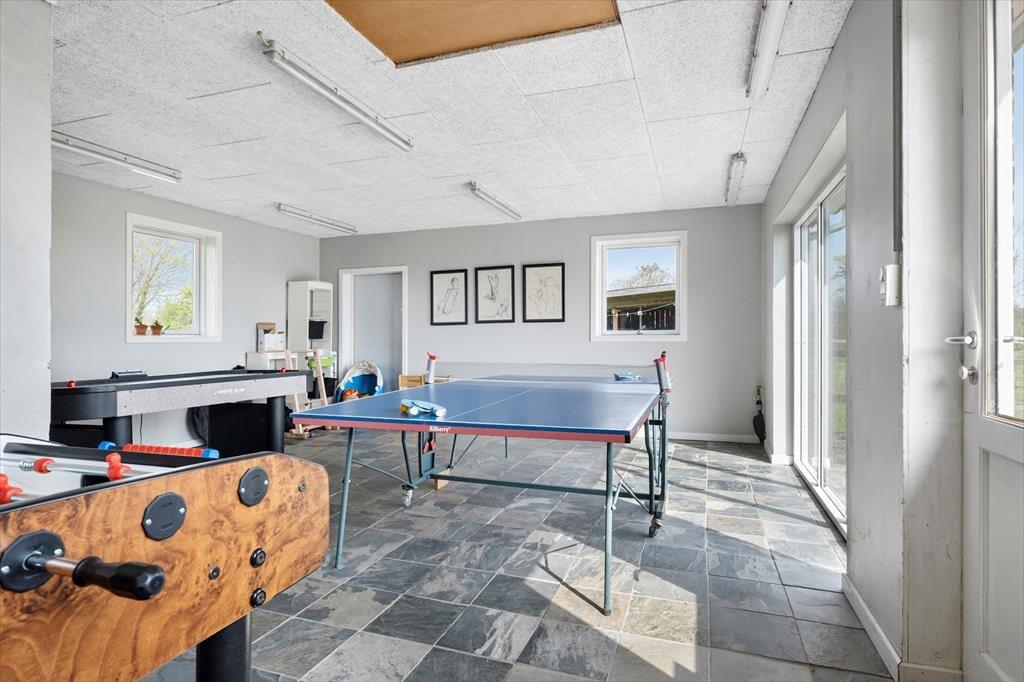 Sommerhuset har en velfungerende planløsning, for det er indrettet, så hele selskabet kan samles, men at I også kan nyde ferielivet hver for sig eller i mindre flokke. Det giver en masse fleksibilitet – for eksempel hvis ungdommen har lyst til at spille bordtennis, air hockey og bordfodbold i aktivitetsrummet i timevis, mens de voksne hellere vil hyggesnakke over en kop kaffe eller et glas rødvin. På førstesalen finder du også to opholdsrum, som er perfekte til en stille stund med en god bog eller et spil kort, mens det store køkken-alrum indbyder til rolige morgenmadsstunder og overdådige fællesmiddage ved langbordet. Den tilstødende stue er stor og rummelig, og her er der brændeovn, komfortable sofaer, fladskærms-tv og endda et pool bord at hygge sig med. Meget mere kan fremhæves om indretningen, men til slut skal det bare nævnes, at der er solceller på taget, så huset er mere energivenligt og holder forbruget nede.
