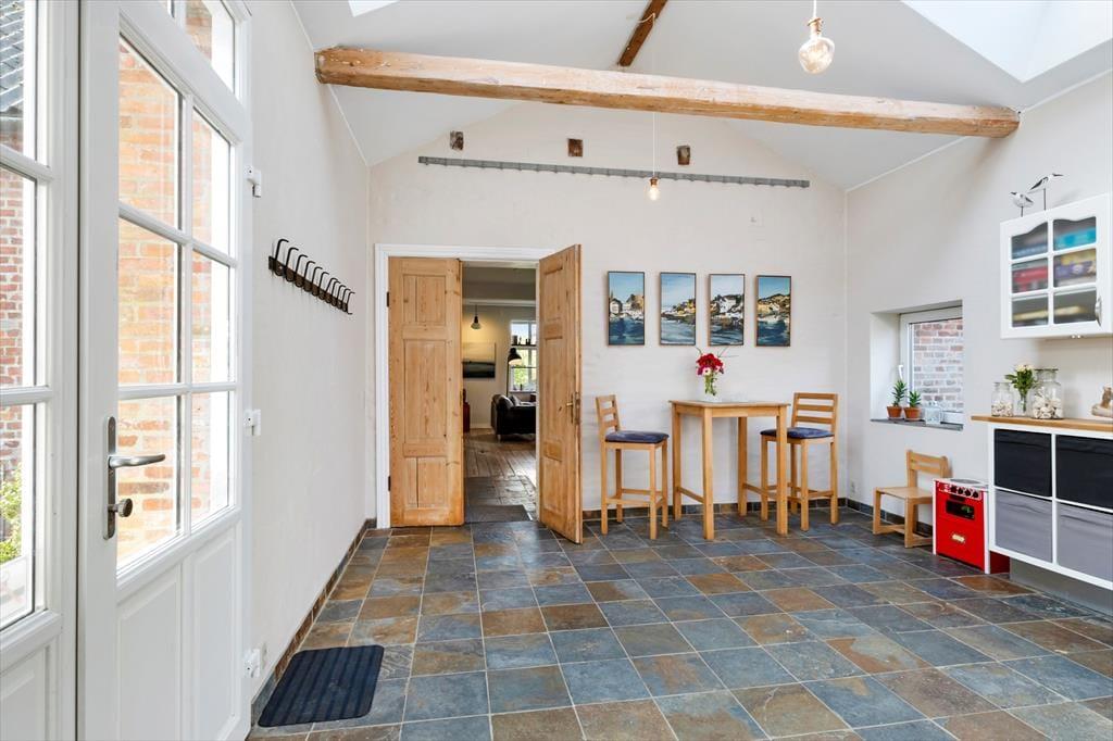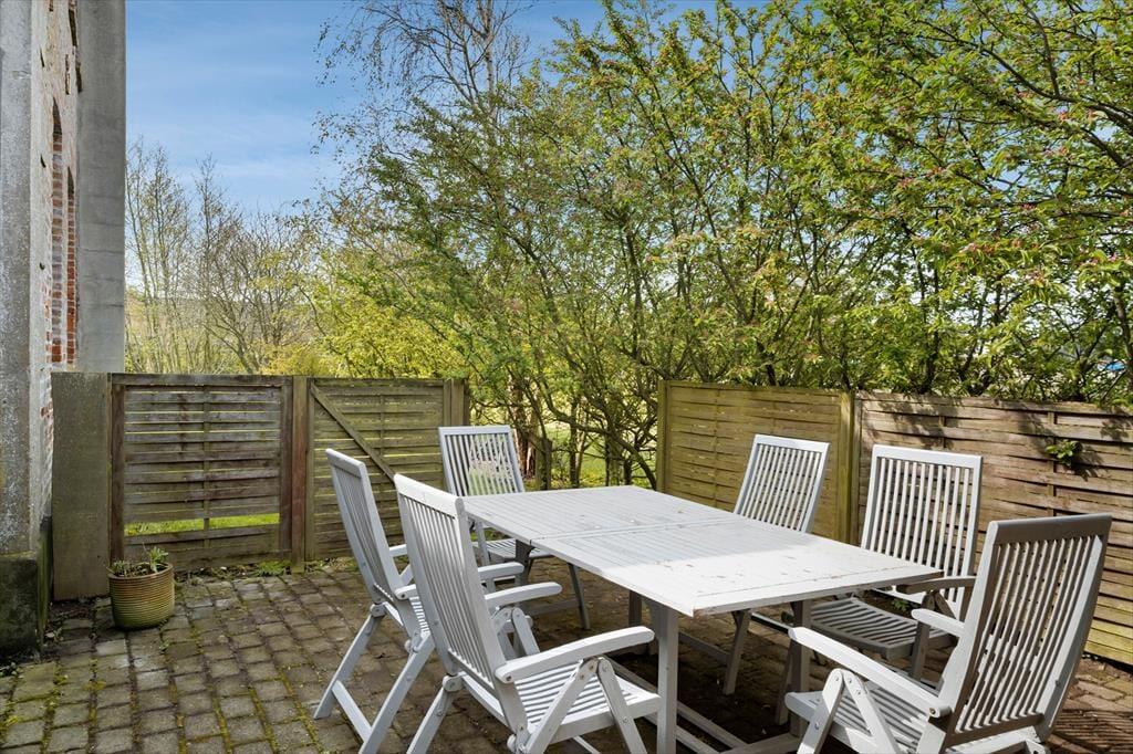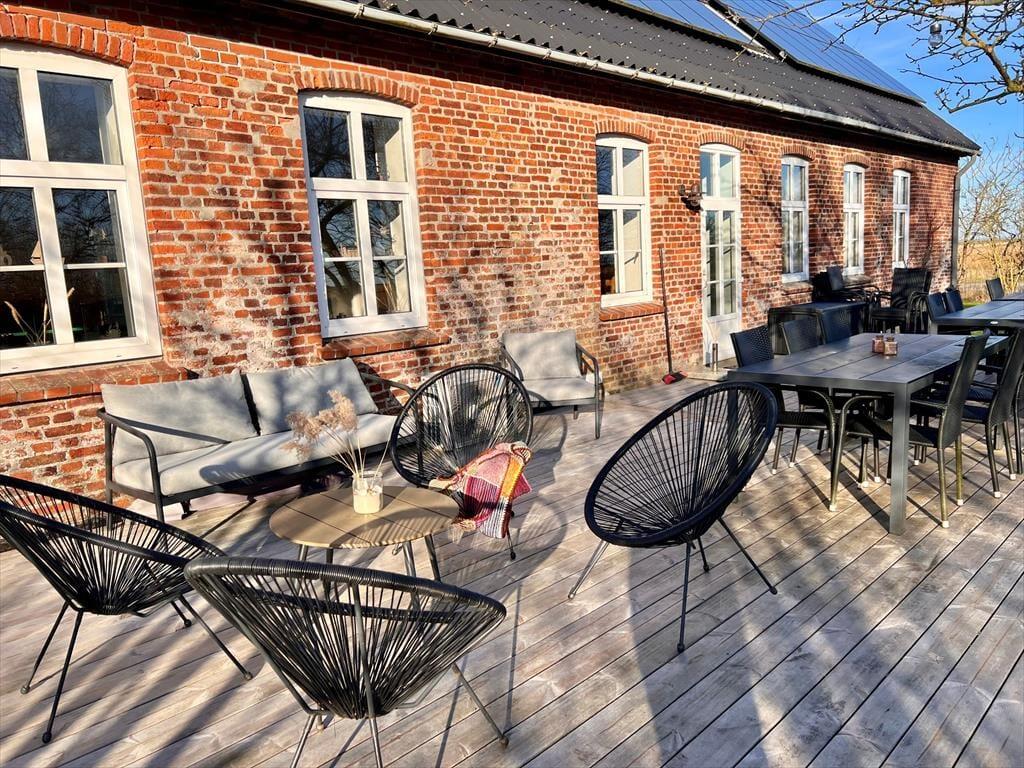 Rundt om ejendommen er der flere gode terrasser at vælge imellem, så hvis du vil have en tilbagelænet pause i solen eller sidde ude i den lyse sommeraften, er der flere muligheder. På den ene terrasse står en grill, og den kan du selvfølgelig flittigt tage i brug, hvis familien er vild med pølser, majskolber eller andre friskgrillede lækkerier. På den grusbelagte gårdsplads kan der nemt holde flere biler, og der er for øvrigt mulighed for opladning af elbil. De græsklædte arealer på den store naturgrund inviterer til både leg, afslapning og boldspil: Der er gynger og sandkasse til de yngste, som måske også får held med at udfordre de voksne i en fælles fodboldkamp.