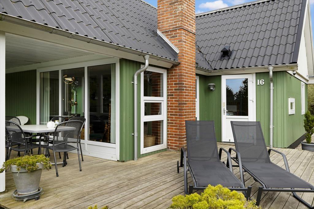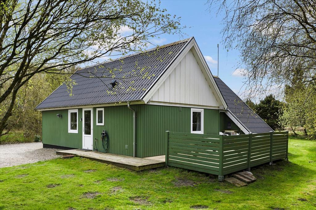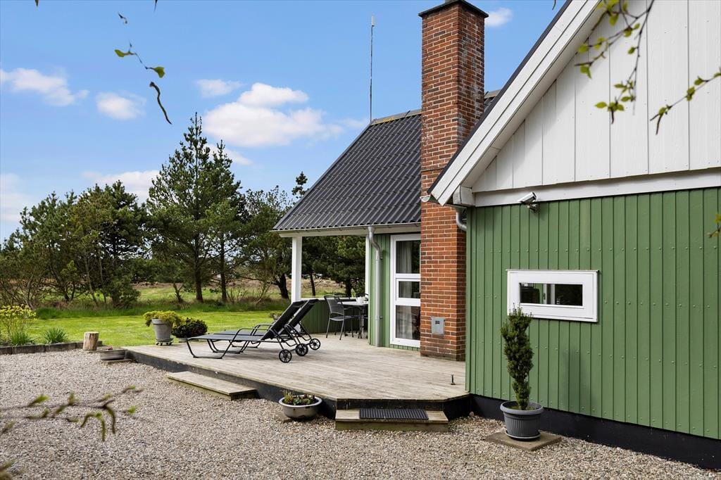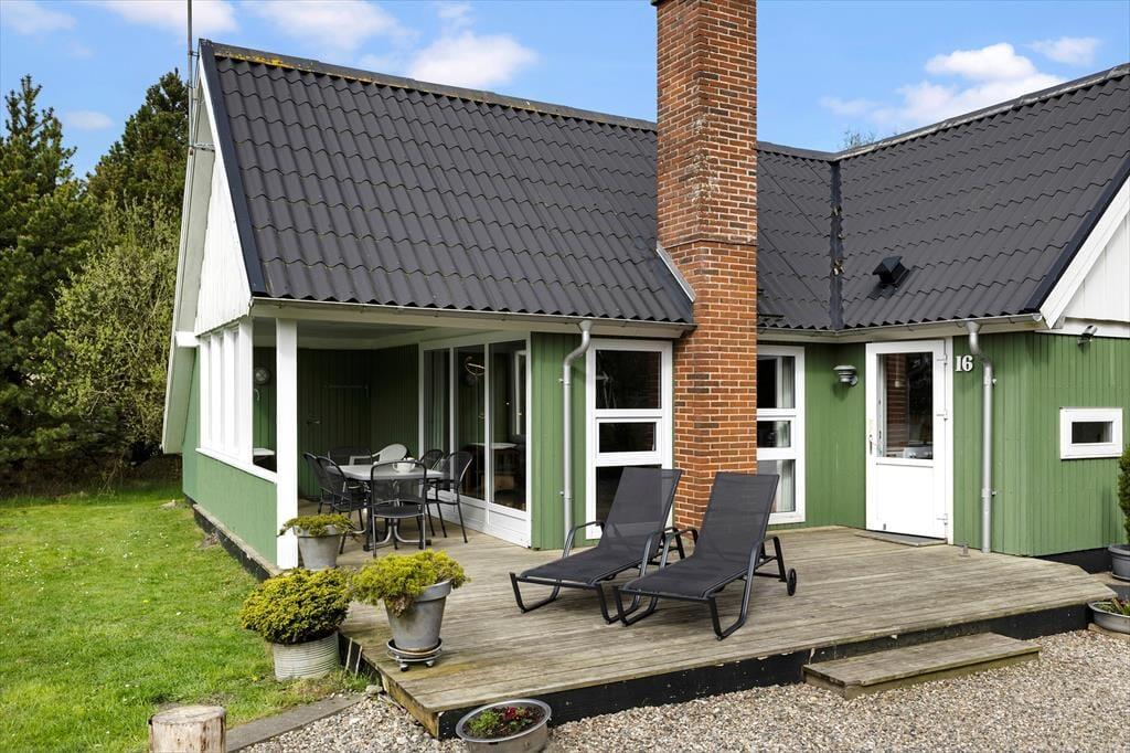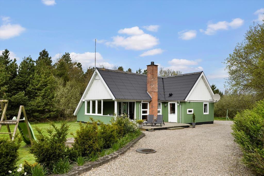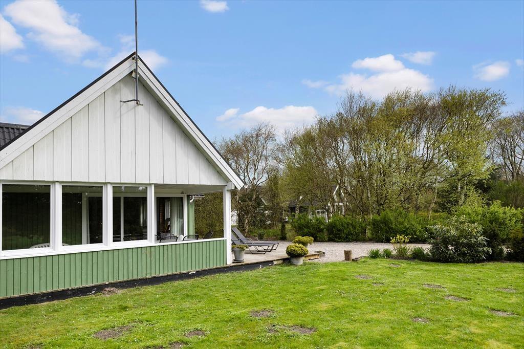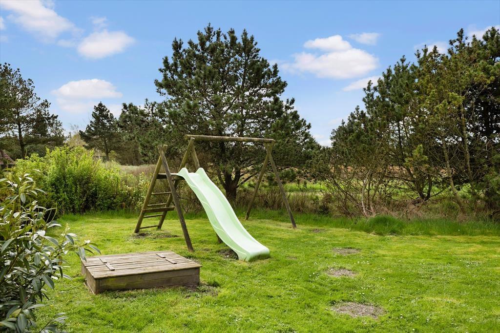 Omkring huset er der flere terrasser at vælge imellem, så uanset om du vil drikke morgenkaffe i solen, spise sommerfrokost i skyggen under halvtaget eller slutte dagen af med grill og gode samtaler i det gyldne lys, kan det fint lade sig gøre. Grunden er med sine 1518 m2 dejligt stor og godt afskærmet af træer og anden bevoksning. Der er både et legestativ og en sandkasse til de yngste feriegæster, og græsplænen inviterer til leg og boldspil for både børn og hunde – hvis du har en eller to hunde, du gerne vil have med på ferie, er de nemlig velkomne her i huset.