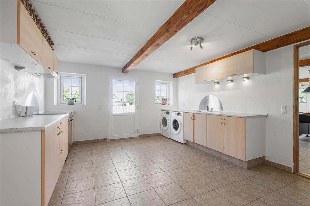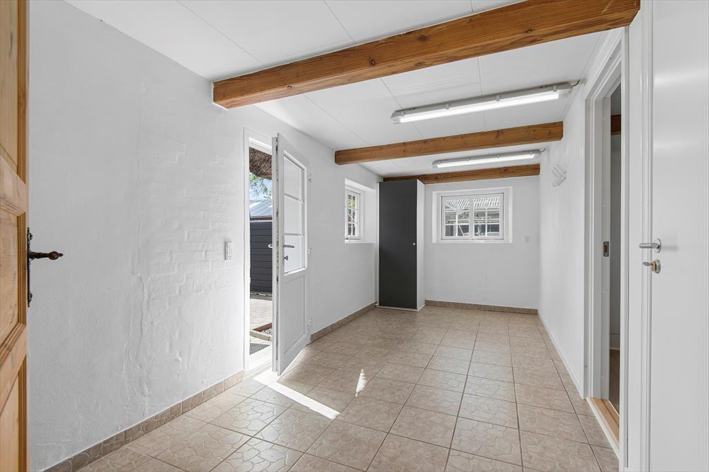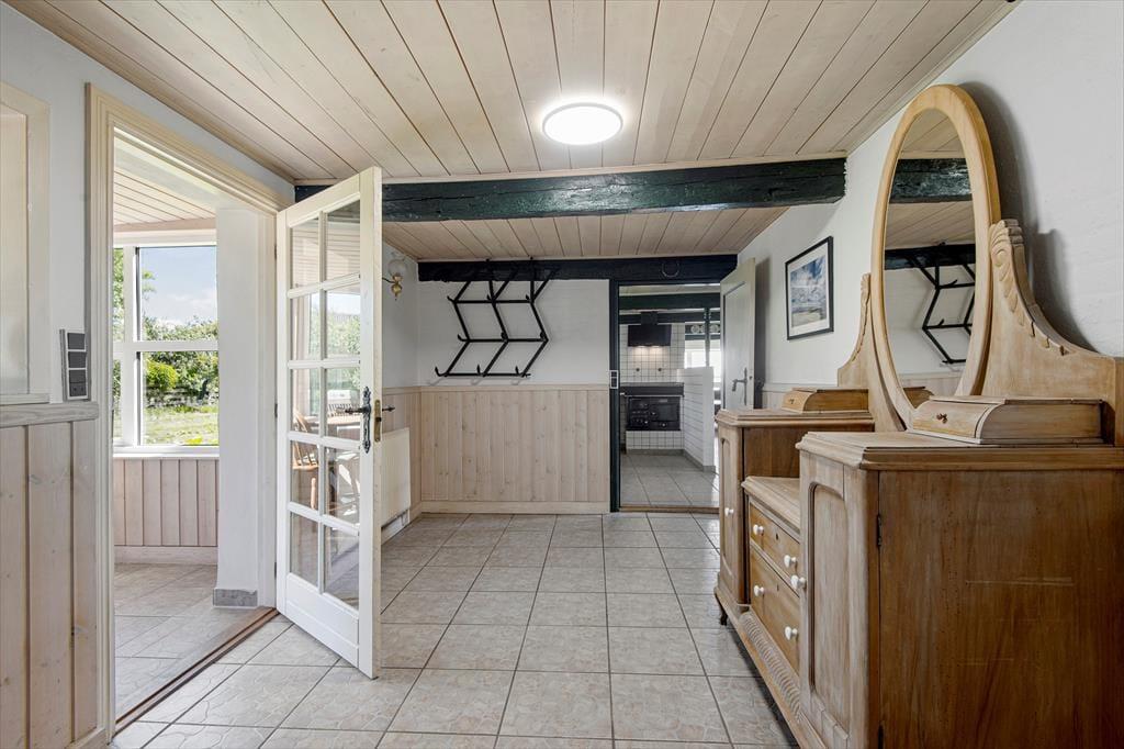 I dele af huset er loftshøjden under bjælkerne 180 cm.
