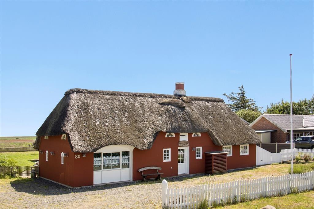 Er du på udkig efter et stort sommerhus, der kan give dig og dine kære en stemningsfuld ramme om jeres kommende ferie? Så skal du se nærmere på dette charmerende stråtækte Rømøhus, der ligger på en stor grund med smuk udsigt over Juvre Enge.