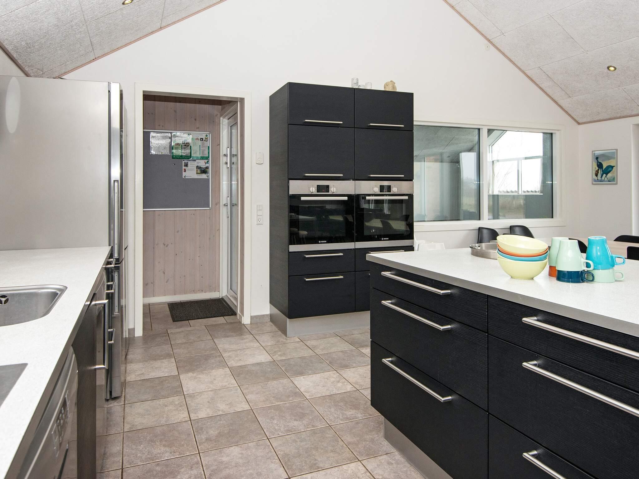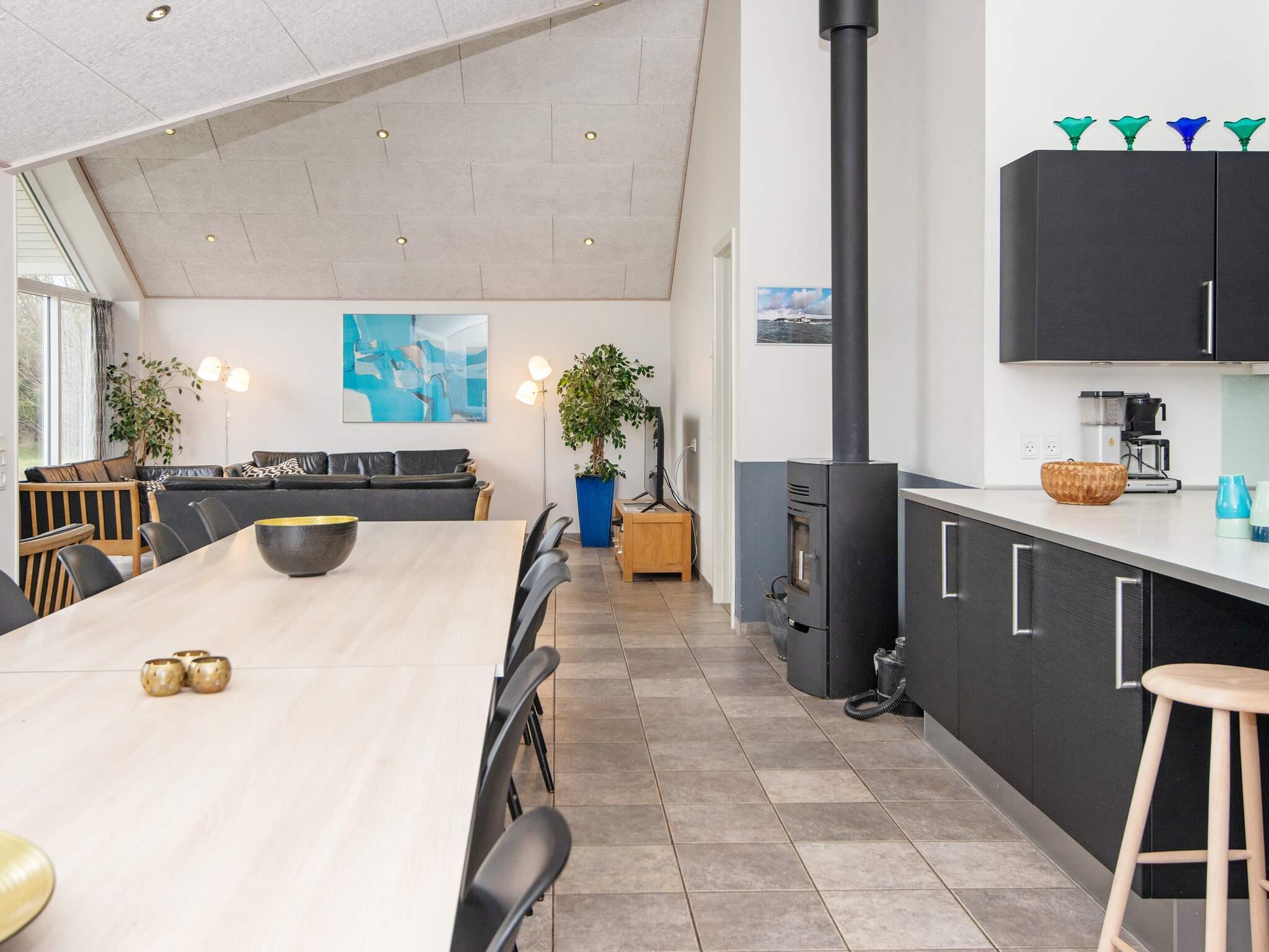 Alle soveværelser og hems er udstyret med boxmadrasser. Det rummelige køkken er udstyret med alle hvidevarer i dobbeltudgave og er i åben forbindelse med spisepladsen. Fra spiseplads og opholdsrum er der udgang til ca. 100 m² stor terrasse. Opholdsrummet er smagfuldt indrettet med fladskærms-tv, Blu-Ray afspiller, sofagruppe og en brændeovn.