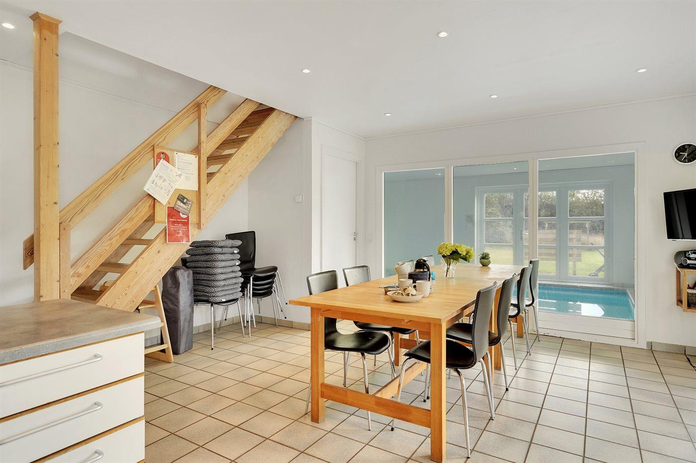 Sommerhuset egner sig til 12 personer samt 1 barn op til 3 år. Ferieboligen er på 229 m², er i 2 plan, og er bygget i 2006. Det er tilladt at medbringe 1 husdyr. Ferieboligen er udstyret med energibesparende luft til vand varmepumpe. Der er gulvvarme i stuen. Der er gulvvarme i entréen. Der er gulvvarme i gangen. Der er gulvvarme i alrummet. Ferieboligen har vaskemaskine. Tørretumbler. Frysekapacitet på 100 liter. Der er desuden brændeovn. Til de små er der 1 stk. barnestol. Puslebord.