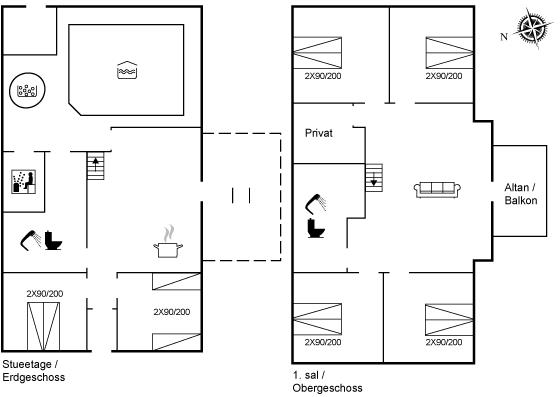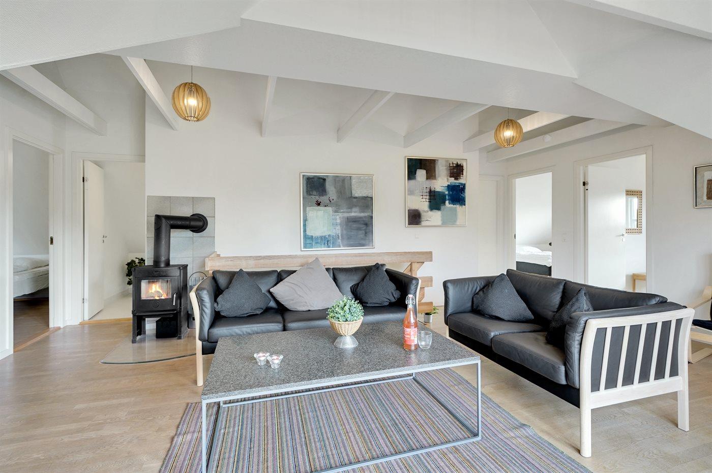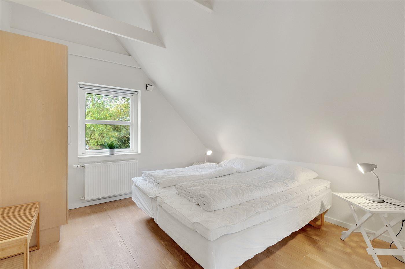 Der er i alt 6 soveværelser. Sovepladserne fordeler sig på: 10 sovepladser i dobbeltsenge. 2 sovepladser i enkeltsenge. Derudover er der 1 stk. barneseng.