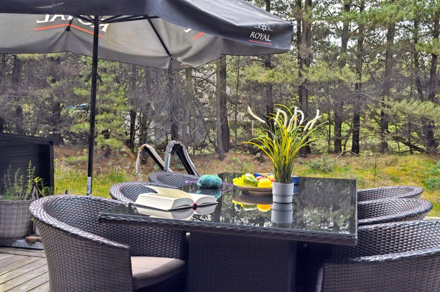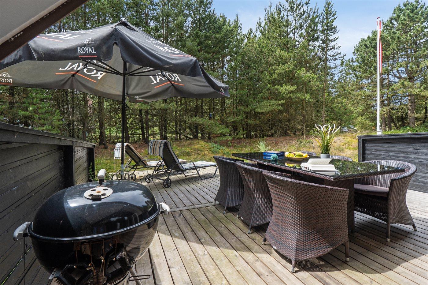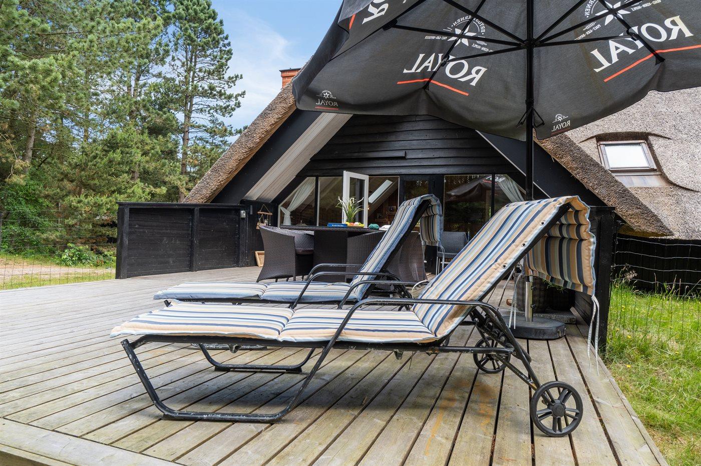 Ferieboligen er beliggende på en 2733 m² stor naturgrund. Der er 3150 m til havet. Der er 2700 m til Vadehavet. Nærmeste forretning er beliggende i en afstand af 2900 m. Der er en golfbane i en afstand af 9500 m. Til ferieboligen hører 36 m² terrasseareal. Desuden er der 12 m² overdækket terrasse. Der er installeret stik til opladning af elbil. Type 2 stik. Parkering ved ferieboligen.