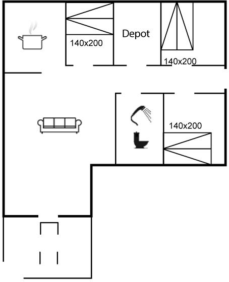 Der er i alt 3 soveværelser. Sovepladserne fordeler sig på: 6 sovepladser i dobbeltsenge.