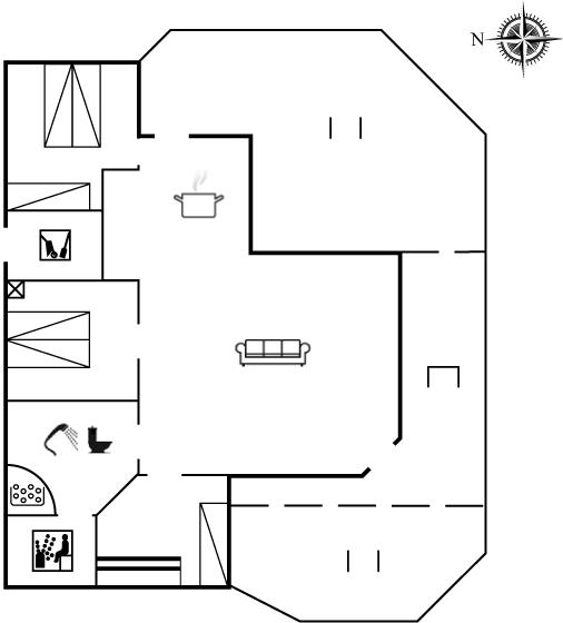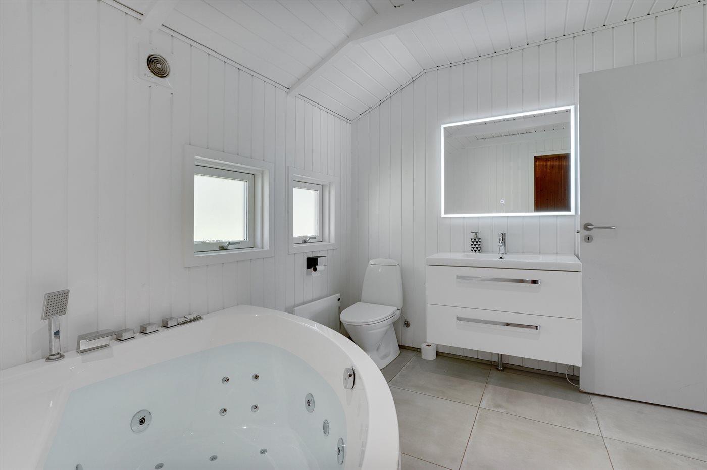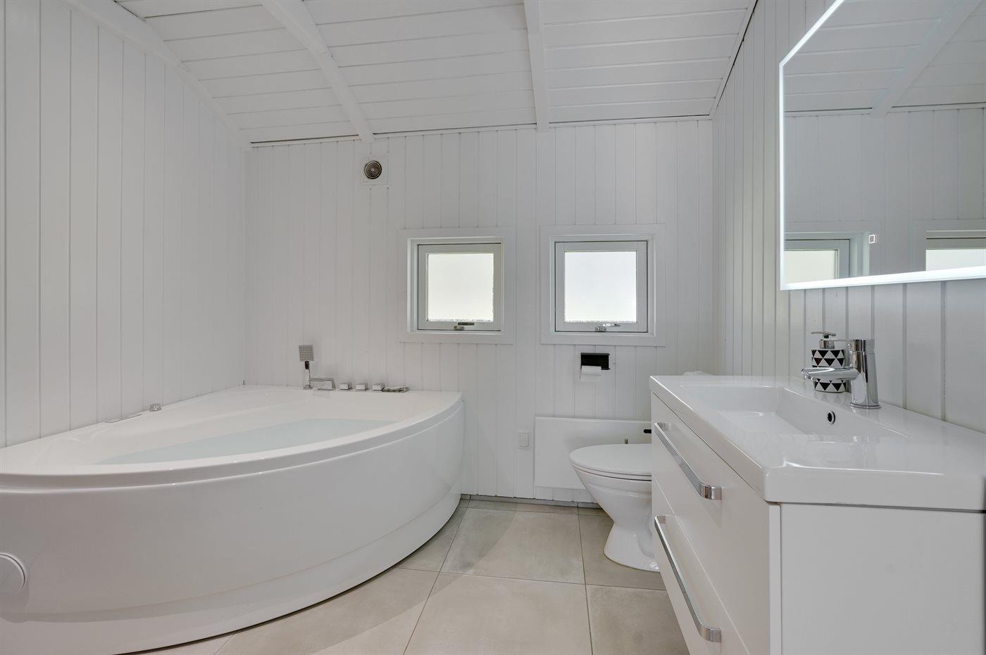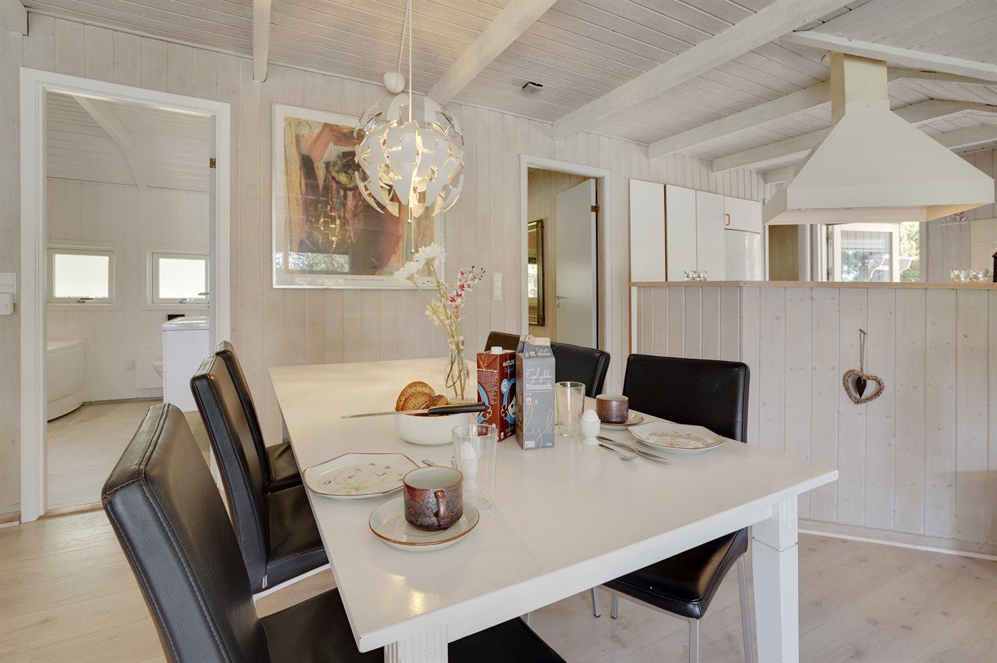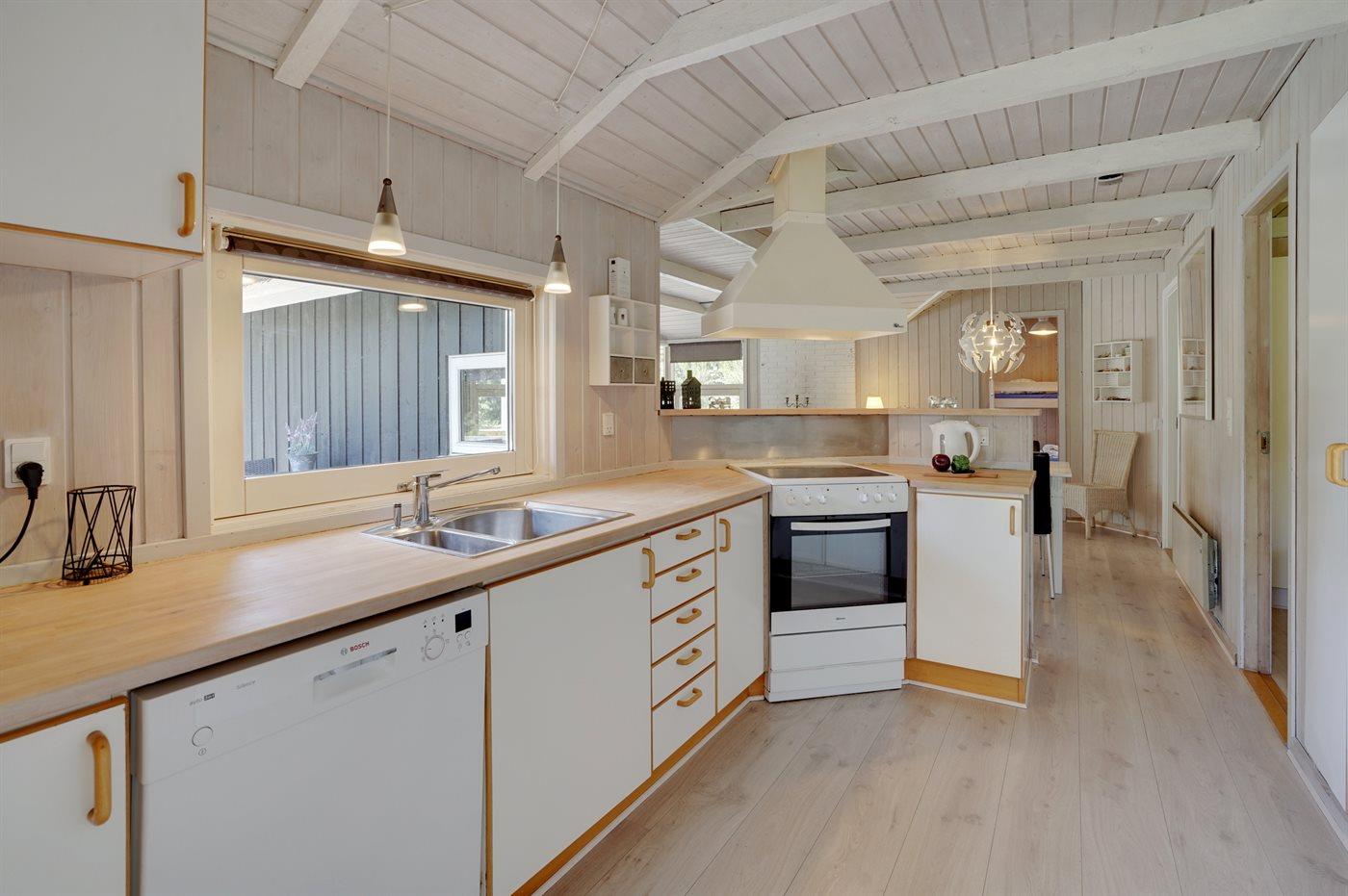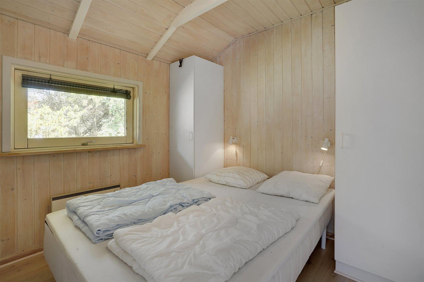 Flot, stråtækt sommerhus i træ, bygget i 1992 og renoveret i 2011, beliggende på en stor, tilbagetrukket naturgrund med lyng. Grunden ligger ugeneret og er omgivet af træer. Til huset hører en stor, afskærmet, delvist overdækket terrasse med havemøbler. Badeværelse med bl.a. 2-pers. spa, gulvvarme, bruser og direkte adgang til husets sauna. Det flotte, lyse køkken er kombineret med spisestuen og er udstyret med bl.a. opvaskemaskine, vaskemaskine og tørretumbler. Opholdsstuen er indrettet med store panoramavinduer, brændeovn, DVD-afspiller, TV med parabolantenne og stereoanlæg med CD-afspiller samt udgang til terrassen. Desuden gratis, trådløs internetforbindelse til rådighed (computer skal medbringes). Sovepladserne er fordelt på 3 værelser; 1 med dobbeltseng, 1 med dobbeltseng og 1 enkeltseng samt 1 med køjeseng og 1 enkeltseng. Til de små feriegæster er der barneseng, høj barnestol, sandkasse og gynge til rådighed.