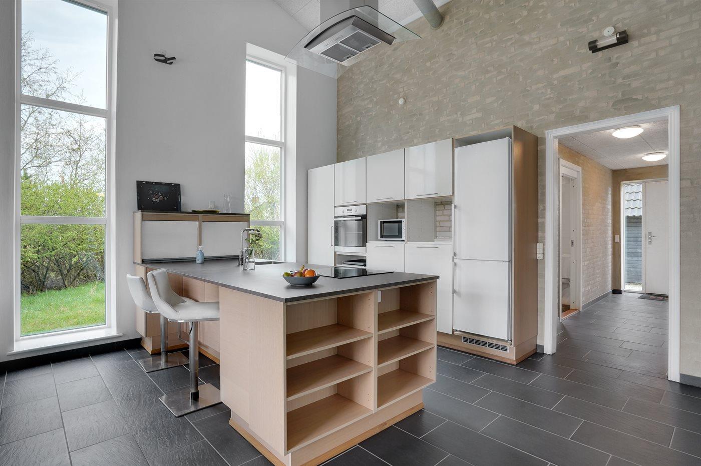 Køkkenet er udstyret med 1 køleskab. Der er 4 keramiske kogeplader, varmluftovn, mikrobølgeovn samt opvaskemaskine.