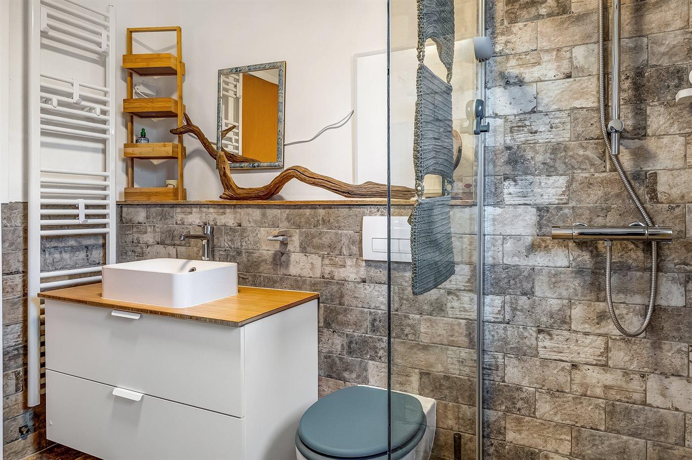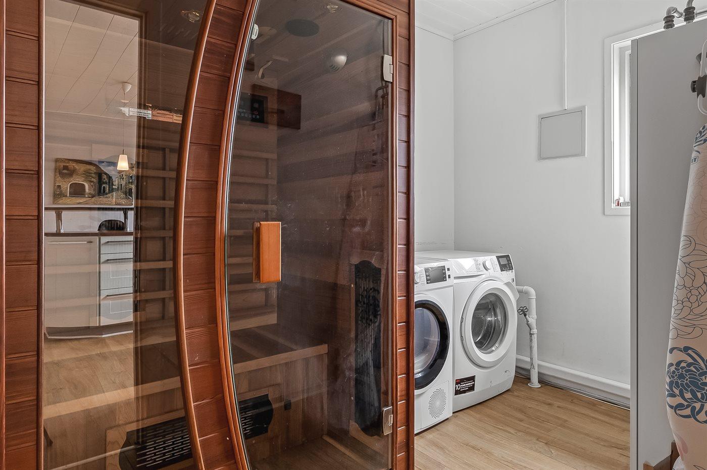 Der er 1 badeværelse med bruseniche og 1 toilet.. Der er gulvvarme på 1 badeværelse. I den infrarøde sauna er der mulighed for afslapning.
