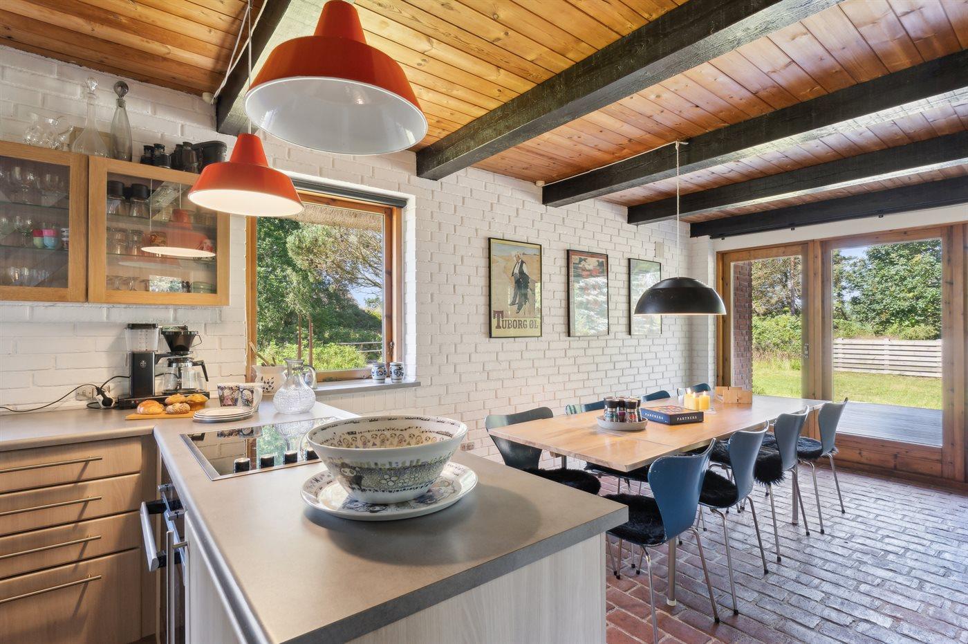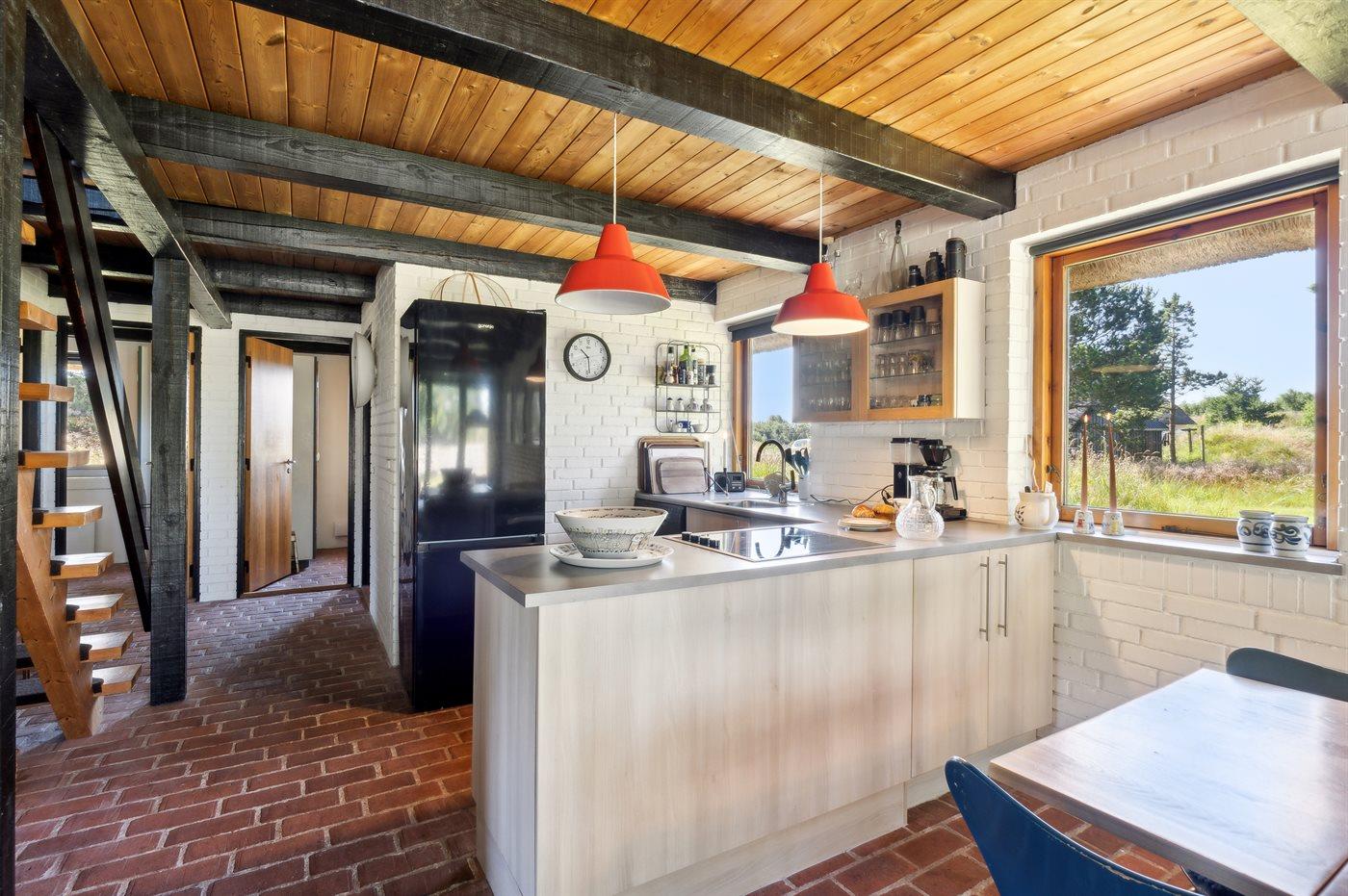 Køkkenet er udstyret med 1 køleskab. Der er 4 keramiske kogeplader, varmluftovn samt opvaskemaskine.