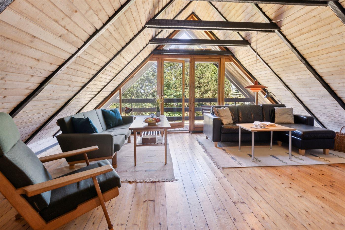 Hyggeligt sommerhus beliggende i et fantastisk, roligt område med flot natur, hvor der er rig mulighed for at se råvildt samt gå mange ture. Fra den meget store grund er der udsigt til havet. Bemærk; 2 af sovepladserne befinder sig i opholdsstuen på 1. sal.