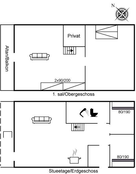 Der er i alt 3 soveværelser. Sovepladserne fordeler sig på: 2 sovepladser i dobbeltseng. 2 sovepladser i enkeltsenge. 4 sovepladser i køjesenge.