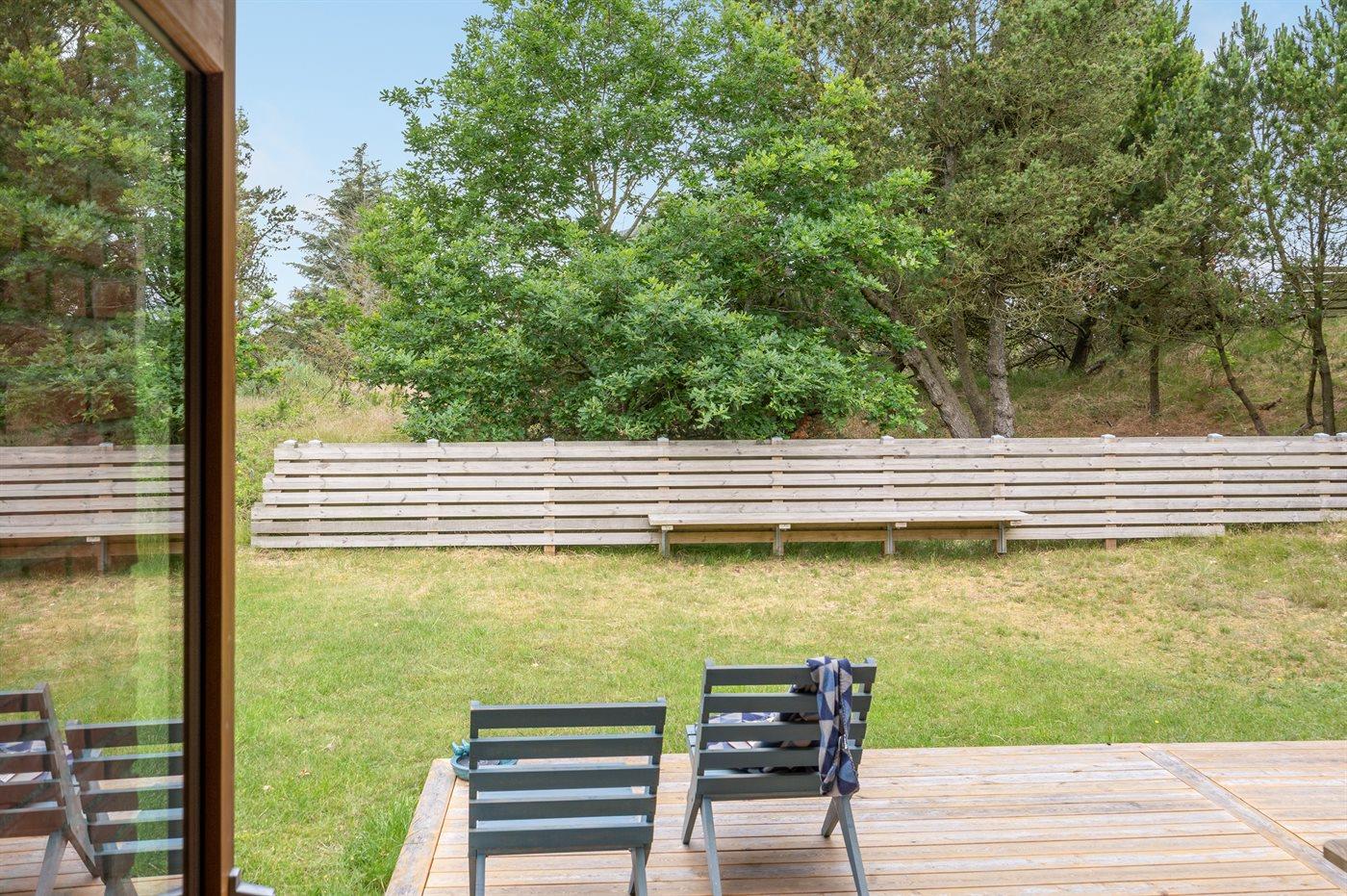 Ferieboligen er beliggende på en 2500 m² stor naturgrund. Der er 2800 m til havet. Der er 1200 m til Vadehavet. Nærmeste forretning er beliggende i en afstand af 2700 m. Der er en golfbane i en afstand af 9000 m. Til ferieboligen hører 14 m² terrasseareal. Udgang til altan. Parkering ved ferieboligen.
