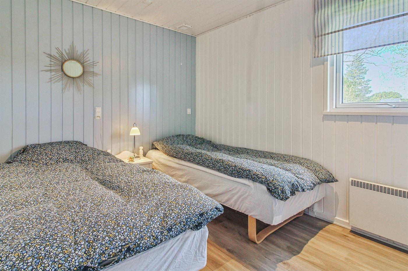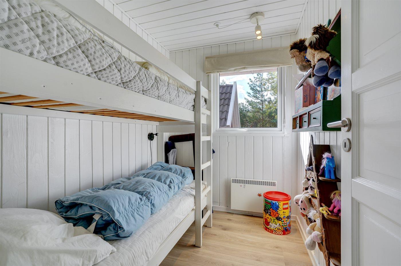 Der er i alt 5 soveværelser. Sovepladserne fordeler sig på: 6 sovepladser i dobbeltsenge. 2 sovepladser i enkeltsenge. 2 sovepladser i køjeseng. Derudover er der 1 stk. barneseng.
