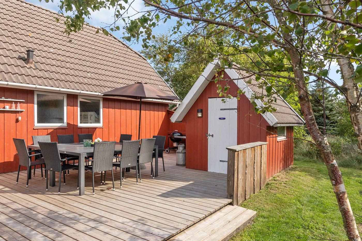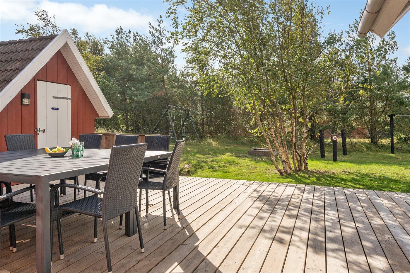 Ferieboligen er beliggende på en 1500 m² stor naturgrund. Der er 3000 m til havet. Nærmeste forretning er beliggende i en afstand af 2900 m. Til ferieboligen hører 88 m² terrasseareal. Gynge. Sandkasse. Webergrill til rådighed. Parkering ved ferieboligen.