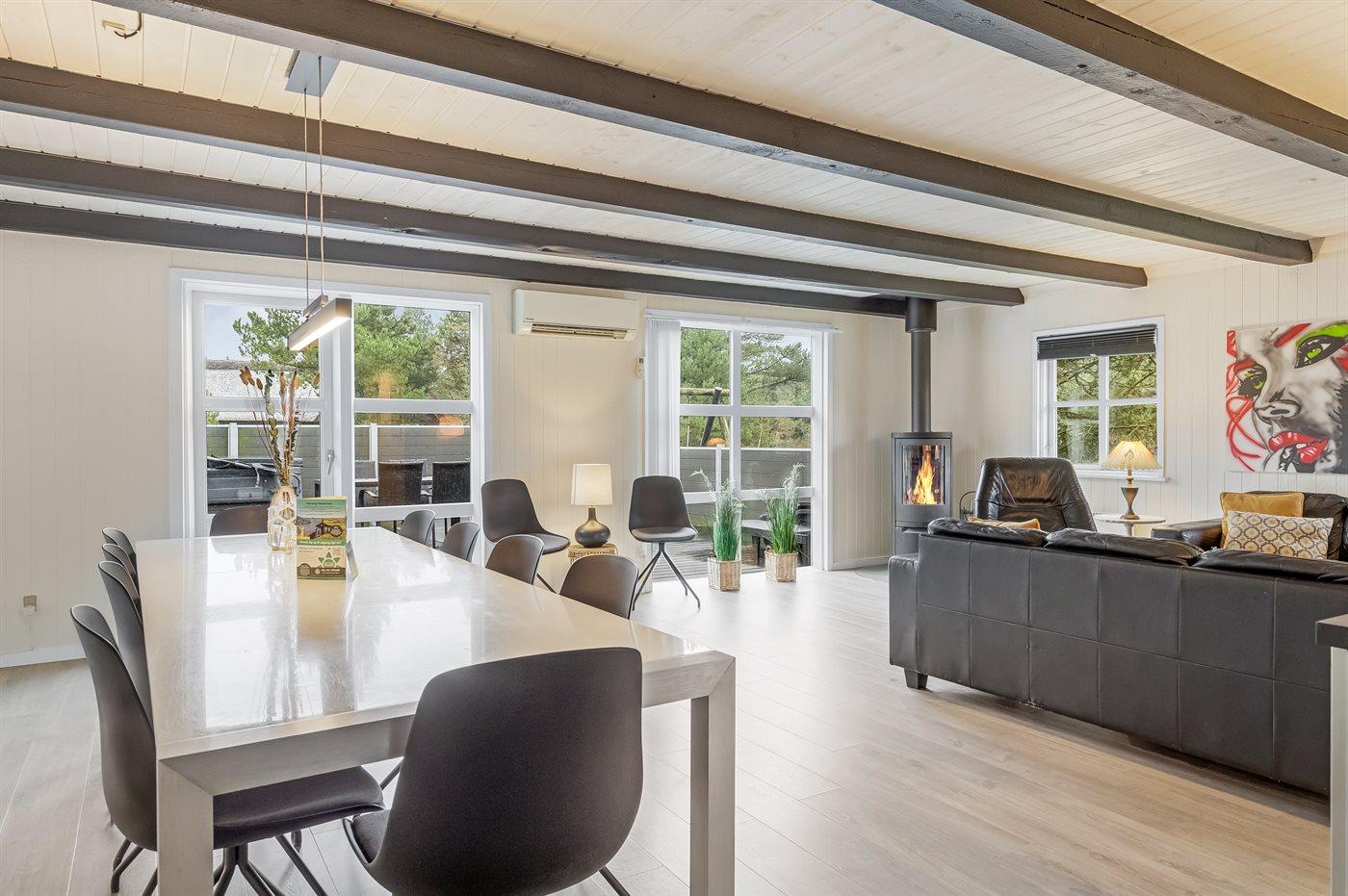 Sommerhuset egner sig til 12 personer. Ferieboligen er på 158 m², er i 2 plan, og er bygget i 1991. I 2021 gennemgik ferieboligen en delvis renovering. Det er tilladt at medbringe 1 husdyr. Ferieboligen er udstyret med energibesparende varmepumpe. Der er gulvvarme i gangen. Ferieboligen har kombineret vaskemaskine og tørretumbler. Frysekapacitet på 60 liter. Der er desuden brændeovn. Til de små er der 1 stk. barnestol.