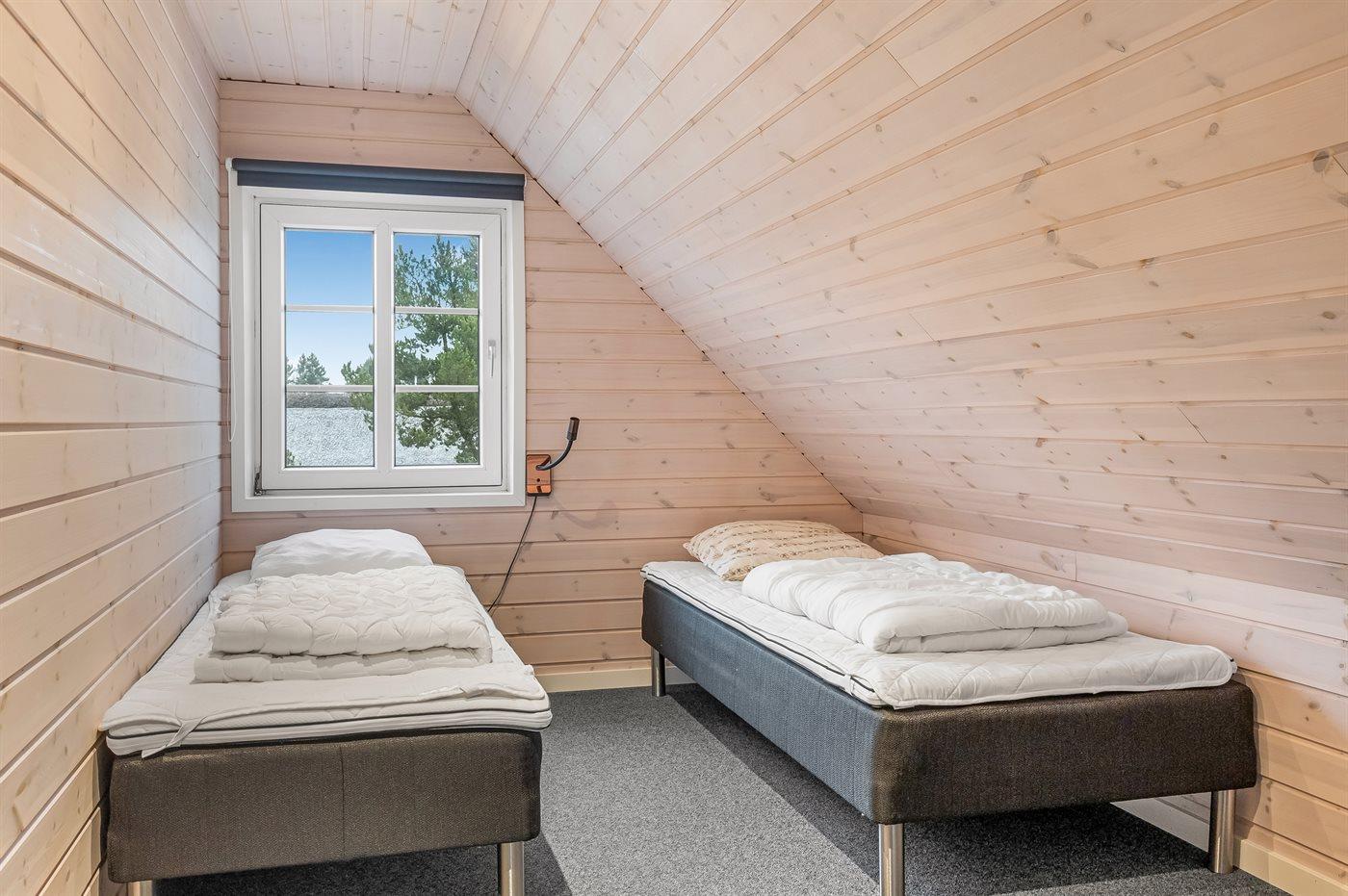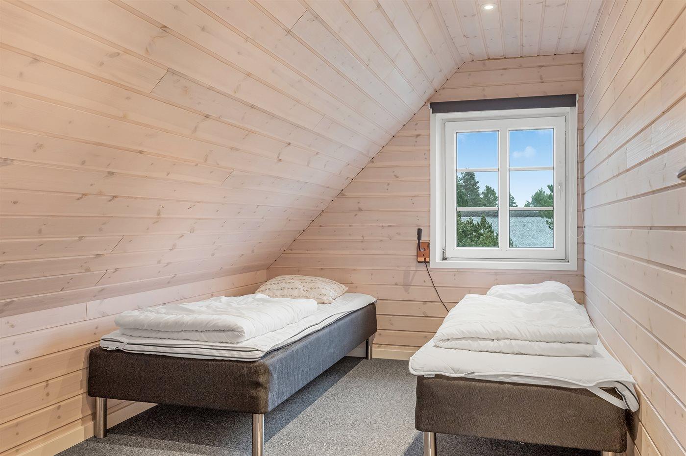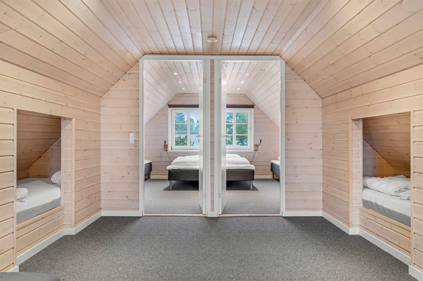 Der er i alt 5 soveværelser. Sovepladserne fordeler sig på: 8 sovepladser i dobbeltsenge. 2 sovepladser i enkeltsenge. 2 sovepladser i alkove. 2 af disse sovepladser befinder sig i stuen på 1. sal. Der er gulvvarme i 3 af soveværelserne.
