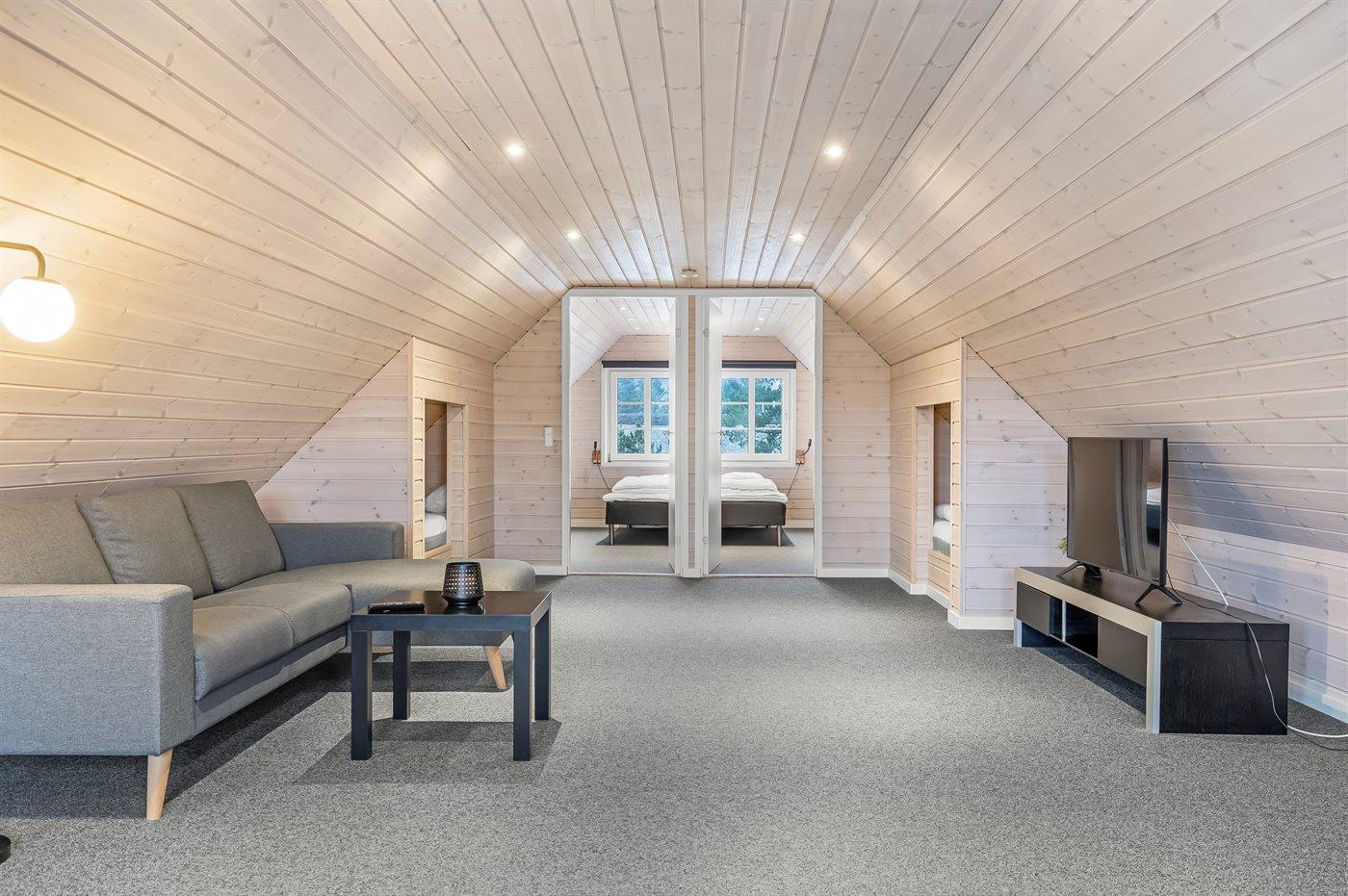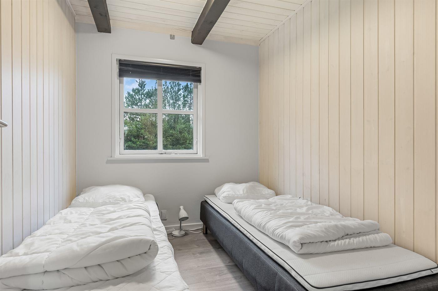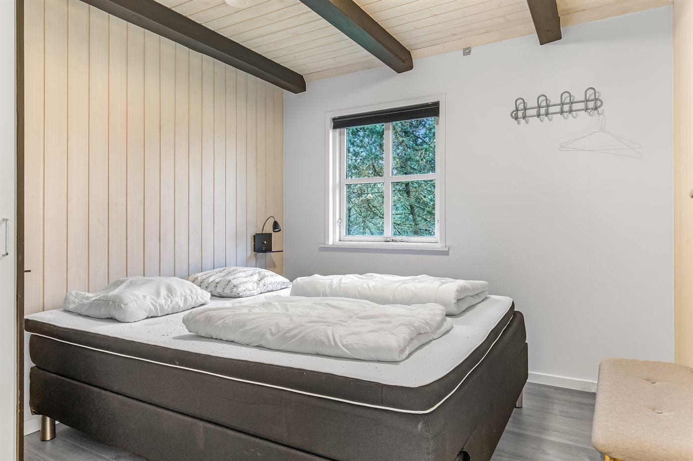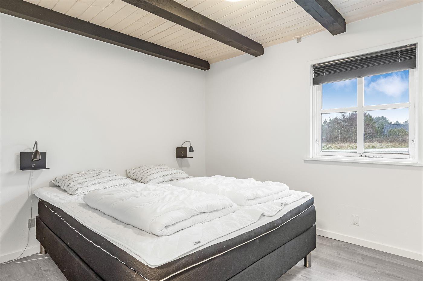 Der er i alt 5 soveværelser. Sovepladserne fordeler sig på: 8 sovepladser i dobbeltsenge. 2 sovepladser i enkeltsenge. 2 sovepladser i alkove. 2 af disse sovepladser befinder sig i stuen på 1. sal. Der er gulvvarme i 3 af soveværelserne.