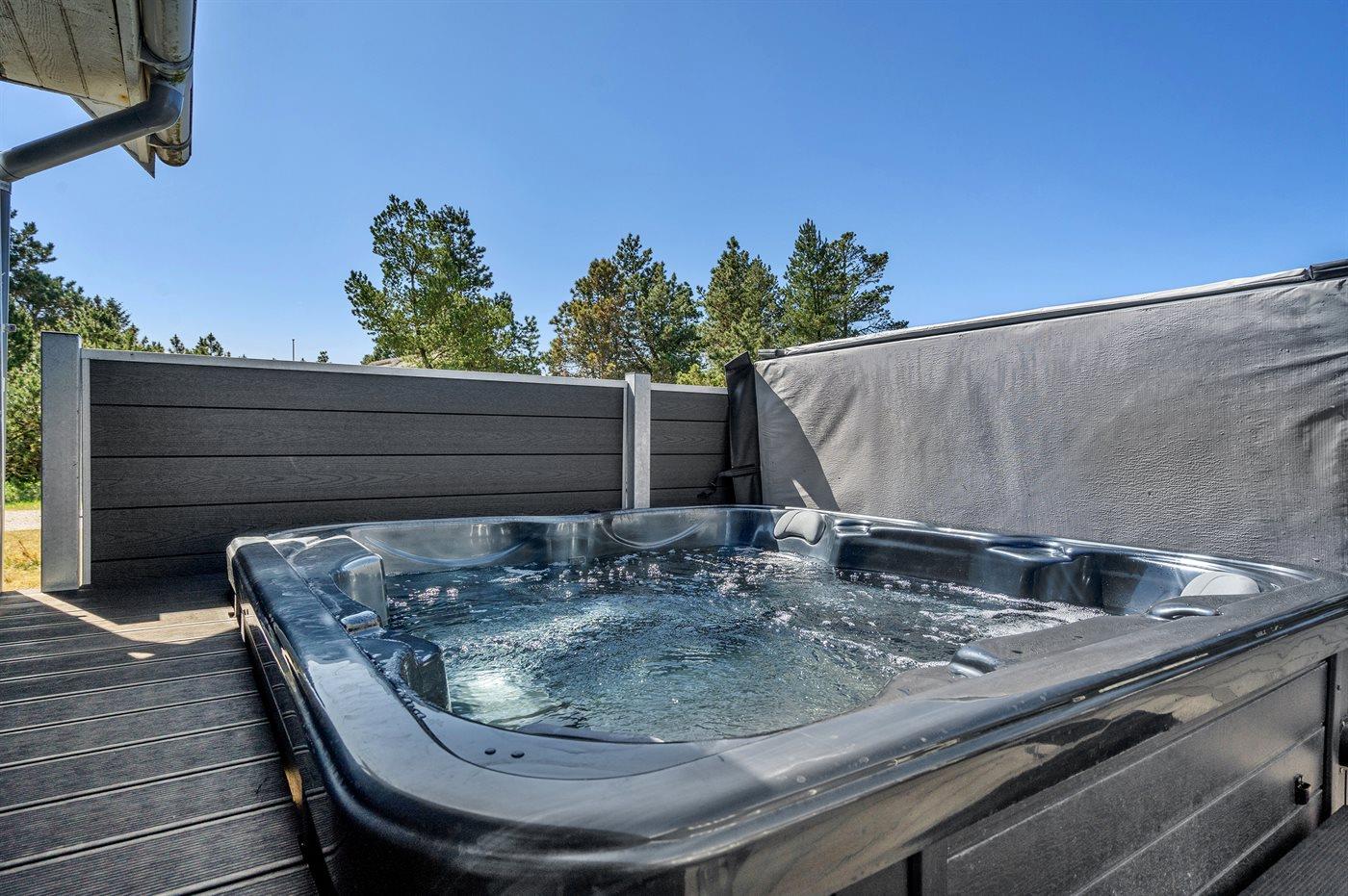 Der er mulighed for afslapning i udendørs standvandsspa til 5 personer.