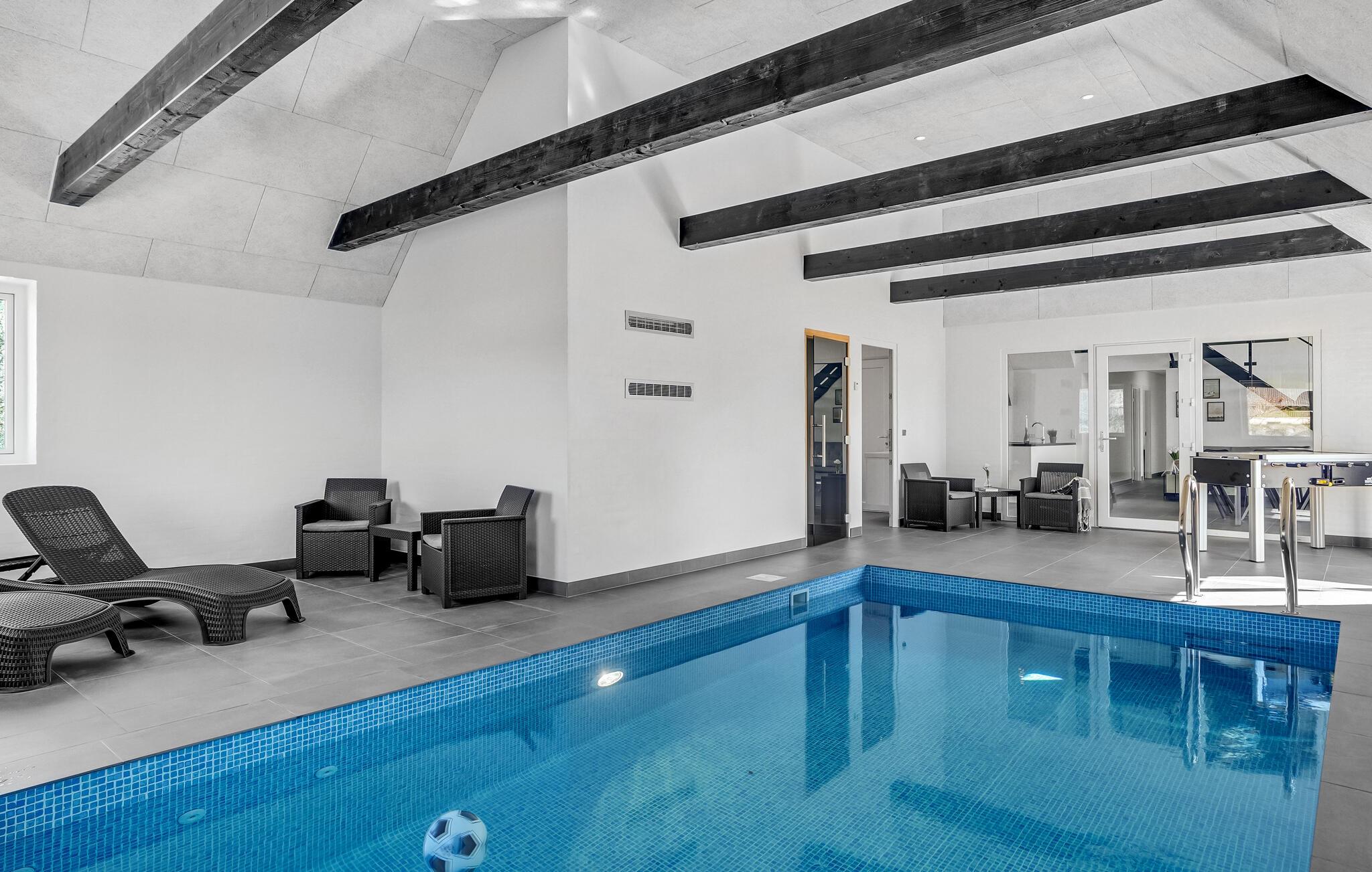 Lækkert, stort og moderne feriehus med sauna, pool, udespa og mange andre faciliteter for hele familien.