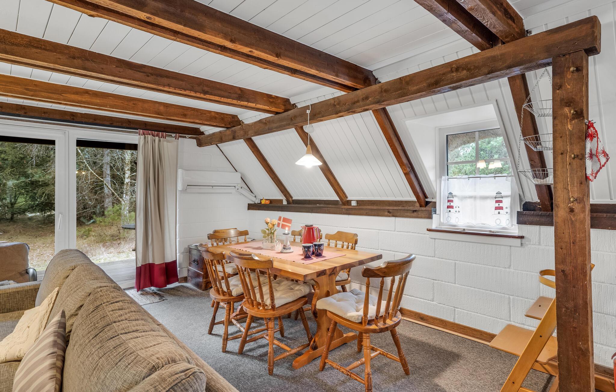 Det charmerende, stråtækte Nurchdachhaus byder jer velkommen i en smuk, rolig beliggenhed på en ejendom omgivet af træer. De attraktive værelser med dekorative loftsbjælker danner den ideelle ramme for hyggeligt samvær i en hjemlig atmosfære. Spis i det fri med en fantastisk udsigt. Efter en begivenhedsrig dag indbyder stuen med den behagelige sofa til en film- eller spilleaften, her kan I nyde hinandens selskab, mens flammerne knitrer i brændeovnen. Nyd solen udenfor, mens jeres børn leger på naturgrunden. Afslut dagen med en lækker grillmiddag på terrassen og nyd de lange sommeraftener.