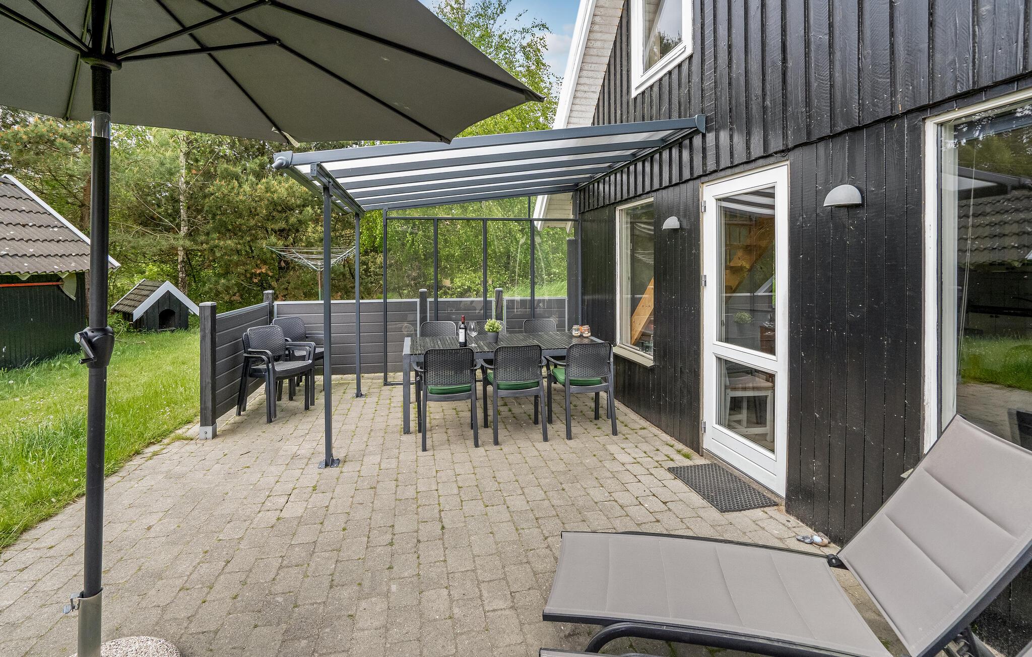 Dette rummelige feriehus er yderst velegnet til flere familier. Det har to etager, som hver især er indrettet med både soveværelser, badeværelse og stue. I kan nyde solen på den dejlige, sydvendte terrasse, som ligger helt uforstyrret. Huset er lyst og venligt indrettet med pæne møbler og gode senge i alle soveværelserne. Alle faciliteter til at lette de daglige pligter er ligeledes tilstede. Både spa og sauna står også til jeres rådighed.