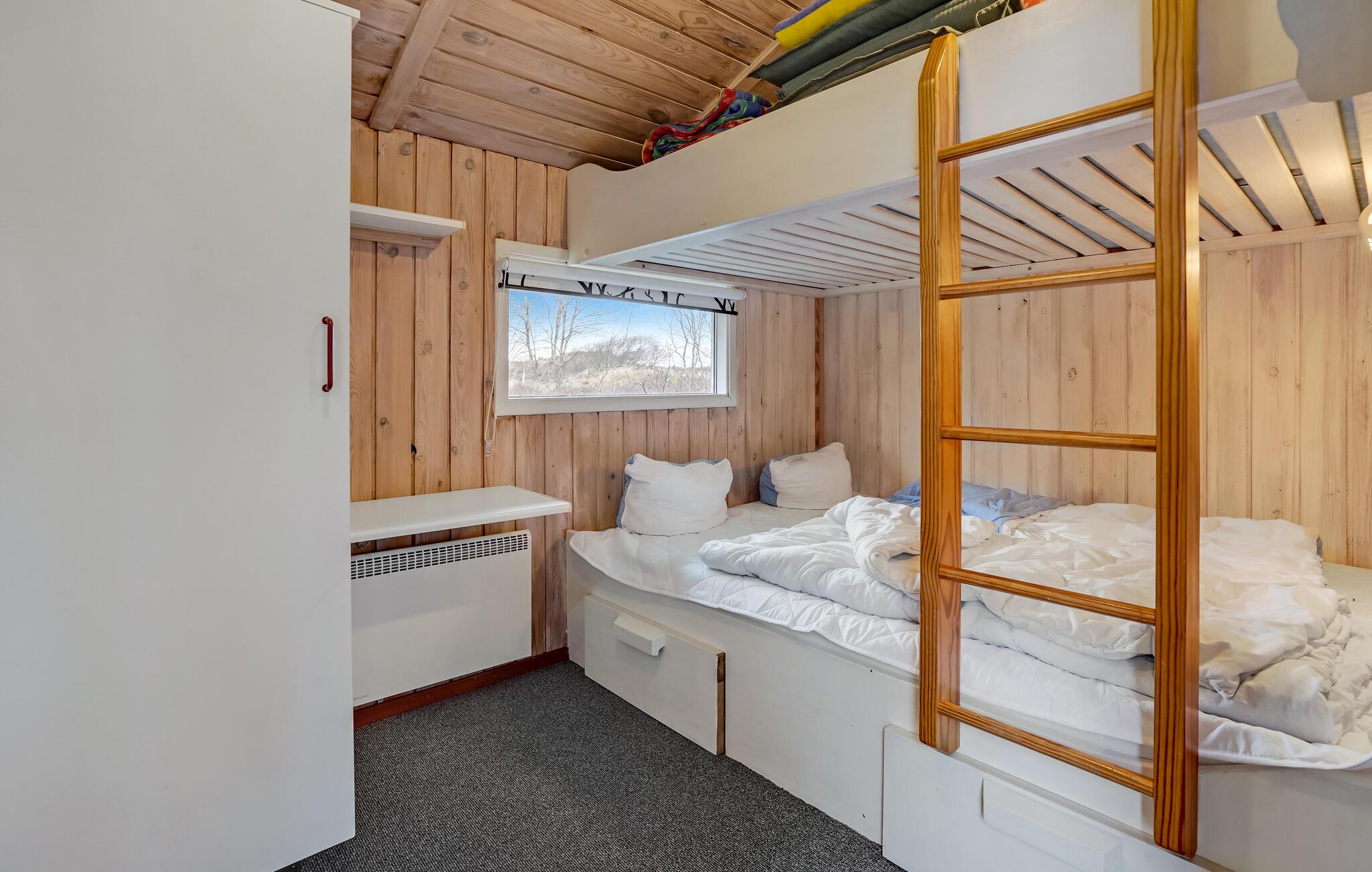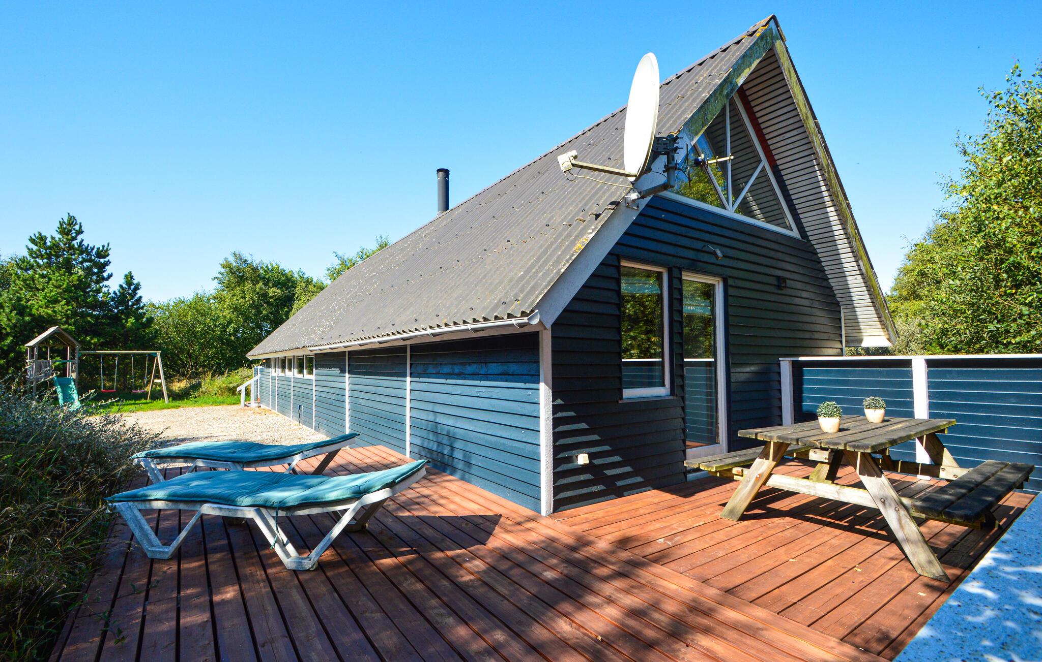 Dejligt træsommerhus i Toftum med sauna, brændeovn og fantastisk udsigt over naturområde.