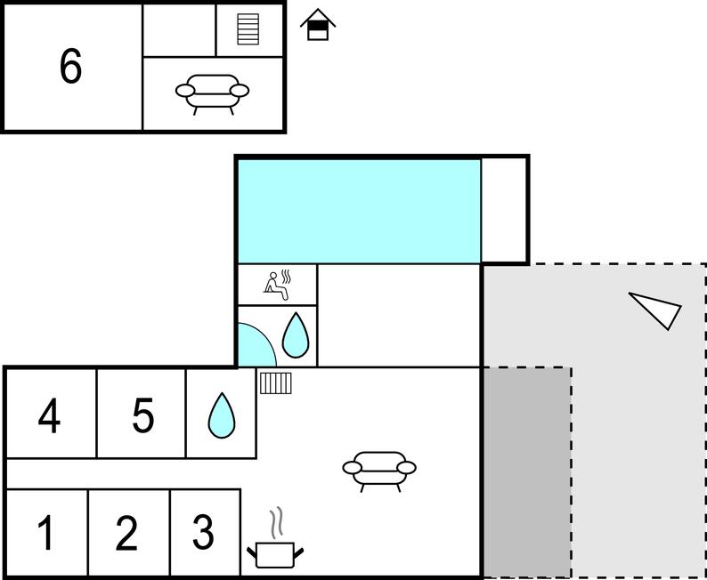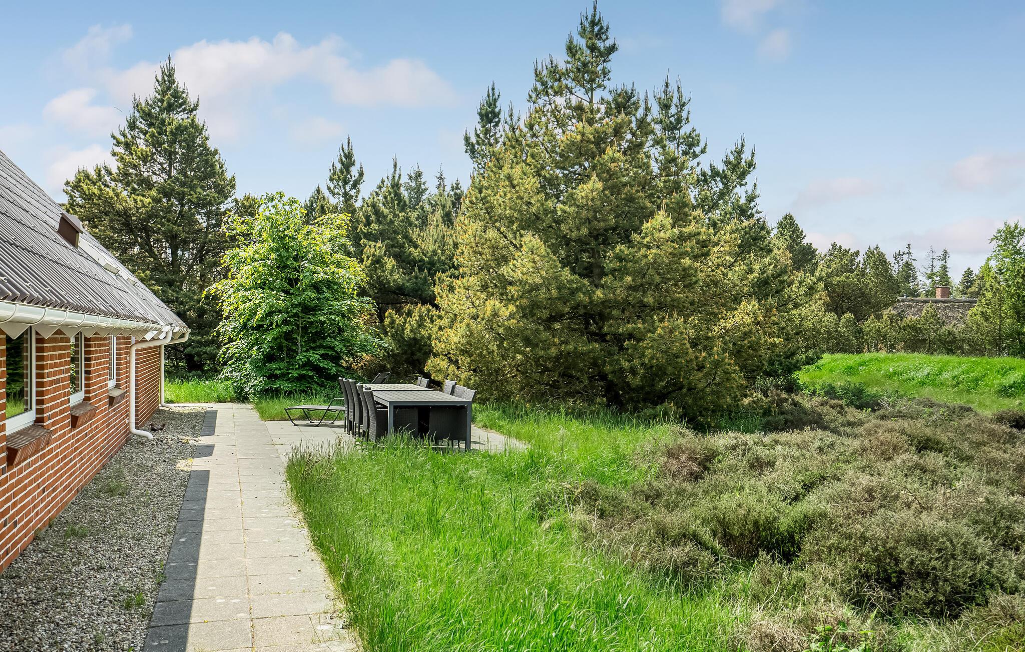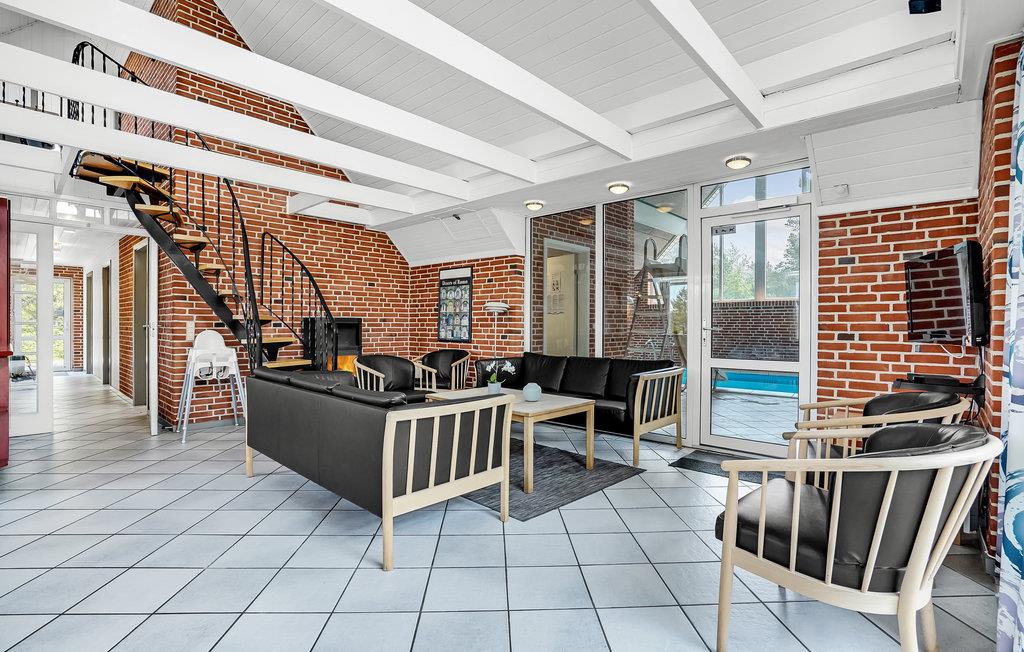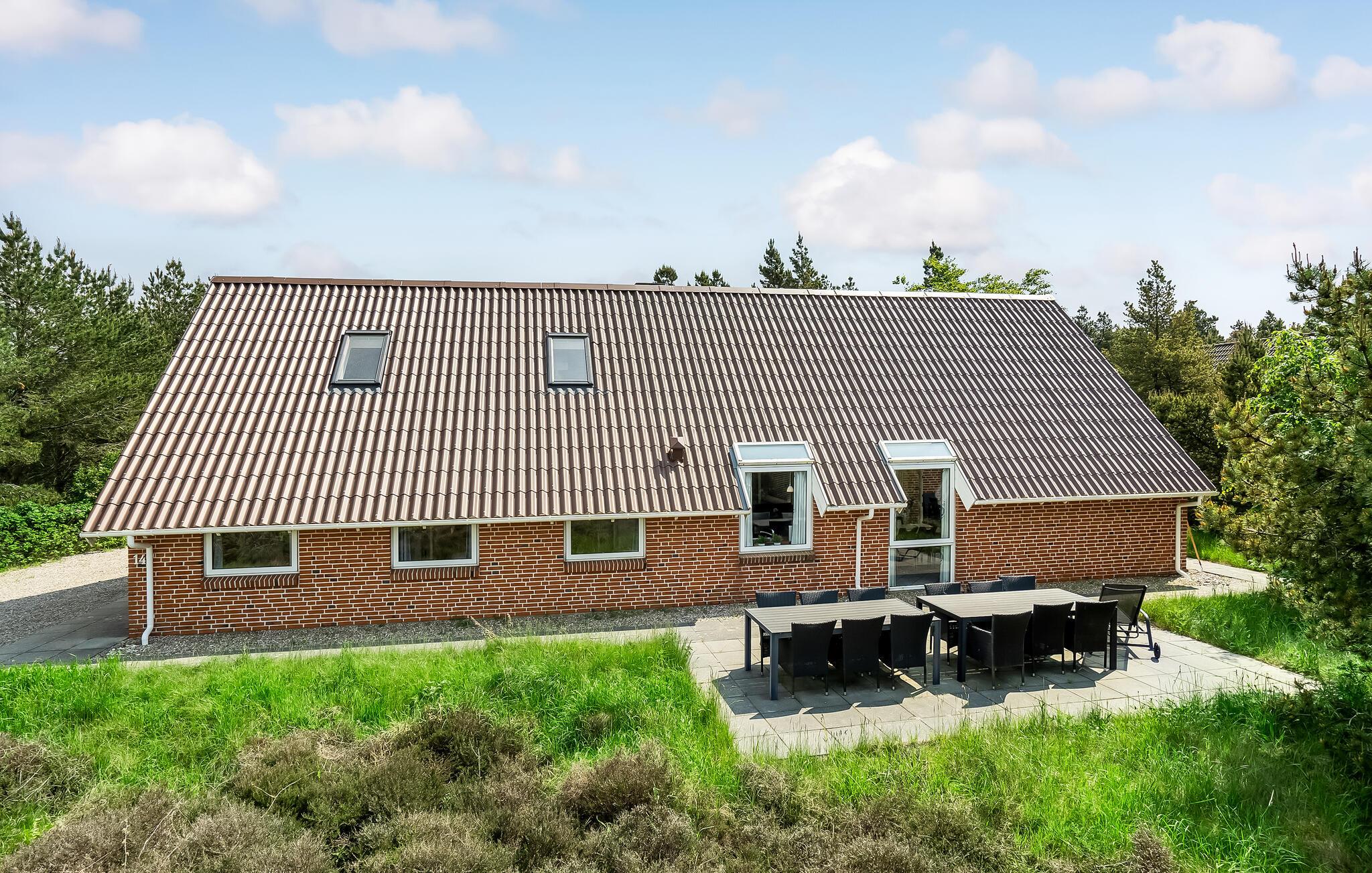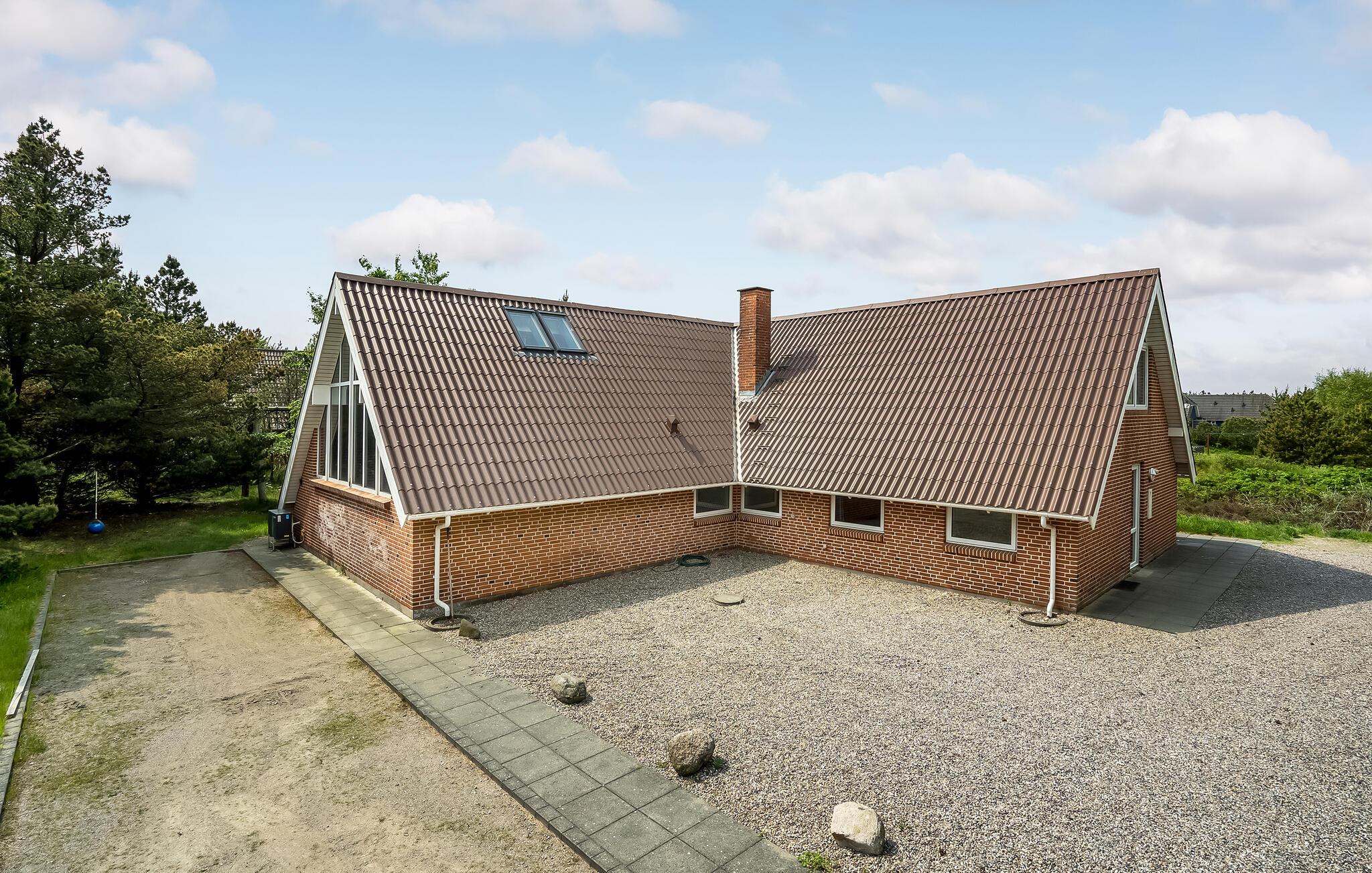 I dette arkitekttegnede feriehus er der lagt vægt på både den praktiske indretning og det visuelle indtryk. Der er anvendt gedigne materialer, og huset er nemt at holde rent. Fra det centrale køkken/alrum og stuen er der udsyn til poolrummet, der har en pool med vandrutsjebane samt udgang til en dejlig, lukket terrasse. I tilknytning til poolrummet ligger spabadet i det ene af de to badeværelser. Via en spindeltrappe kommer I op til 1. sal, hvor husets største soveværelse og en lille hyggekrog, hvor I kan spille bordfodbold, ligger. Fra 1. sal er der en flot udsigt over klit- og sommerhusområdet Toftum. Alle husets øvrige soveværelser og badeværelset er særdeles handicapvenlige - ingen dørtærskler, brede døre, handicapvenligt toilet og brusekabine. 20 meter fra huset er der adgang til en fælles boldbane.