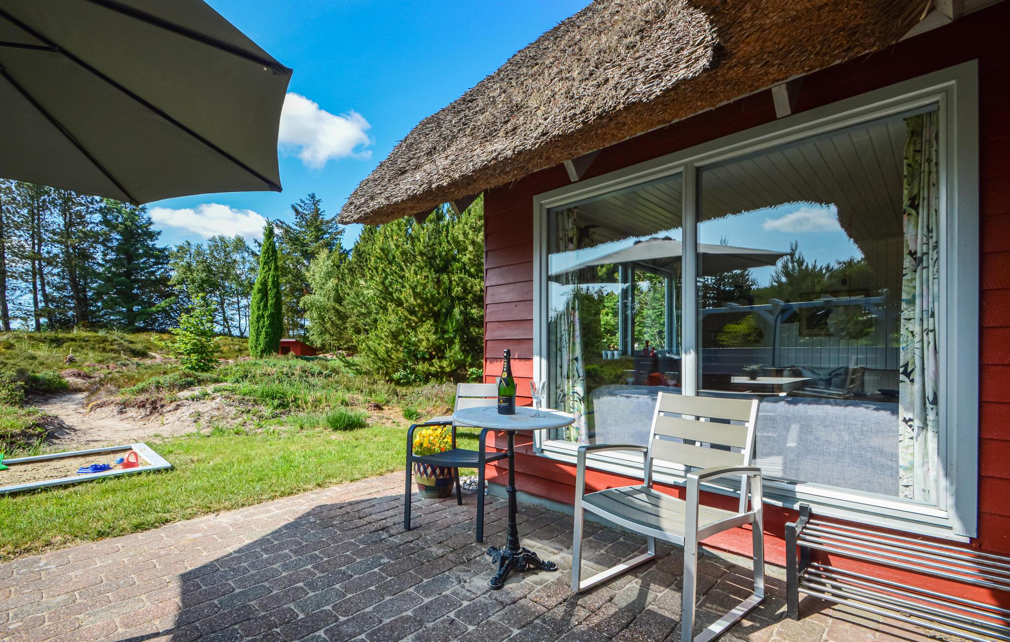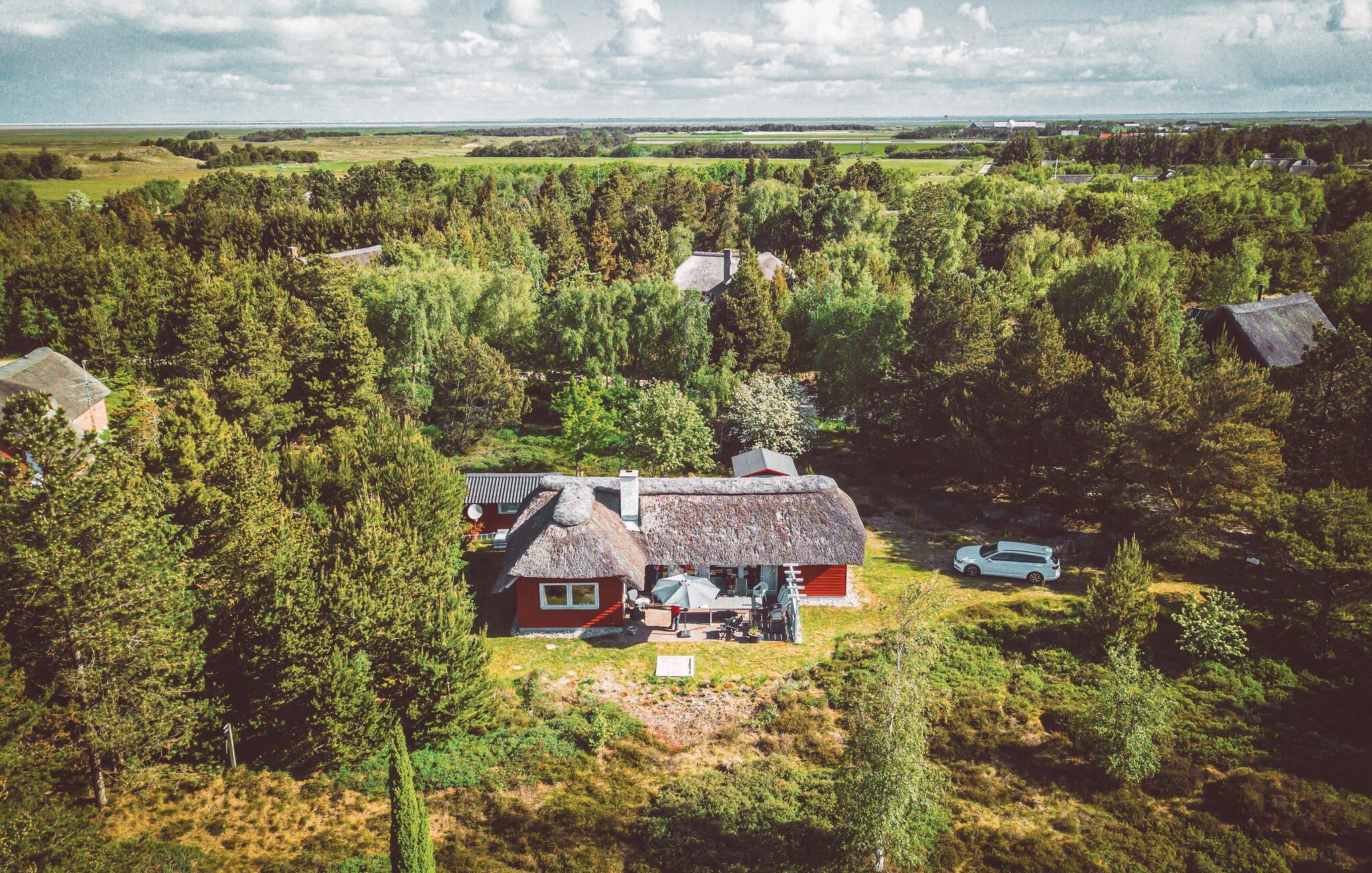 Dejligt sommerhus på stor naturgrund med sydvendt terrasse, shelter og legeplads nær Rømøs naturskønne omgivelser.