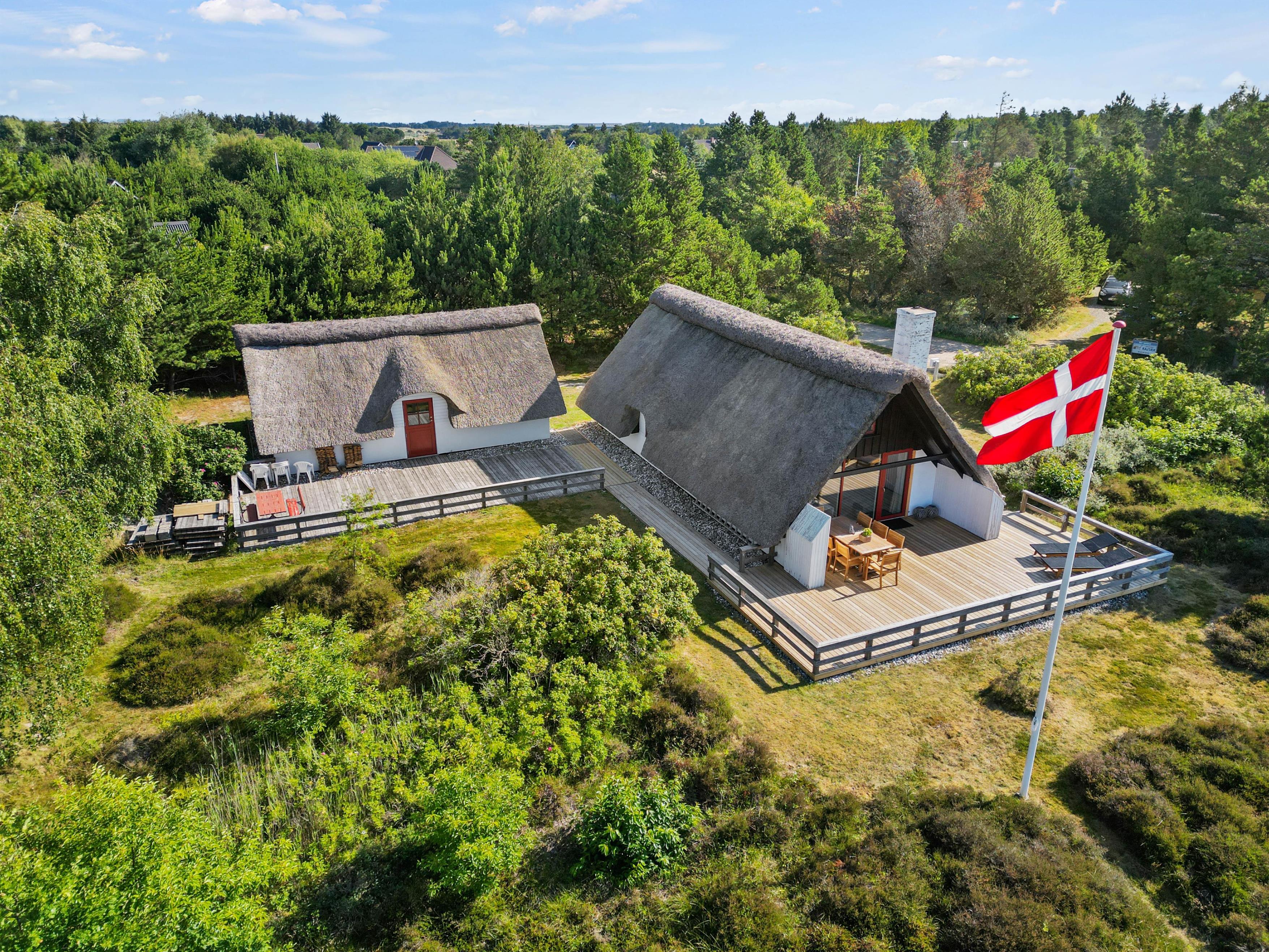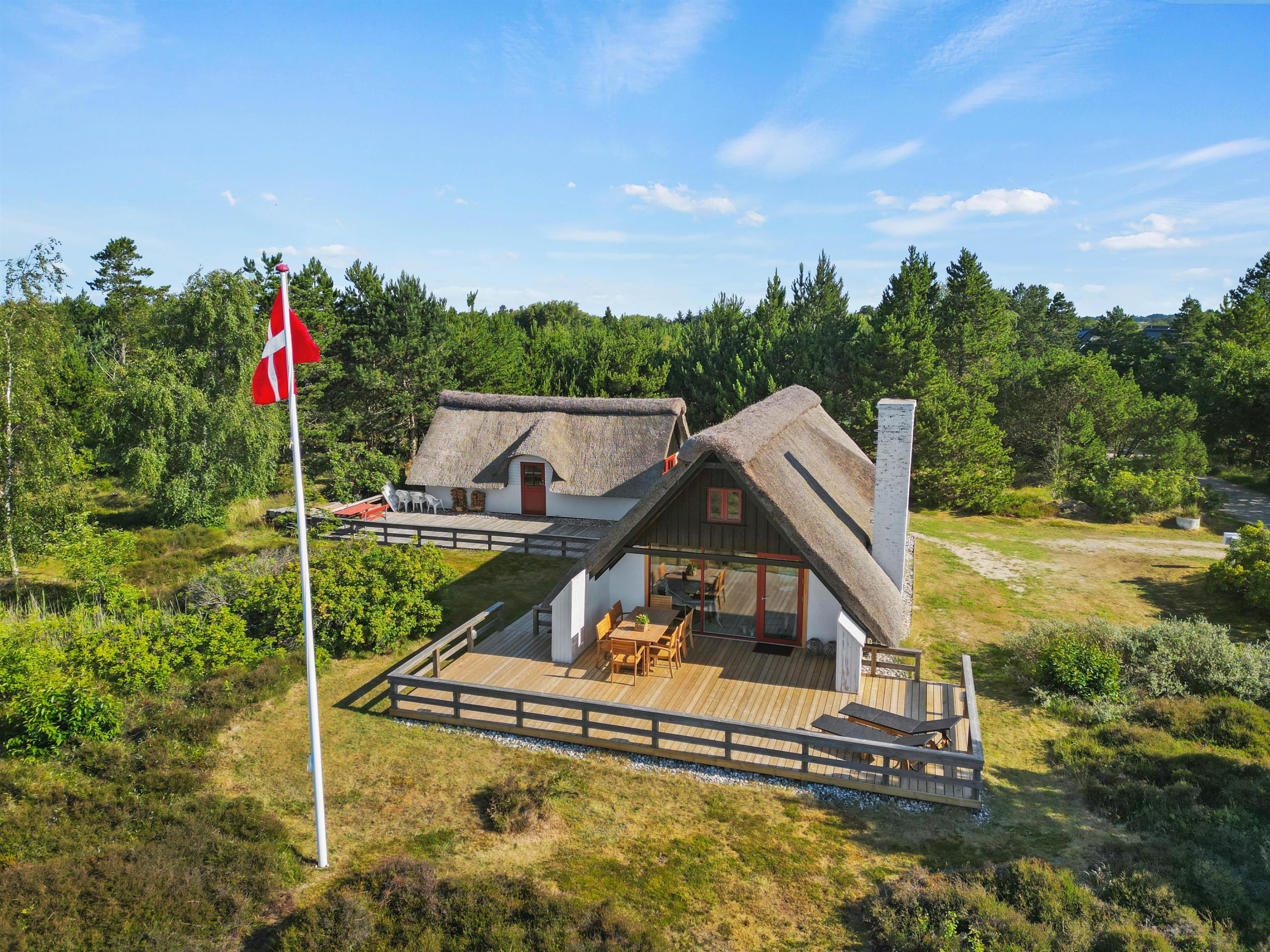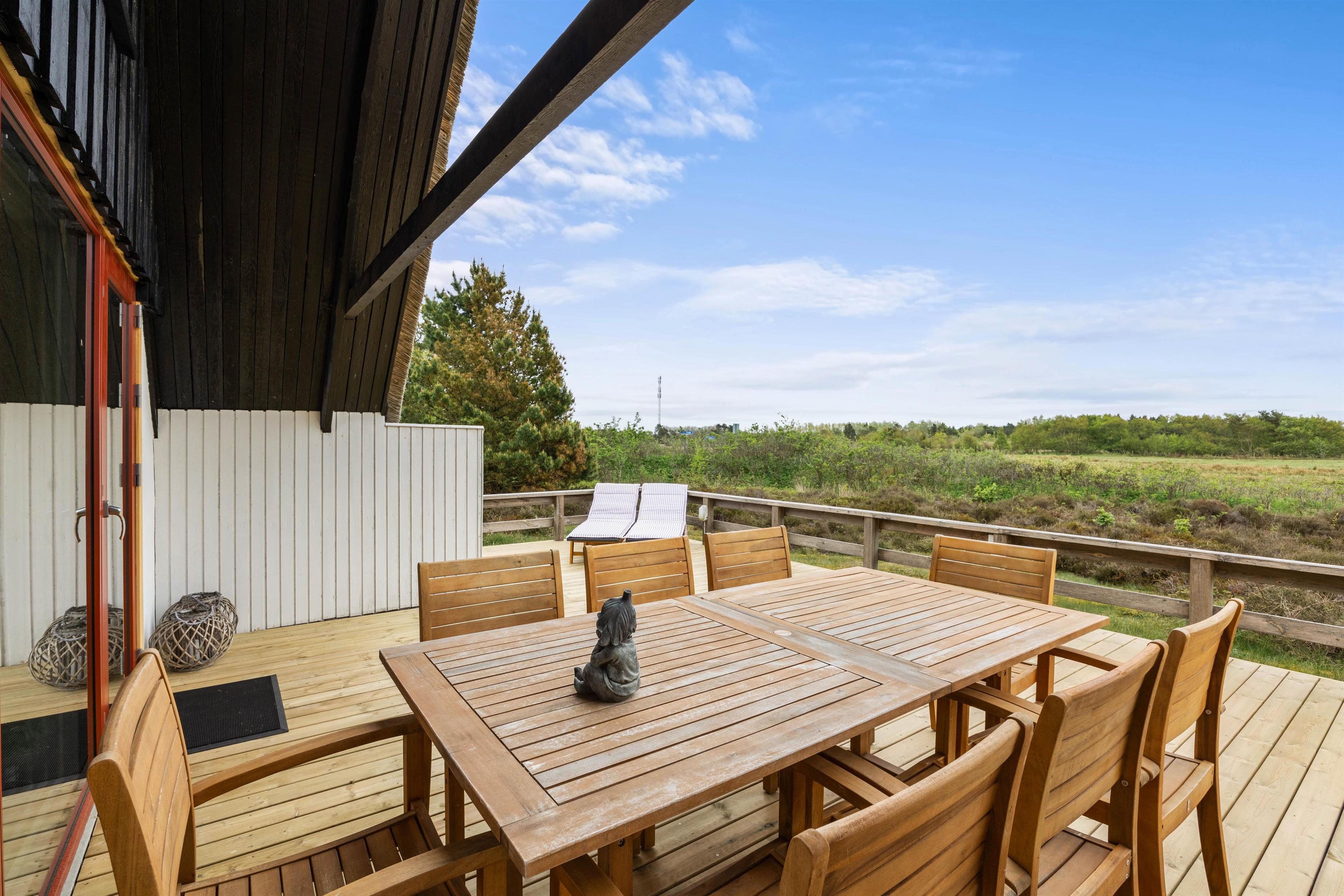Selve terrassen er udført i træ, og er indrettet med gode havemøbler. Terrassen svøber sig om sommerhuset, så der er altid en plet, hvor I kan nyde solen. Når dagen går på hæld, kan I tænde op i grillen og nyde måltidet udendørs, alt imens næste dags aktiviteter planlægges. Og aktiviteter, dem er der nok af på Rømø.