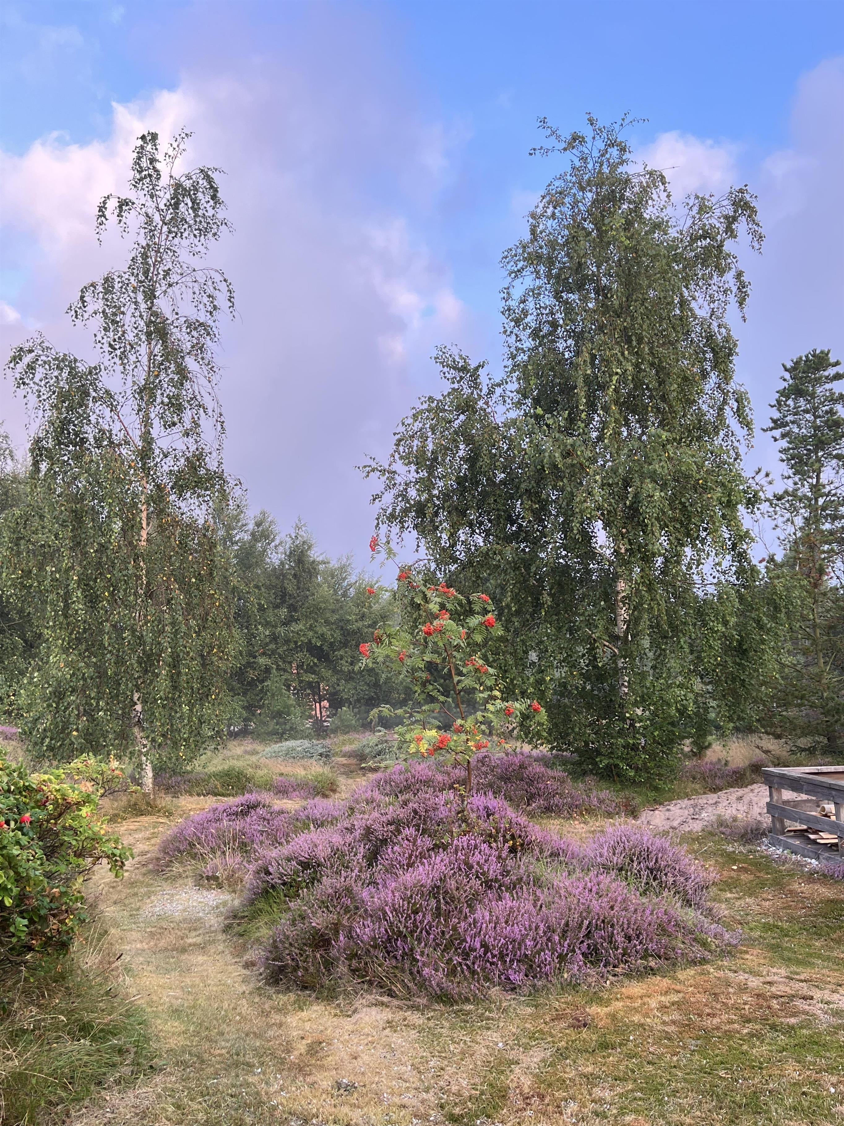 Sommerhuset på Froidal 1 er beliggende på en naturgrund og omkranset af træer. Mod syd er der dog åbent, og I kan fra terrassen nyde den storslåede udsigt udover det smukke landskab. Særligt i sensommeren og start efterår, hvor lyngen blomstrer, bliver naturgrunden beklædt i purpurrød og lilla lyng. Hvis I er heldige, kan I opleve hjorte, der græsser på marken, eller måske få besøg i haven af en ræv eller hare.