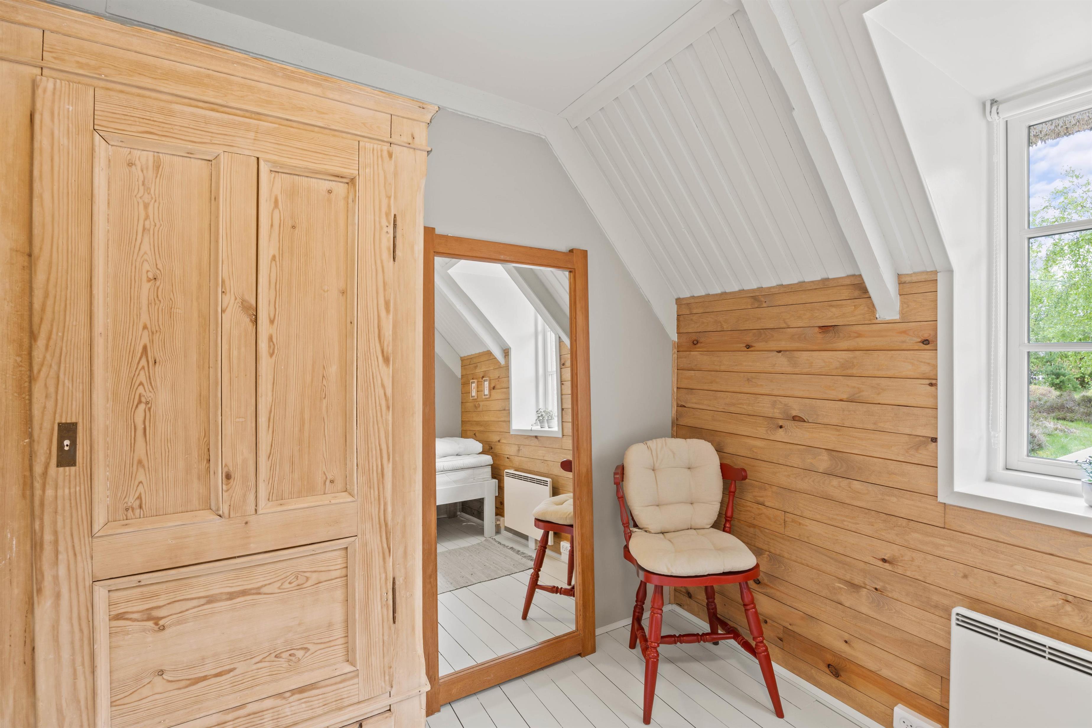 Fordelt på de 86 m2 får I her 3 soverum, hvoraf 2 ligger i stueetagen. Det ene er her indrettet med en 160x200 cm dobbeltseng og det andet med en 85x200 cm enkeltseng. På første salen venter jer et soverum med henholdsvis 2 90x200 cm enkeltsenge samt en 80x200 cm seng. Feriehusets badeværelse er med bruseniche og gulvvarme.