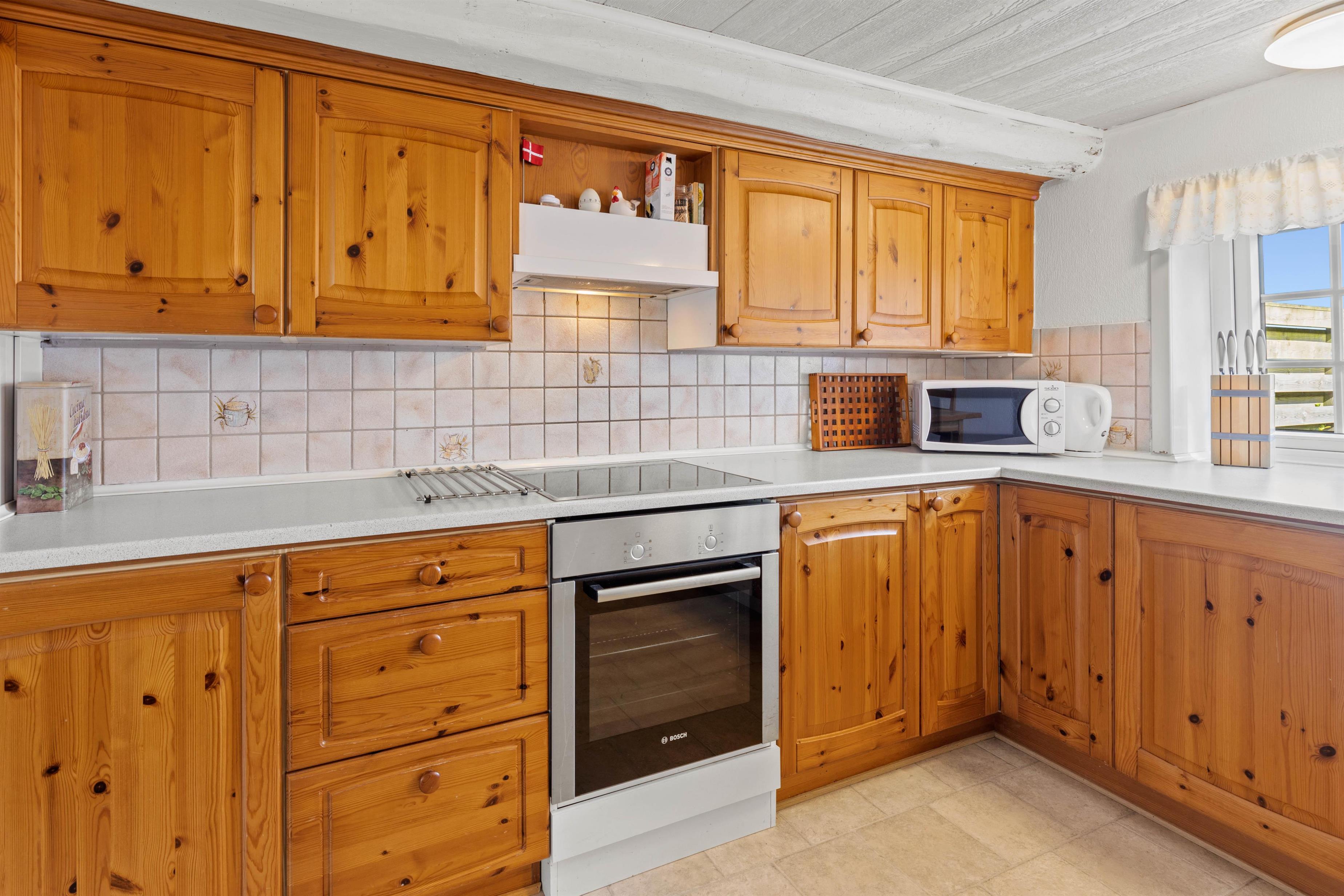 Ferielejligheden, som er renoveret i 2018, har en hyggelig indretning, og her vil I hurtigt føle jer hjemme. Ferielejligheden har et praktisk udstyret køkken med både opvaskemaskine og mikroovn. Der er god plads, så I kan hjælpe hinanden med madlavningen.