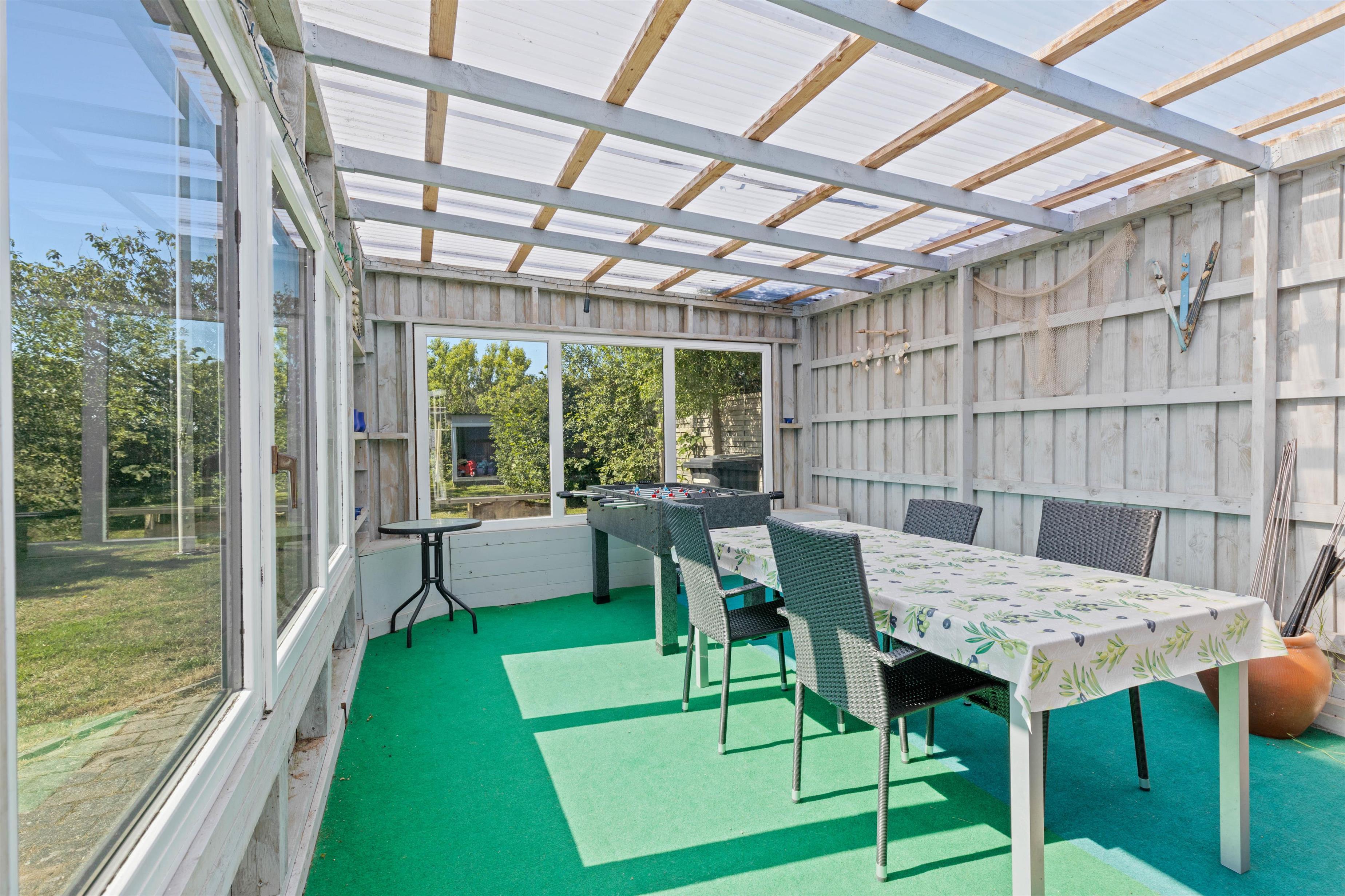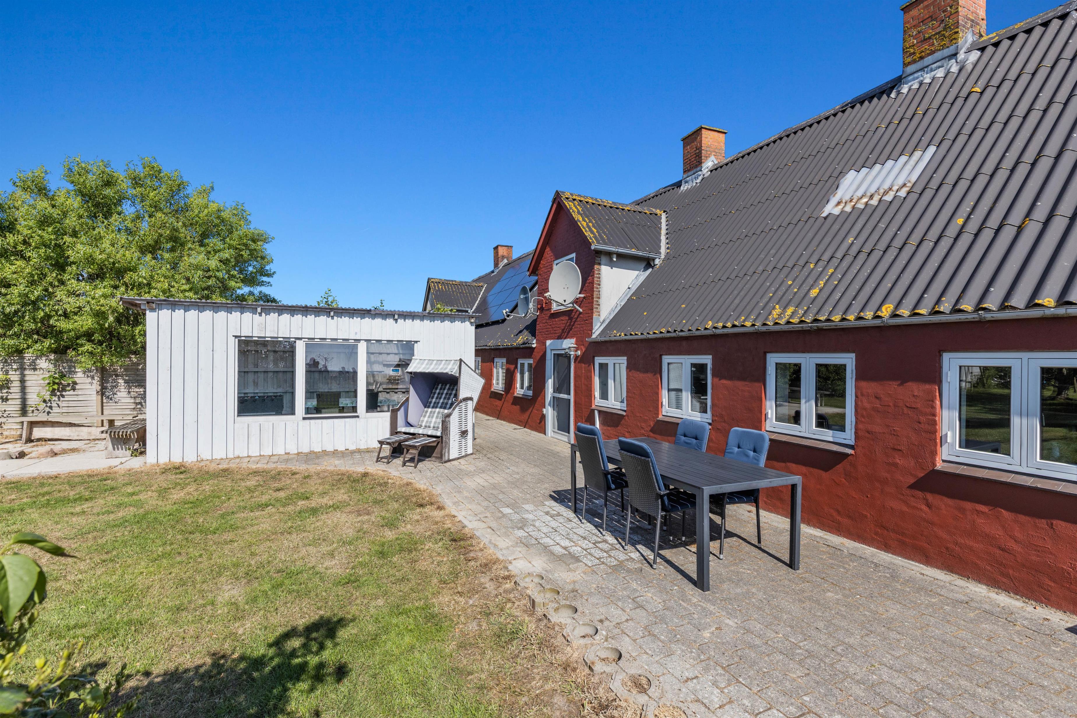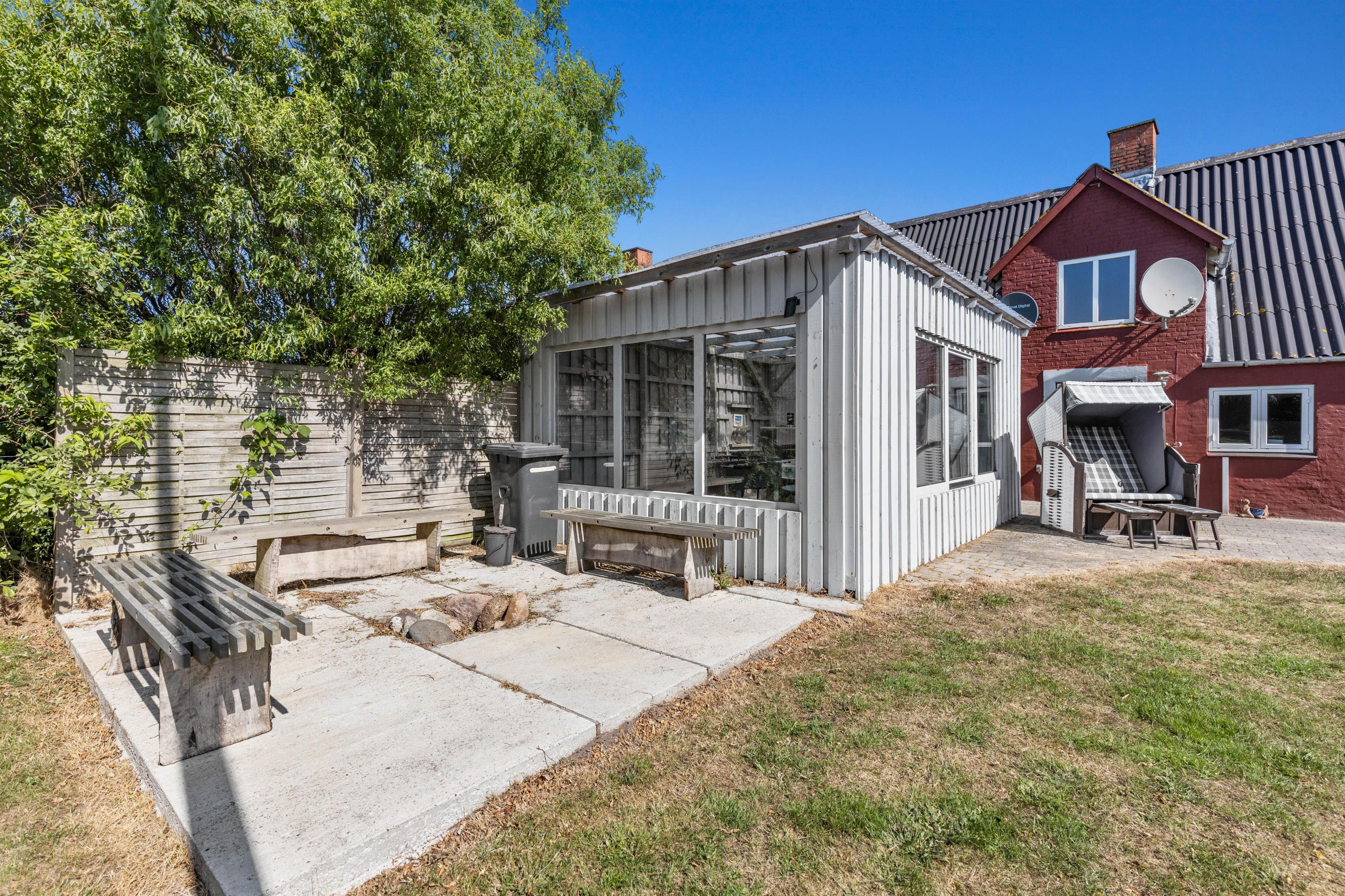 Et af ferielejlighedens highlights er den skønne udestue, hvor I kan nyde eftermiddagskaffen, mens børnene leger i haven.