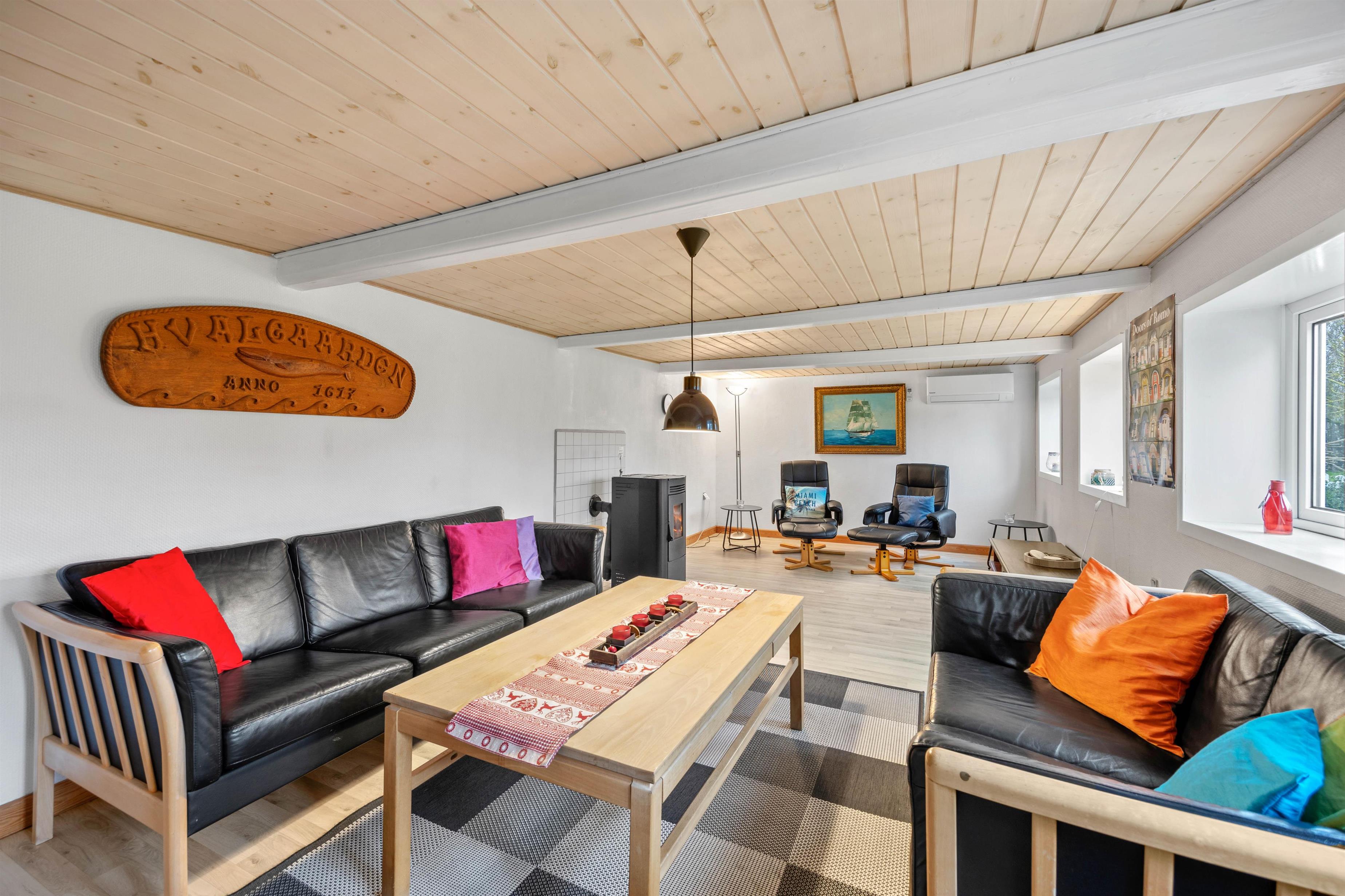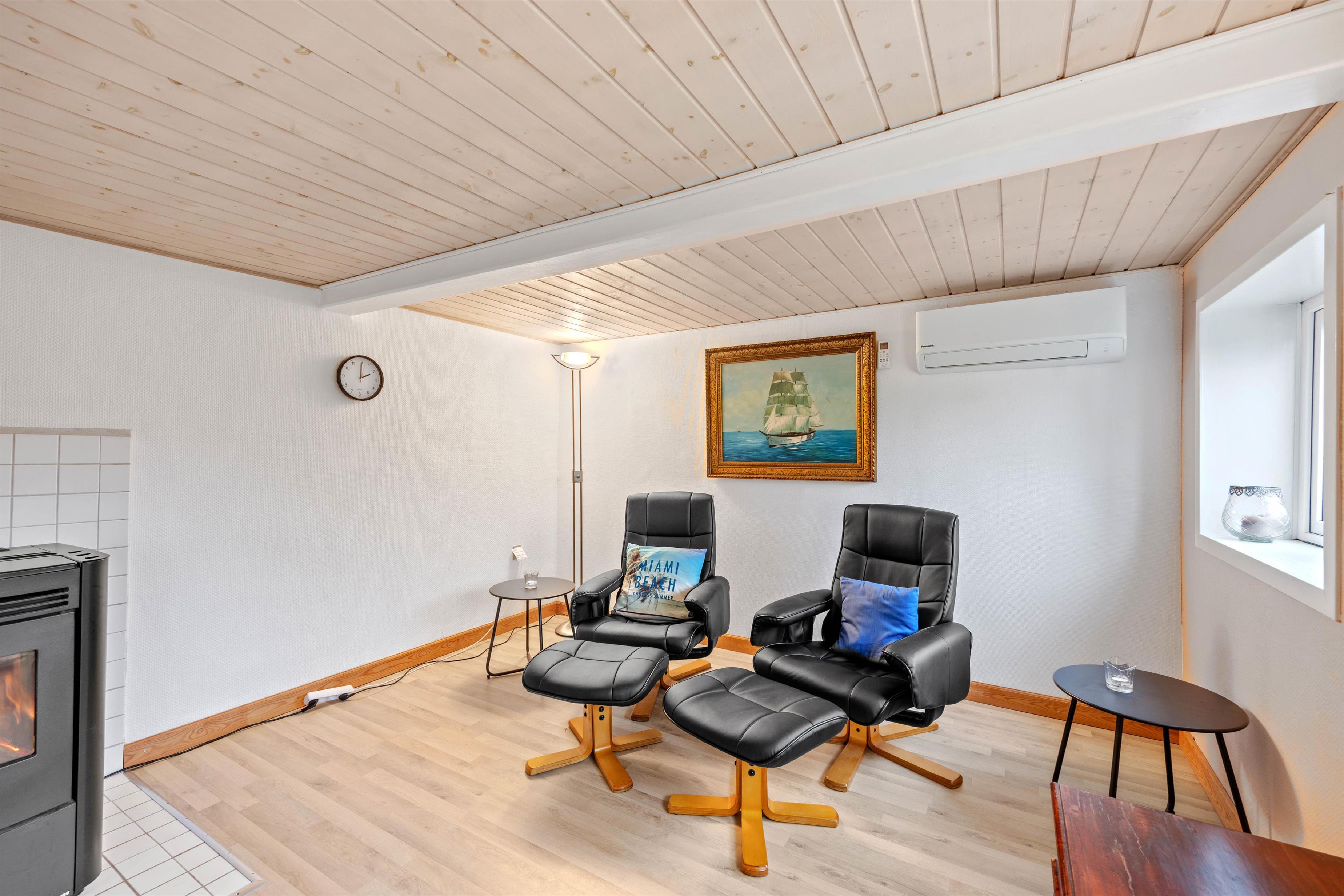 I ferielejlighedens stue er der lagt op til mange hyggelige timer med familien. På en blæsende efterårsdag kan I tænde op i brændeovnen med træpiller og nyde varmen, mens gløderne knitrer i baggrunden. Der findes desuden to varmepumper, som I også kan benytte jer af til at holde en god temperatur. Sæt jer godt til rette i sofaen og se jeres yndlingsfilm. I ferielejligheden er der både danske tv-kanaler og Chromecast.