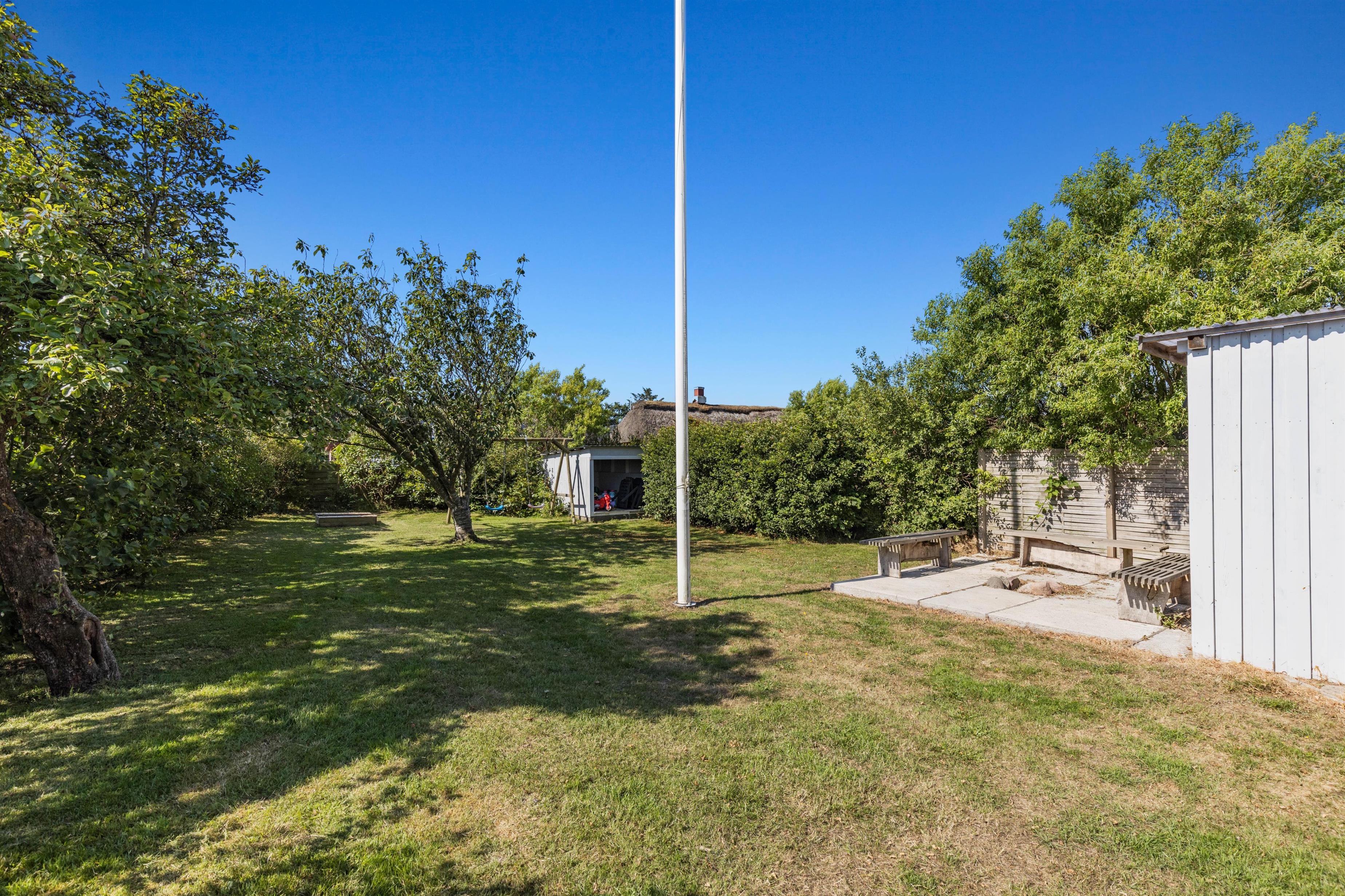 Ferielejligheden er beliggende på en 400 m2 stor, indhegnet naturgrund, hvor der er god plads til sjov og leg for familiens yngste. Her er både sandkasse, gyngestativ og trampolin, som er et stort hit blandt børnene. I haven finder I desuden en hyggelig bålplads, hvor I kan lave snobrød og riste skumfiduser.