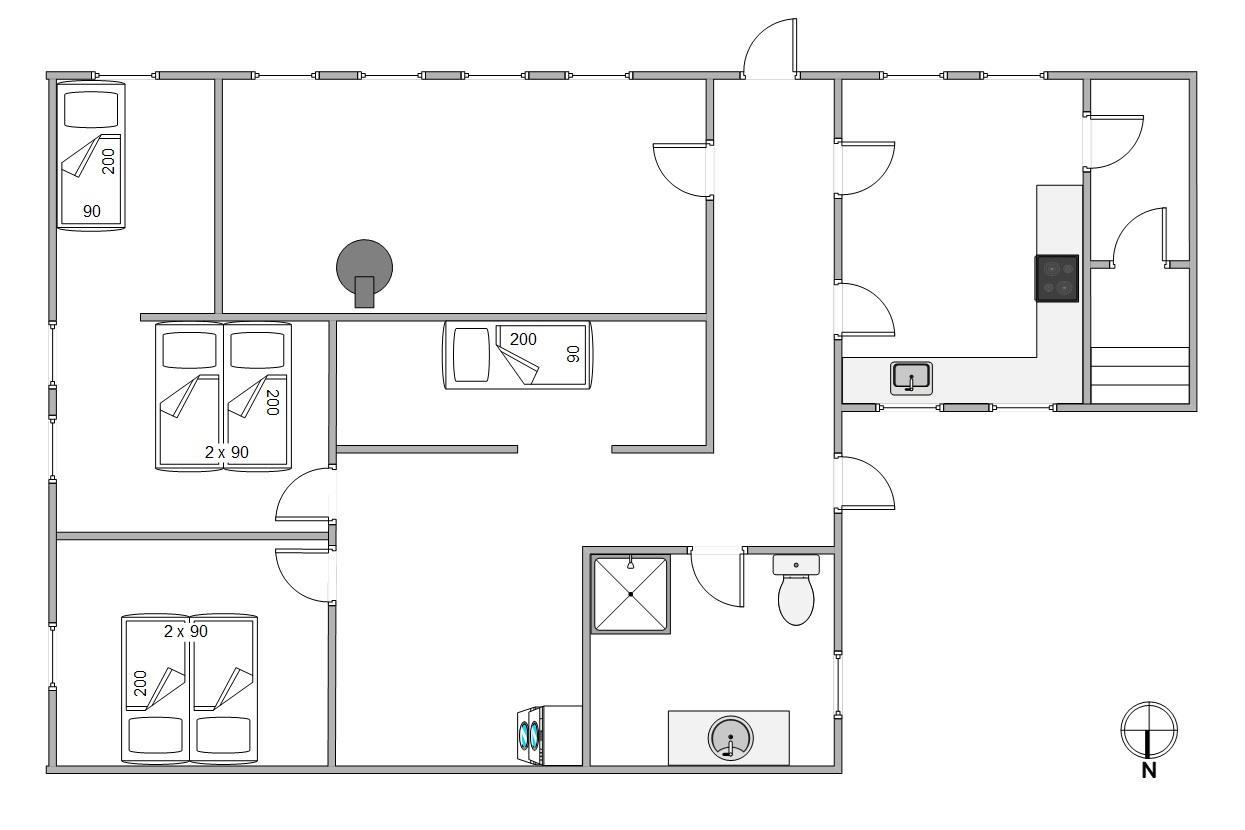 Lejlighedens 5 sovepladser er fordelt på 3 gode værelser, som er indrettet med sammensatte enkeltsenge. Her kan I samle ny energi til morgendagens aktiviteter efter en god og oplevelsesrig feriedag.