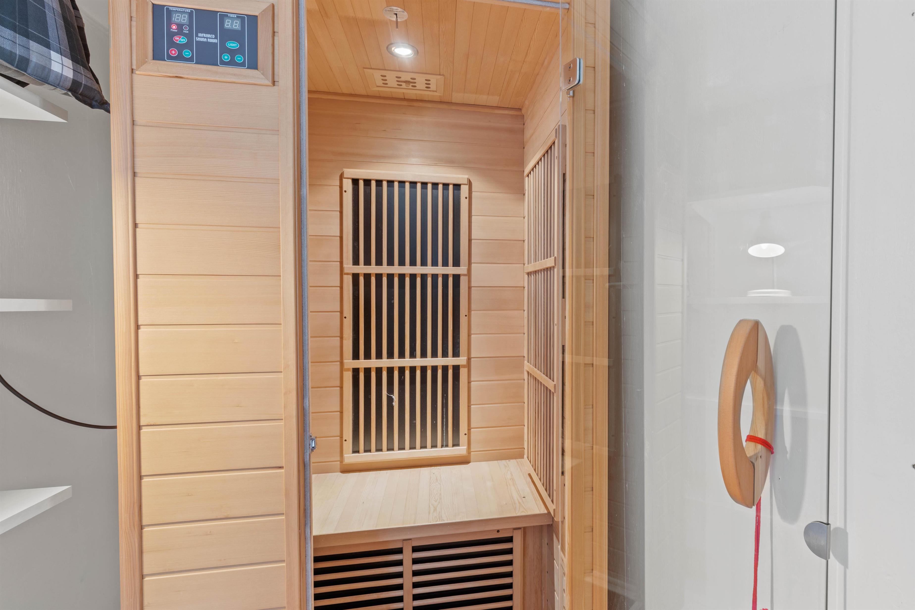 Inden sengen kalder, kan I nyde en afslappende stund i den varme sauna, som også er god efter en lang gåtur ved vandet.