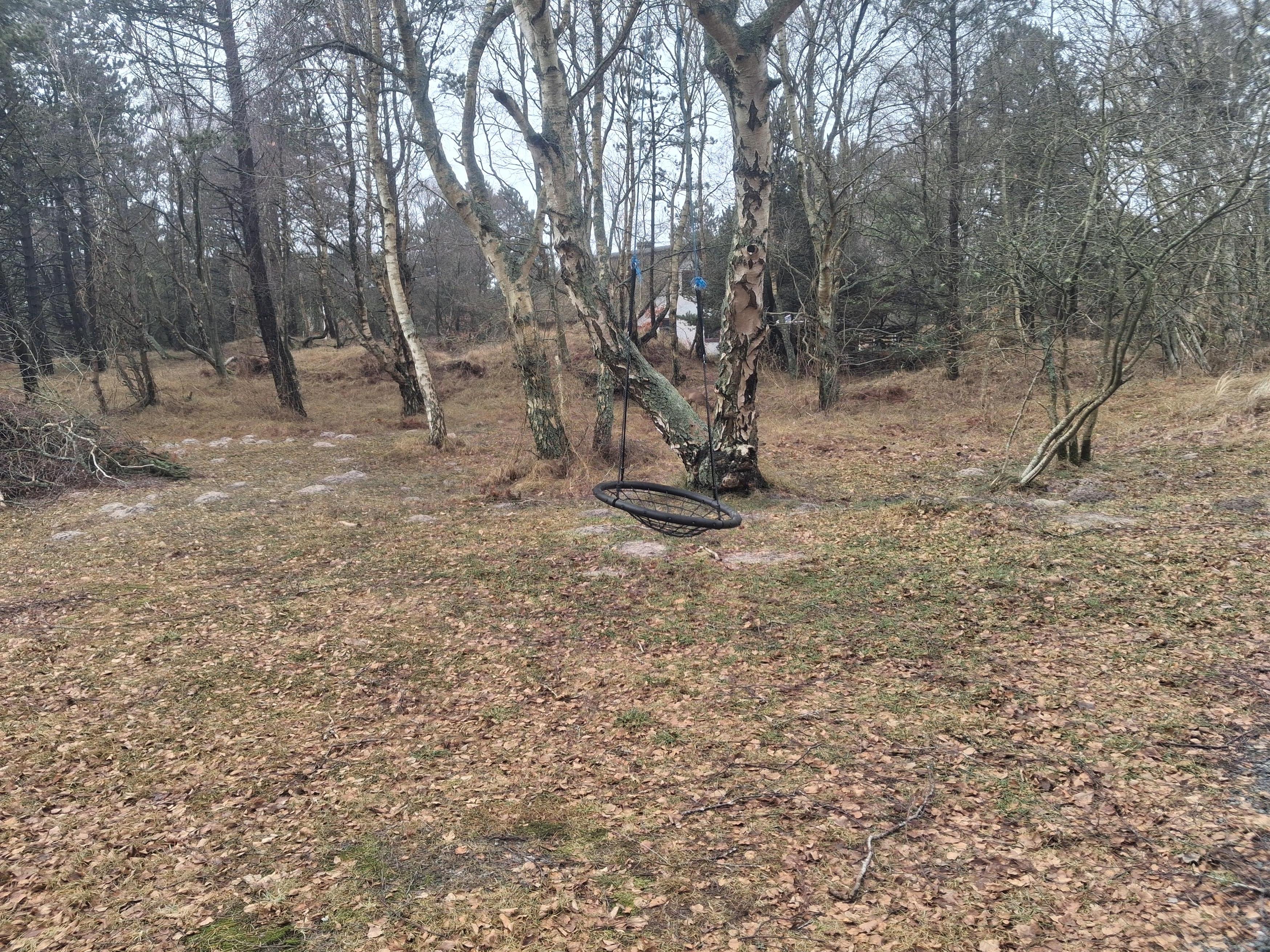 Den åbne terrasse med havemøbler og grill indbyder til lange sommeraftener under åben himmel. Haven giver masser af plads til leg og afslapning, og børnene vil hurtigt finde glæde i både gynge, sandkasse og trampolin. Kombinationen af naturgrund og plæne skaber en afslappet ferieatmosfære med plads til både aktivitet og ro.