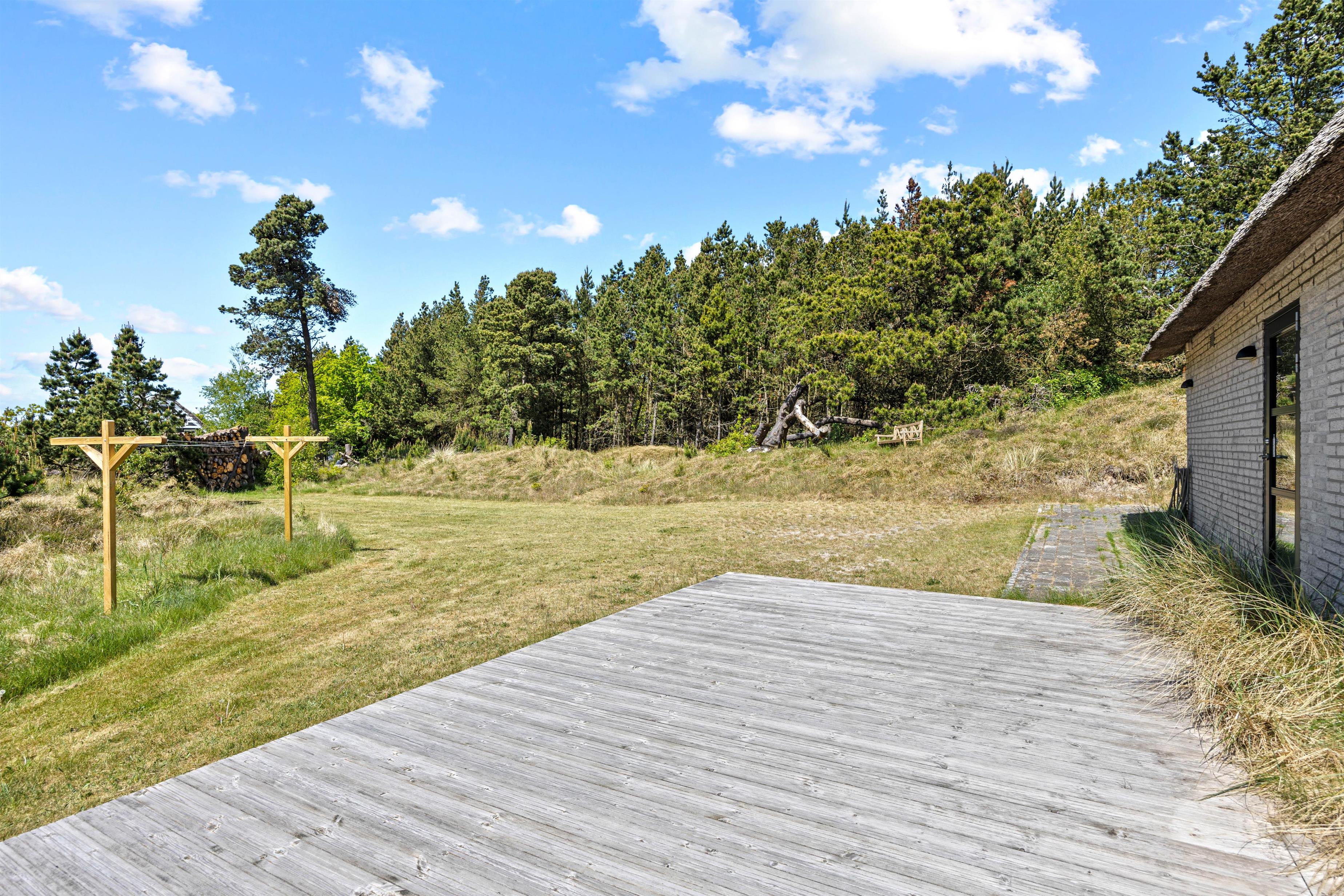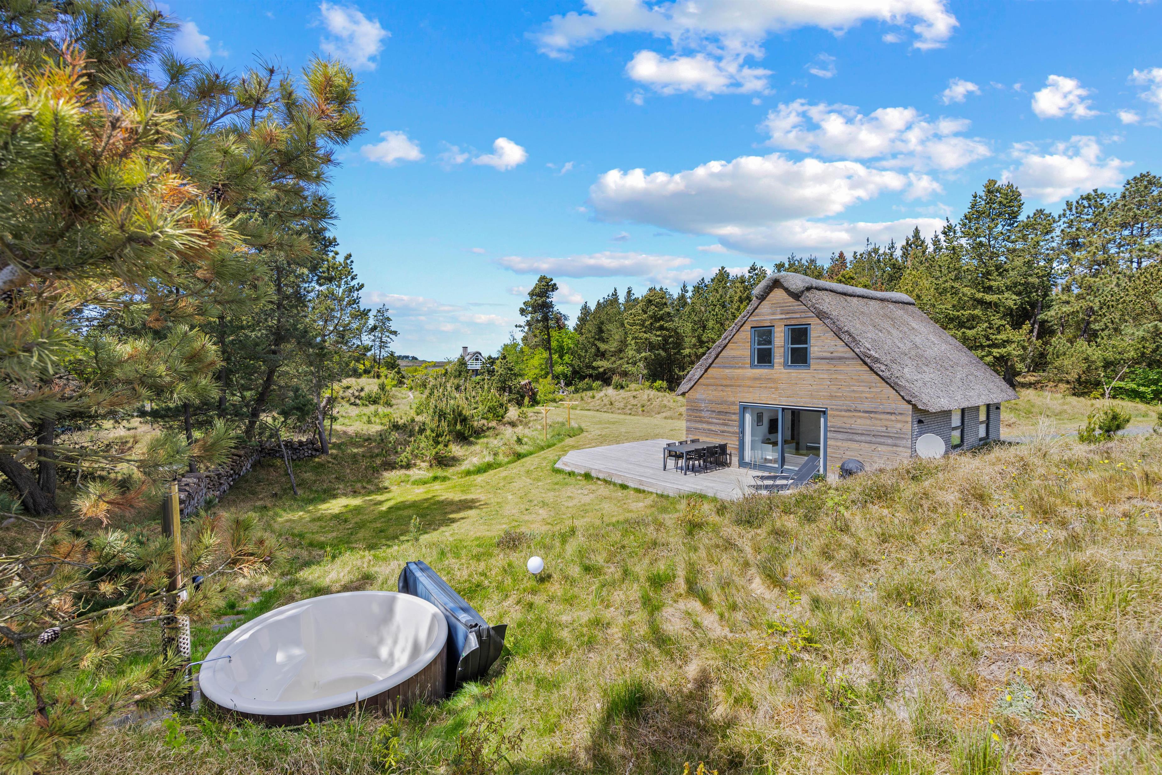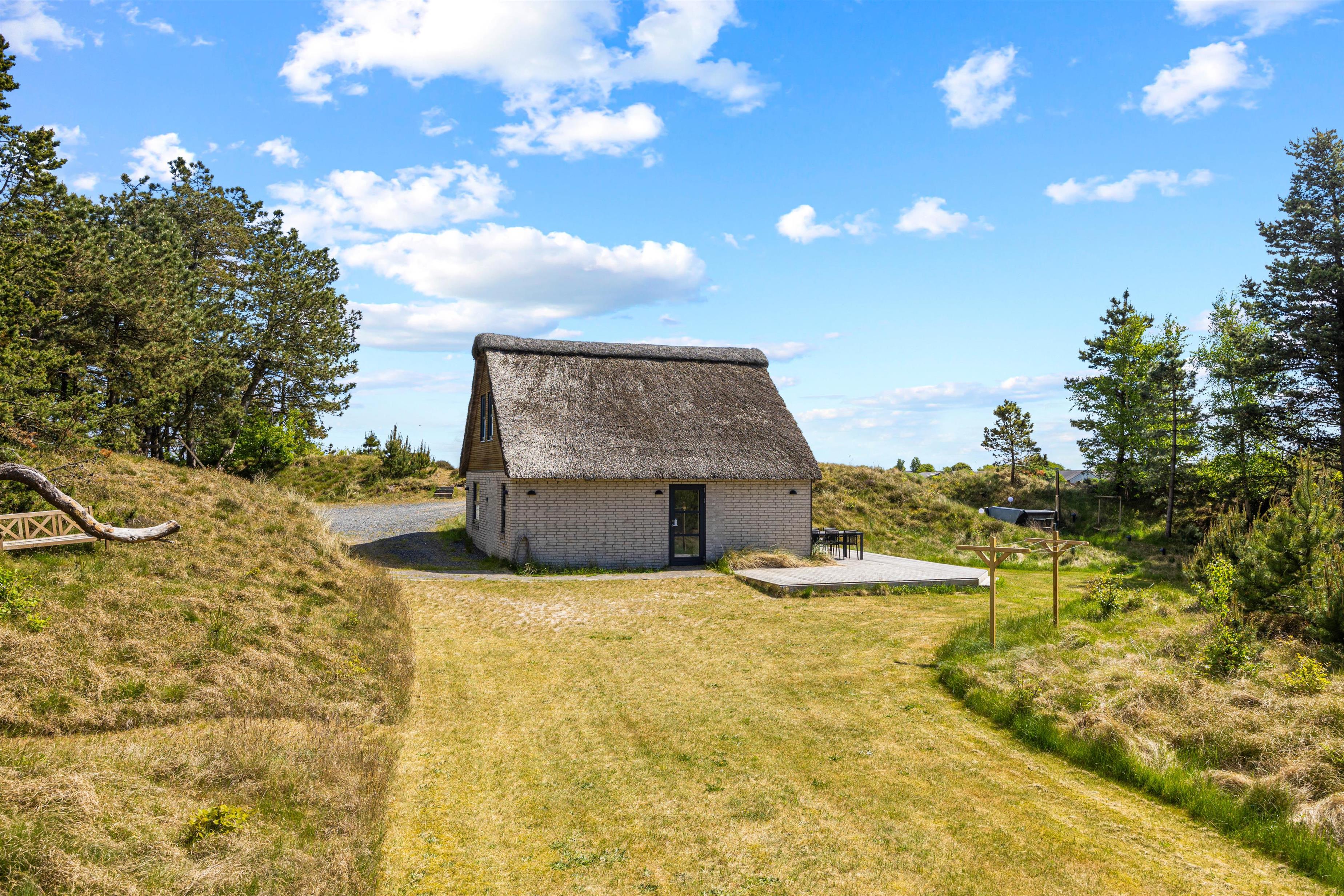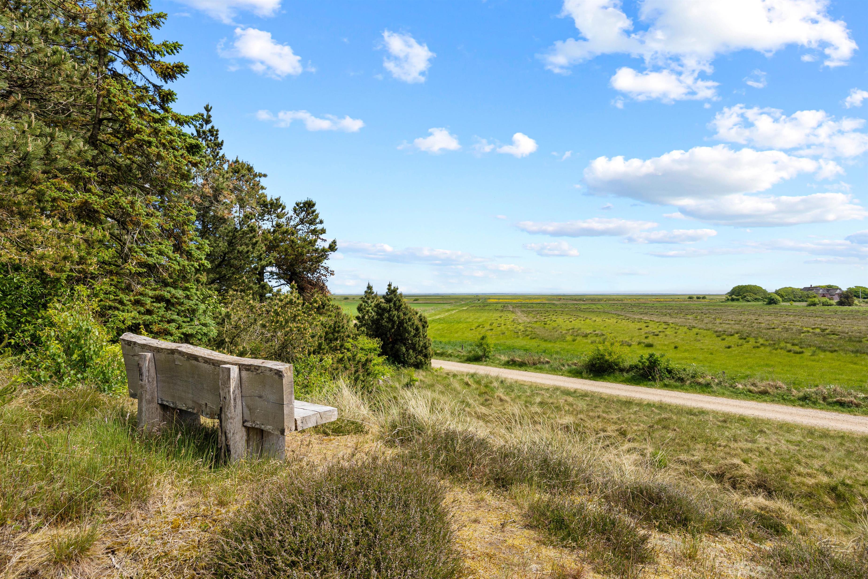 Feriehuset på Vestervej 33b i Toftum ligger i rolige omgivelser på en ugenert 2700 m2 stor naturgrund. Der er kun 4600 meter til den populære og bilvenlige strand i Lakolk, og kun 1250 meter fra feriehuset ligger Vadehavet, en del af UNESCOs verdensarv. Nyd udsigten over vidderne og oplev de smukke solopgange om morgenen samt de spektakulære solnedgange efter en dejlig dag på øen. Den fremragende beliggenhed midt i naturen føler I også i vildmarksbadet, hvor I kan slappe af efter en dejlig feriedag.